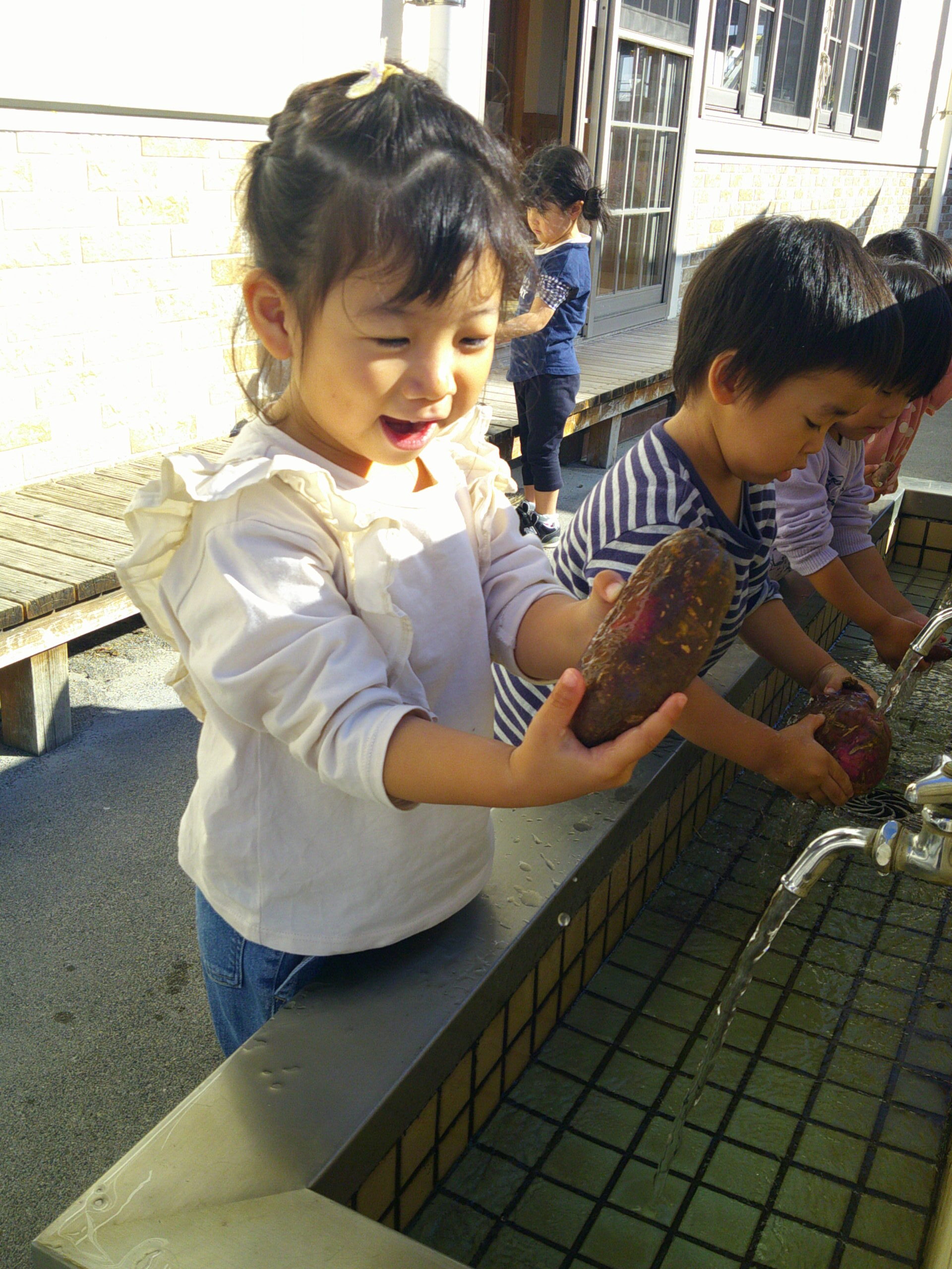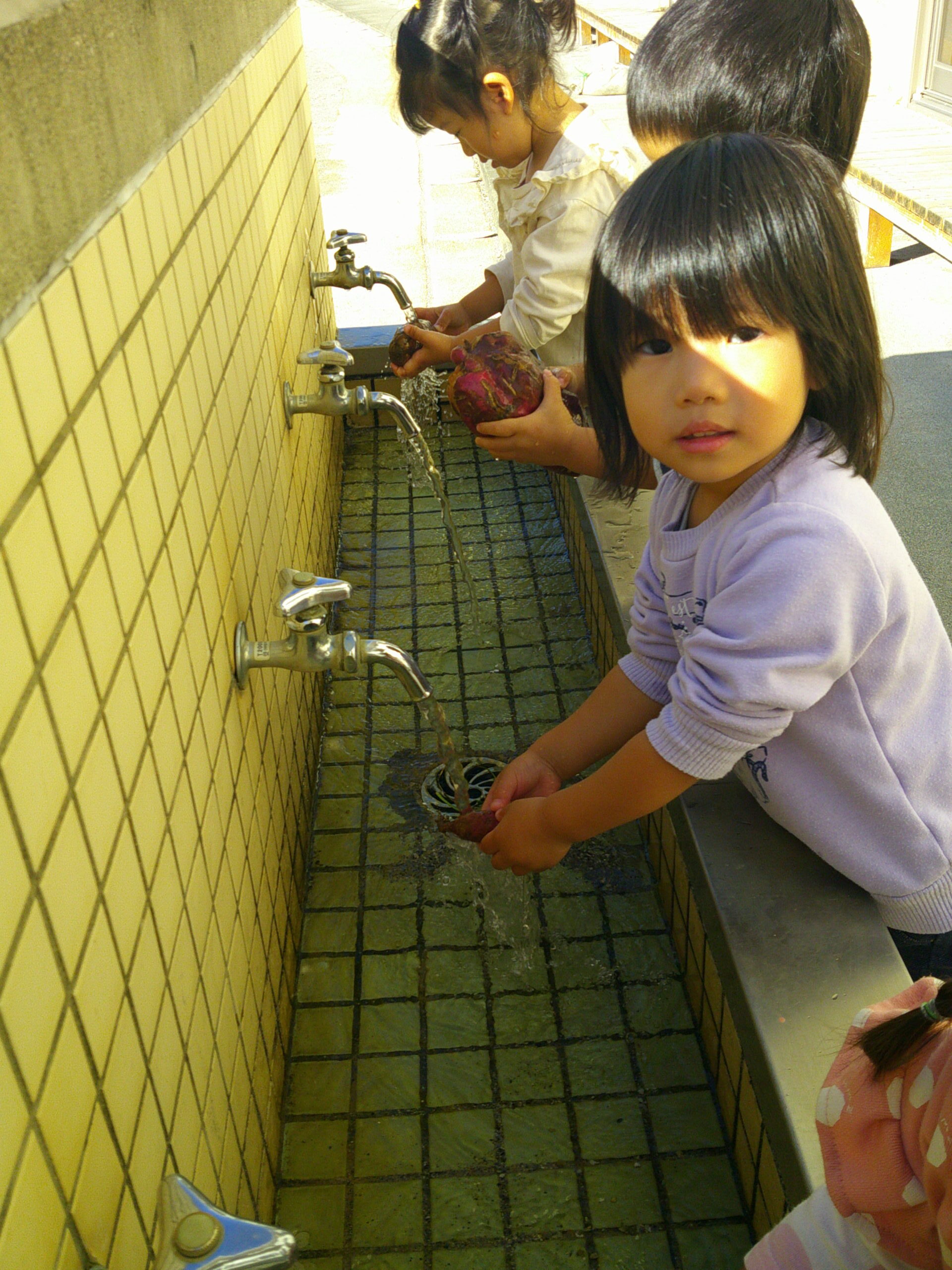 さつまいもを手に取り、いざ、キレイに洗います!!