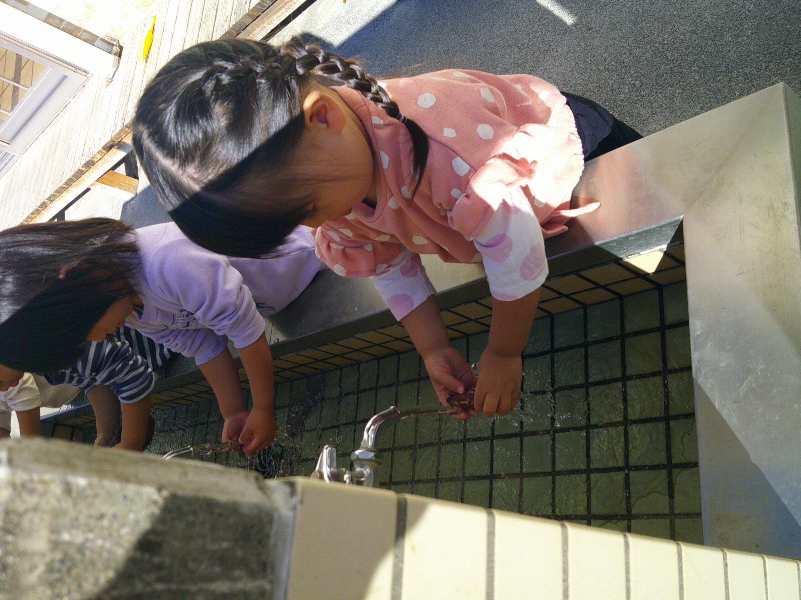 水にぬれると、色が違って見えることにビックリ顏の子どもたち😊