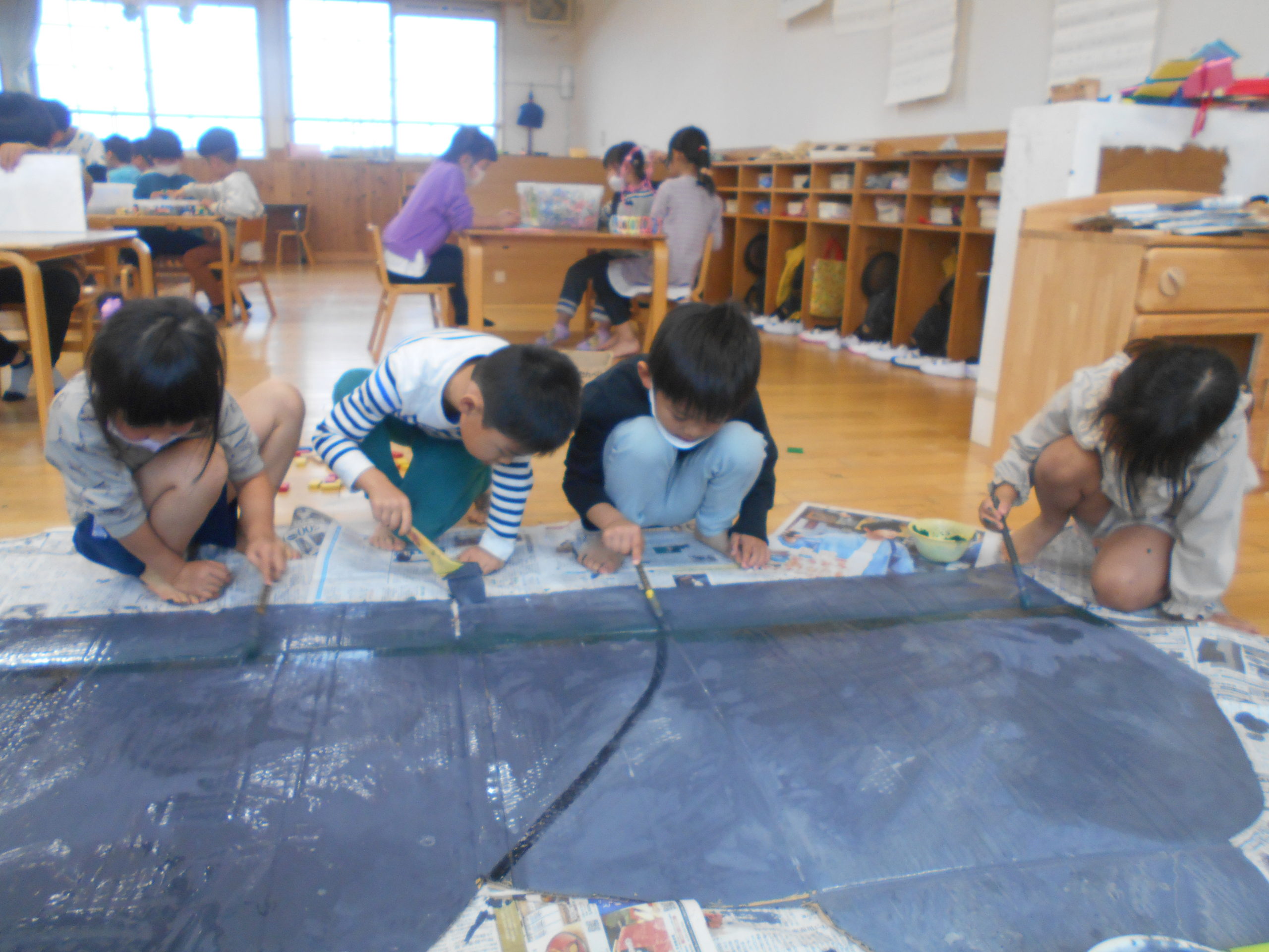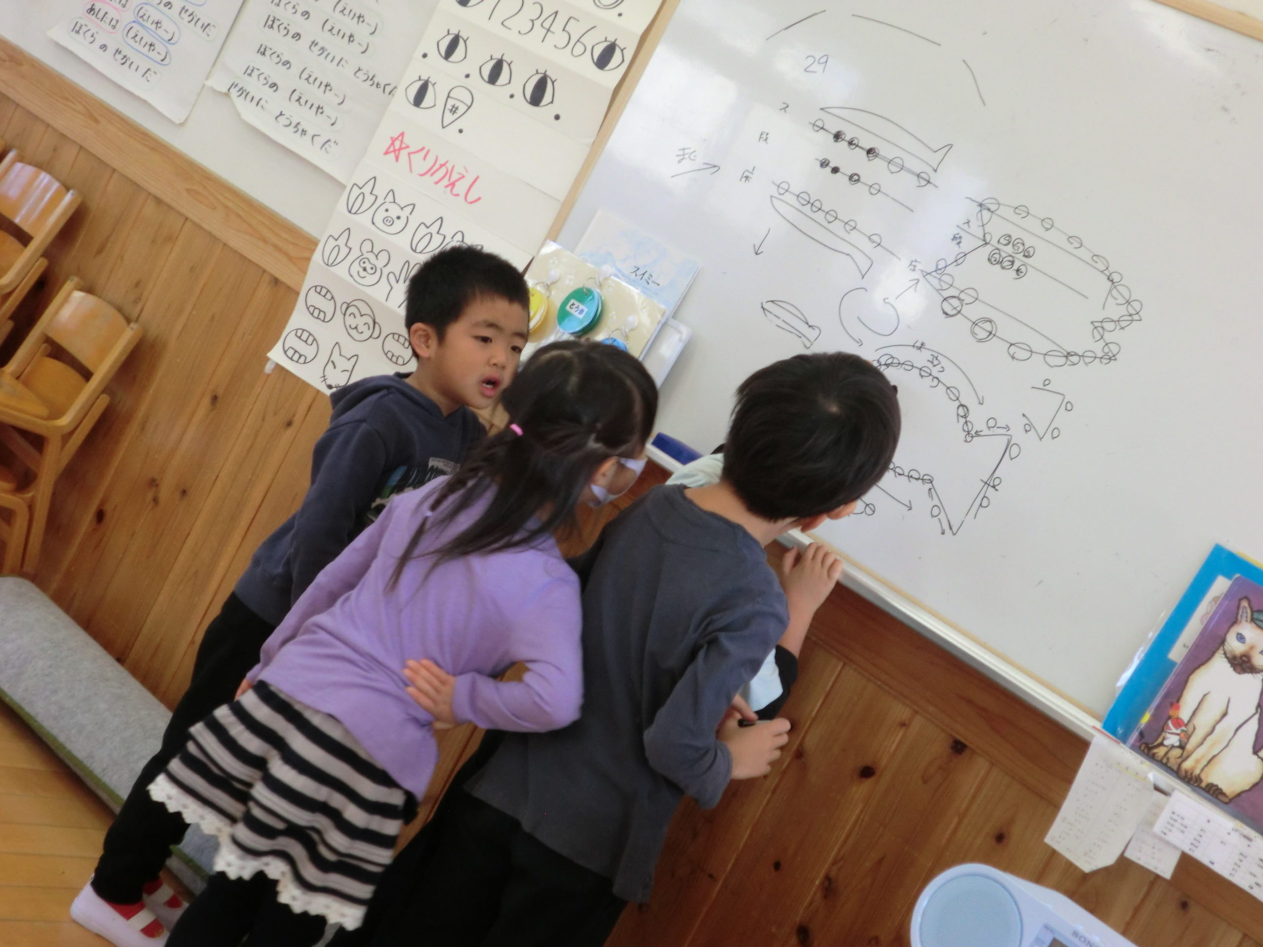 ぞう組 生活発表会へ向けて! 2021.11.22 保育園生活最後の発表会へ向け、準備が着々と進んでいます。 演目は『スイミー』。運動会では、難しいソーランをやり遂げた子どもたち。 どんなに難しいことも仲間と一緒なら乗り越えられる!そんな思いがたくさん詰まったスイミーをご期待ください! 「フィナーレはこんなふうに並ぶ?」「うーん、それは並びにくいかな・・」。友だち同士で言葉を交わしながら 並び順も決めていく子どもたち。頼もしいですね! < >