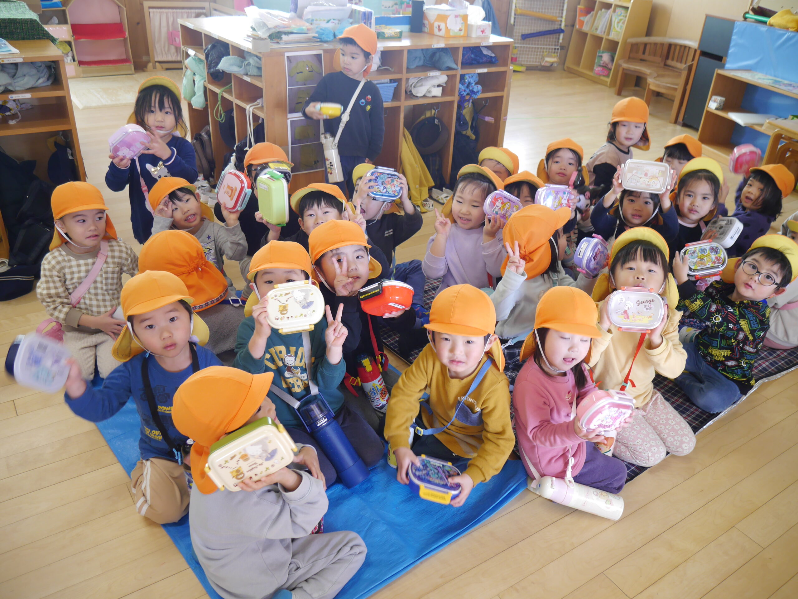 12月から延期になっていた”お給食をお弁当箱に詰めて食べてみよう”食育活動を行いました。前日には、カレンダーを見ながら「明日はおべんとうばこをもってくること、ママに言っておこう!」と意気込んでいる姿が可愛らしかったです。