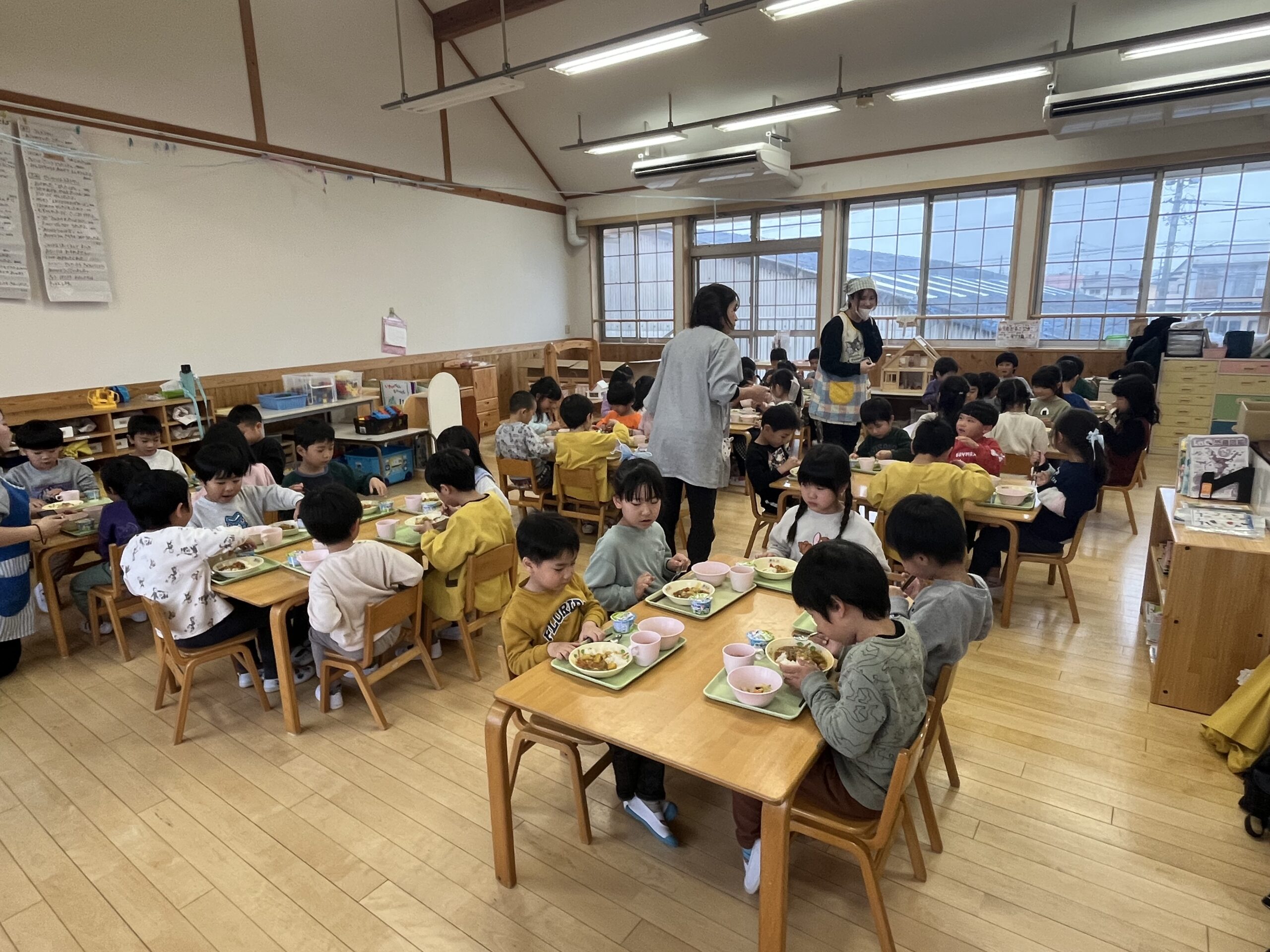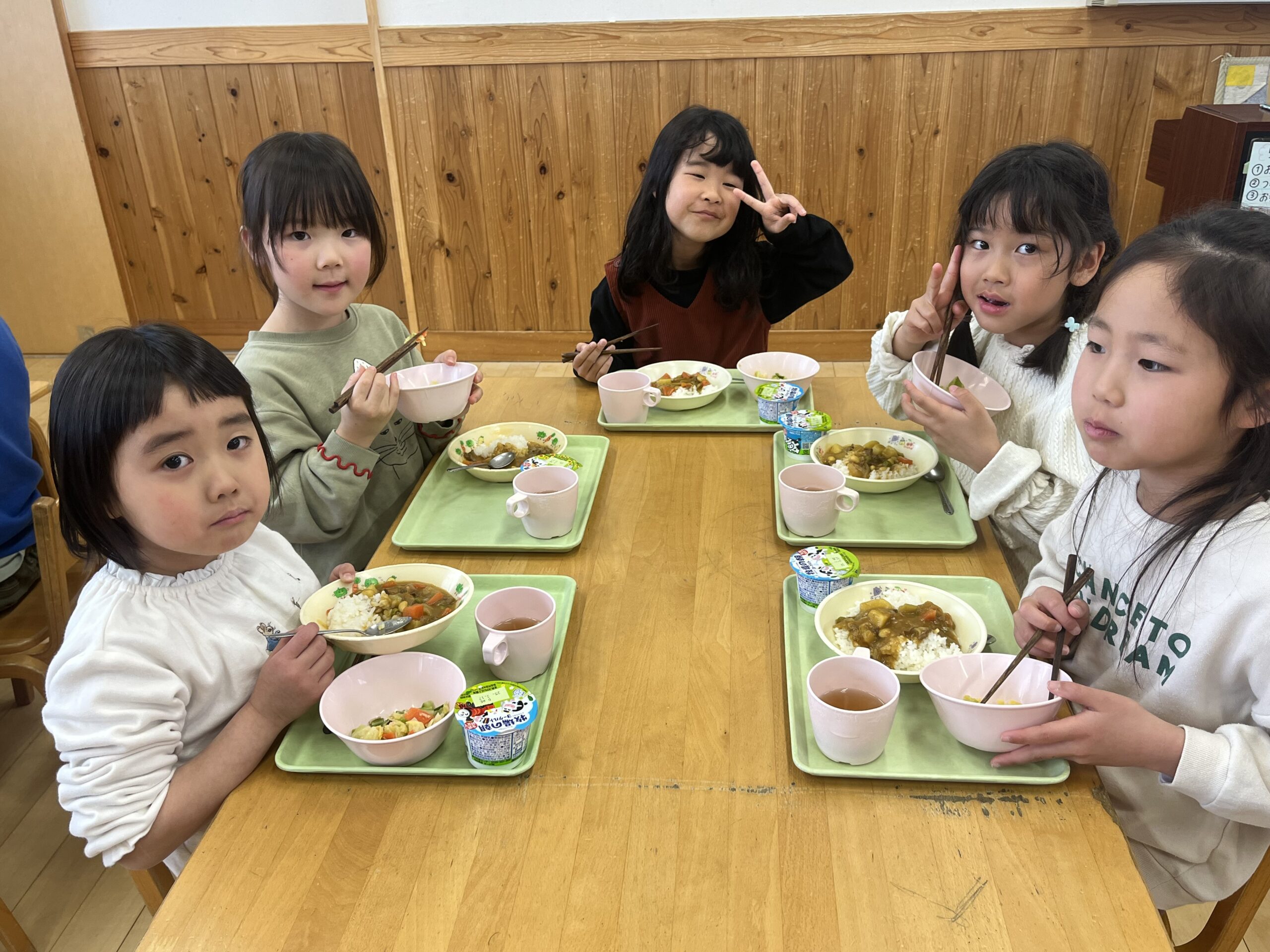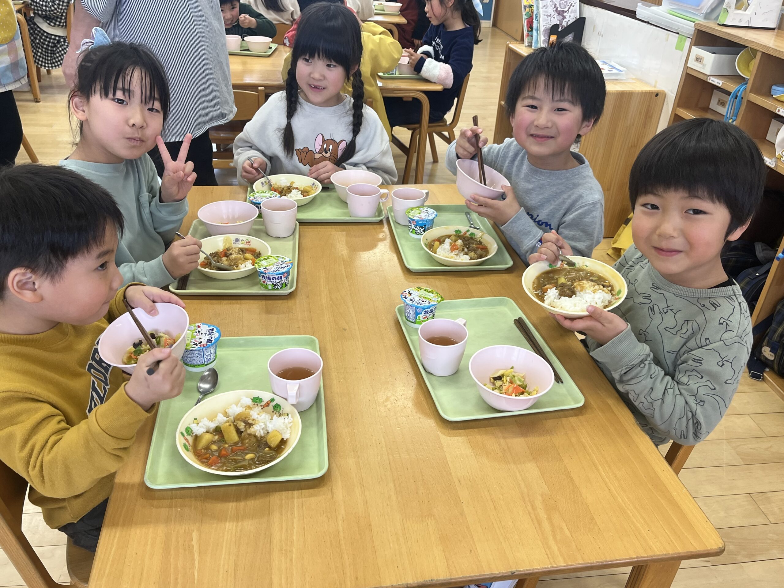 園に戻ると、🐘🐼合同で給食🍛を食べました✨
