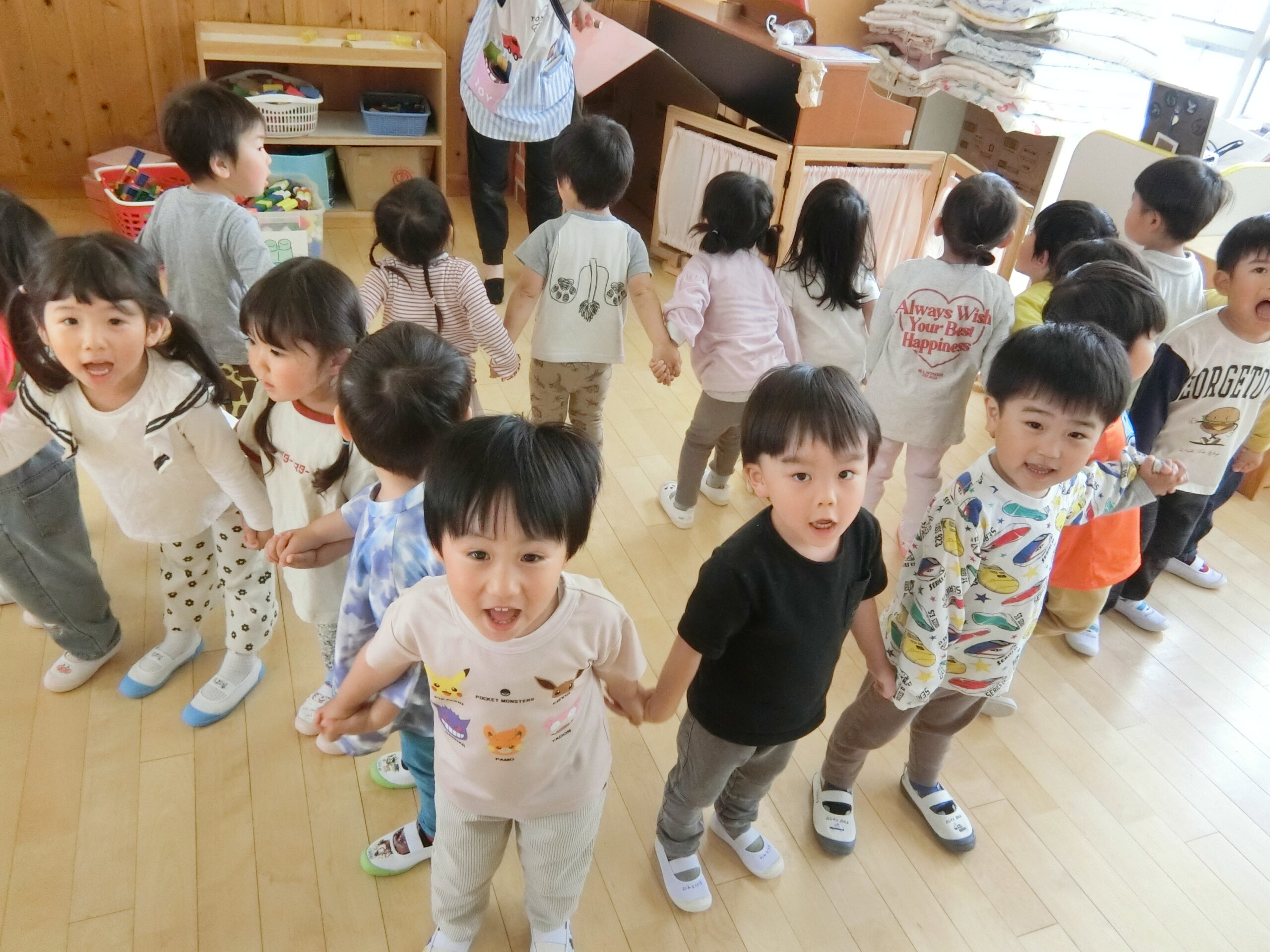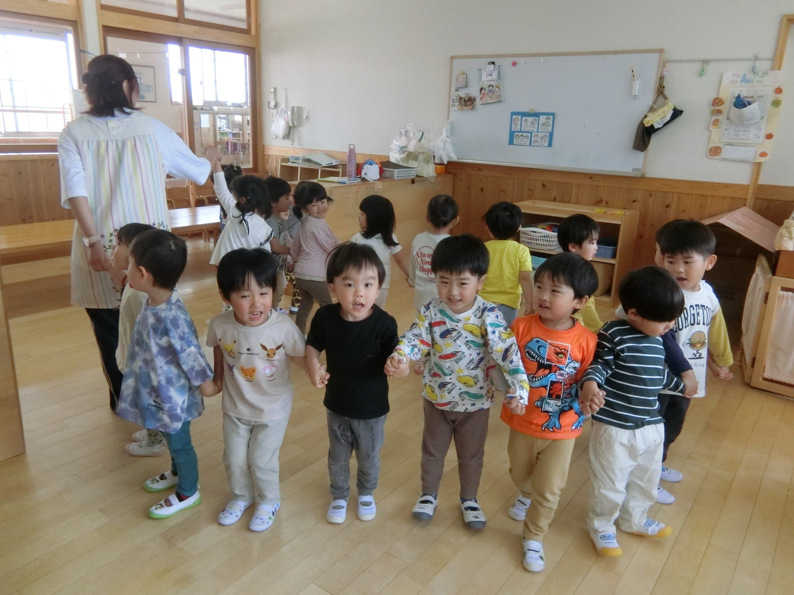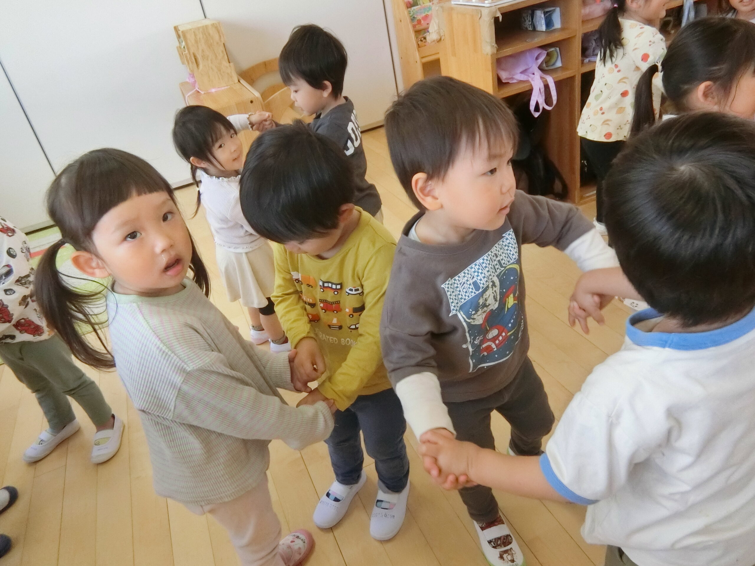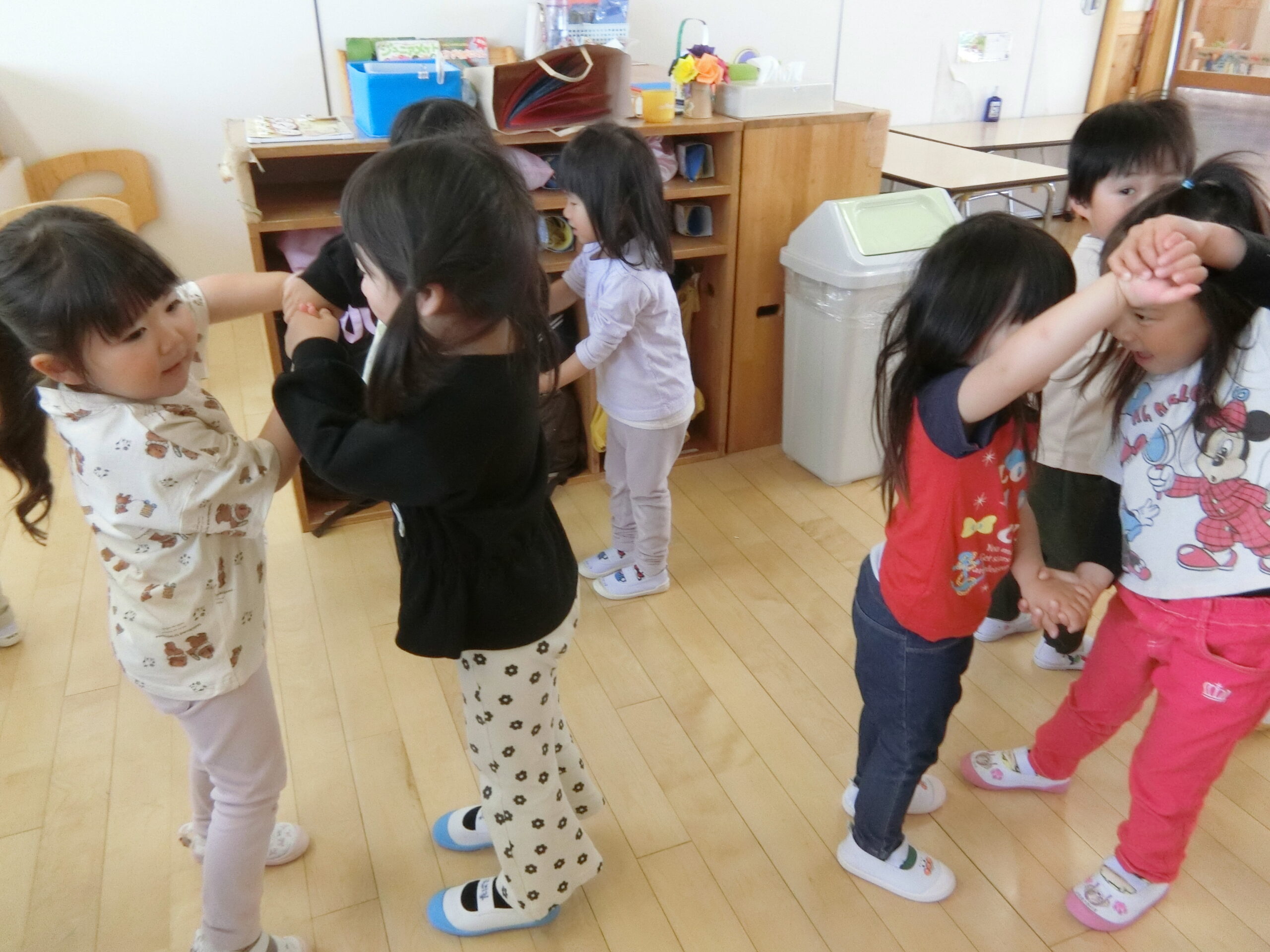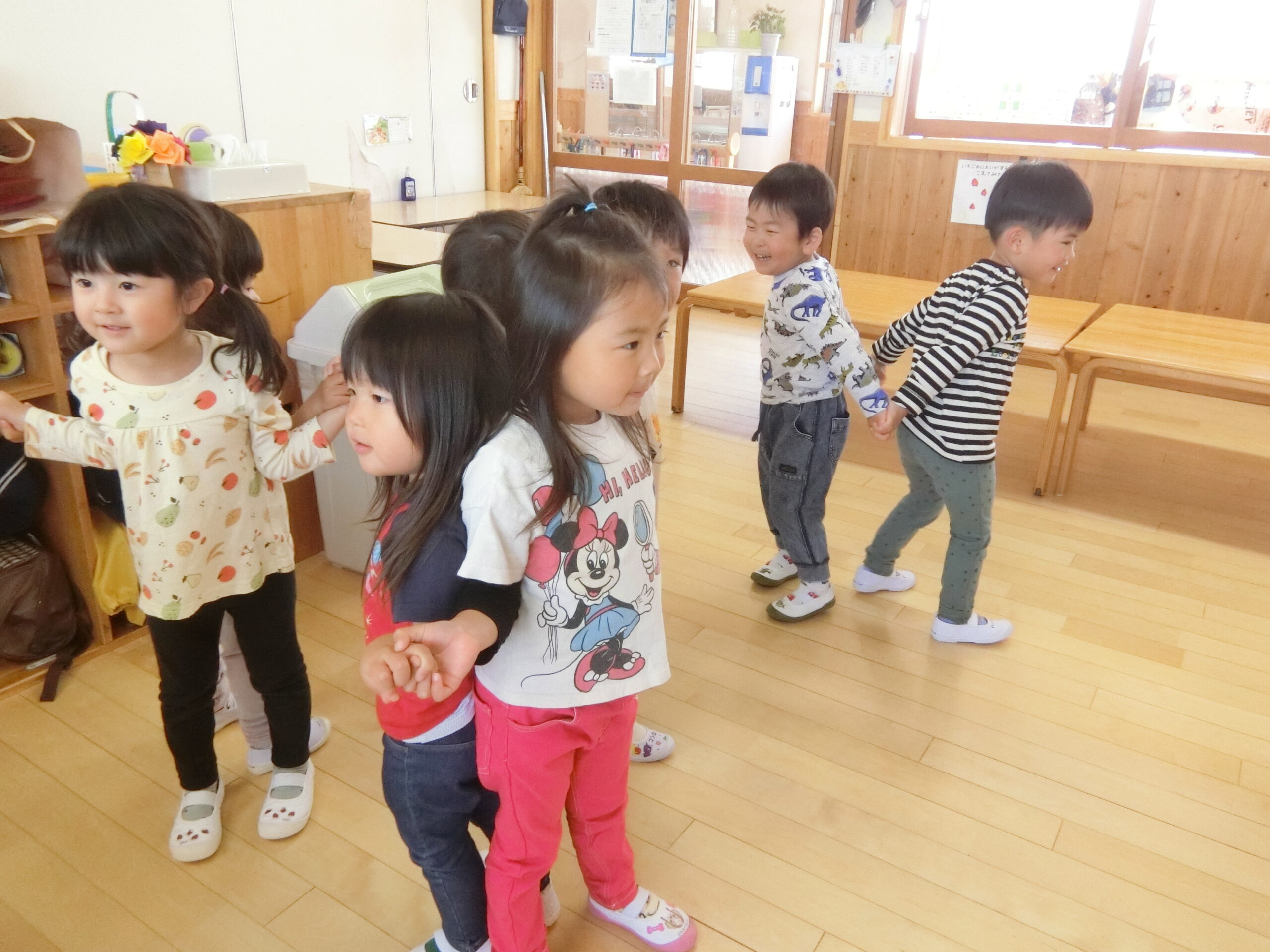 好きなお友だちと手を繋ぎ「な~べな~べ」といいながら約束事を守って楽しんでいます!!