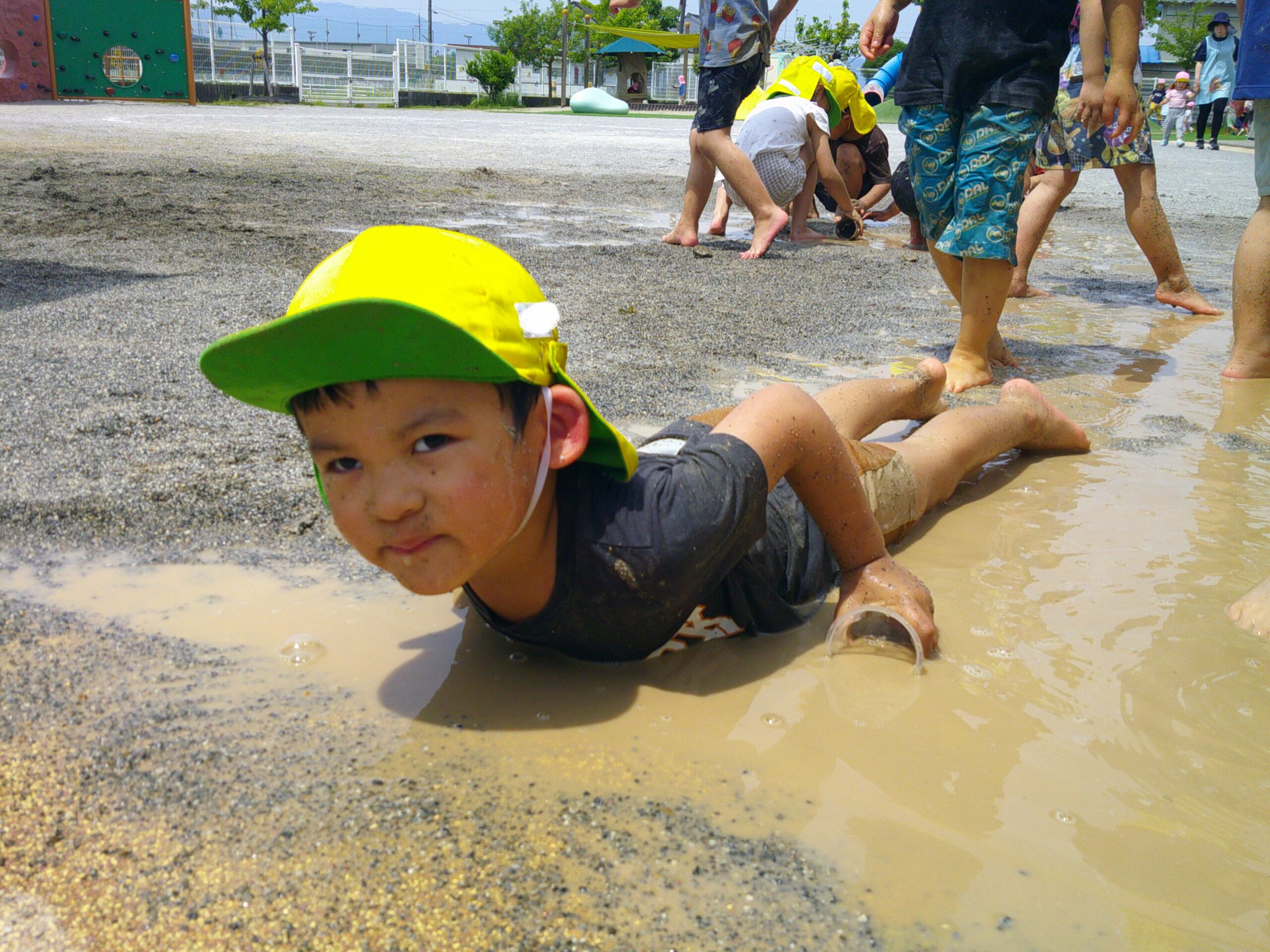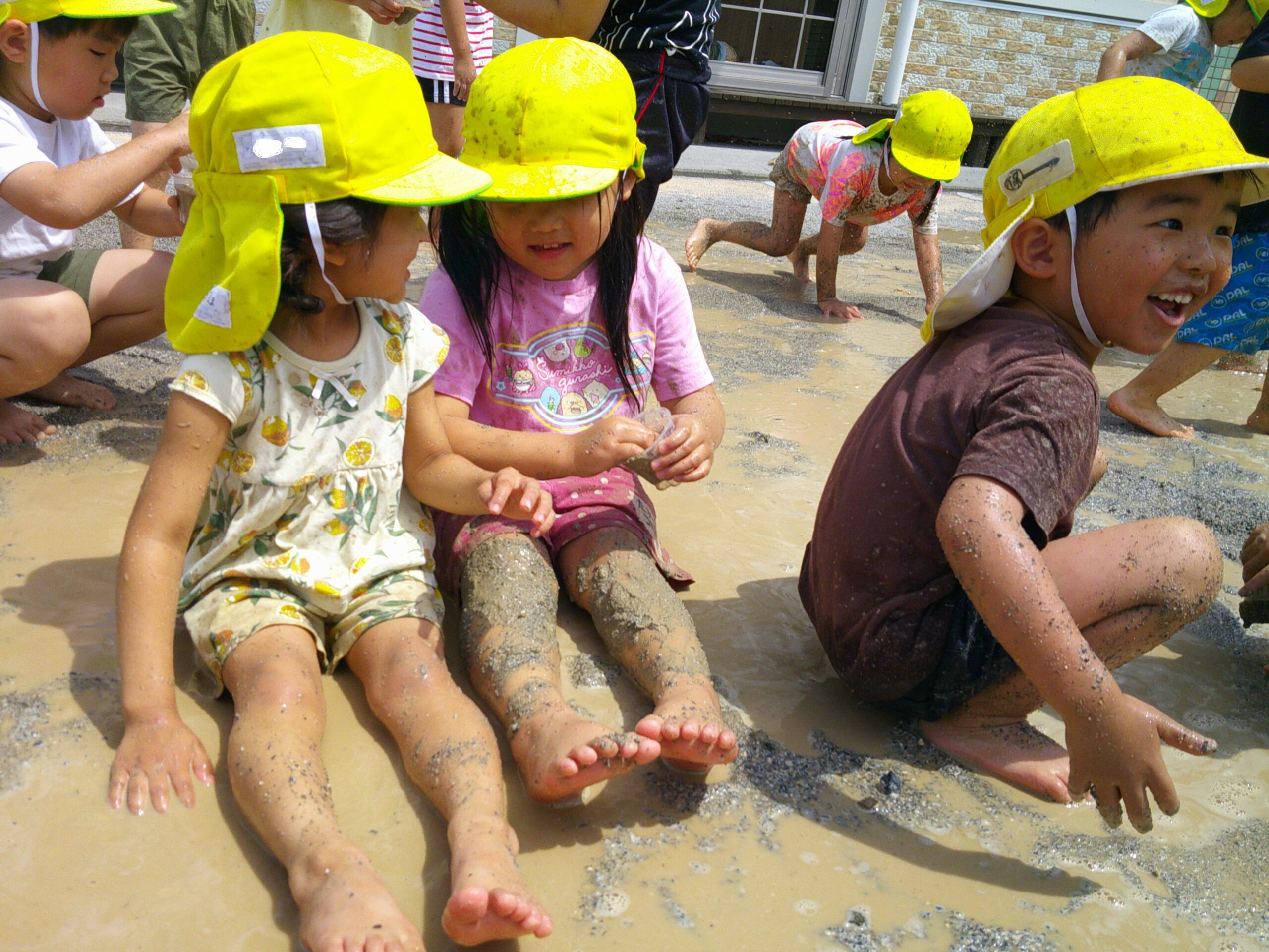 泥と水に触れながら、大はしゃぎで遊んだ子どもたち!