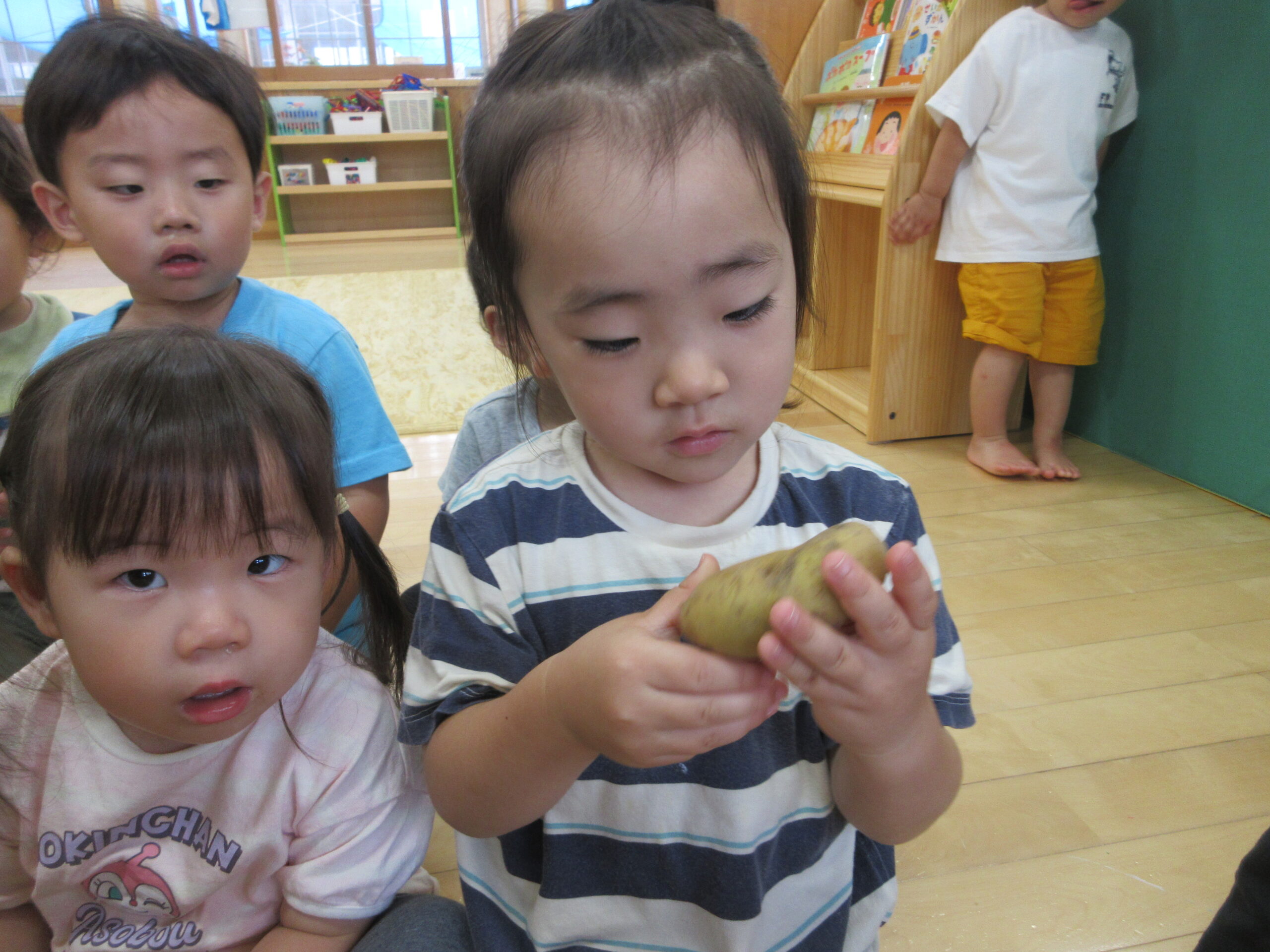 畑で大きいお友だちが収穫してくれたじゃがいもを、うさぎ組でも