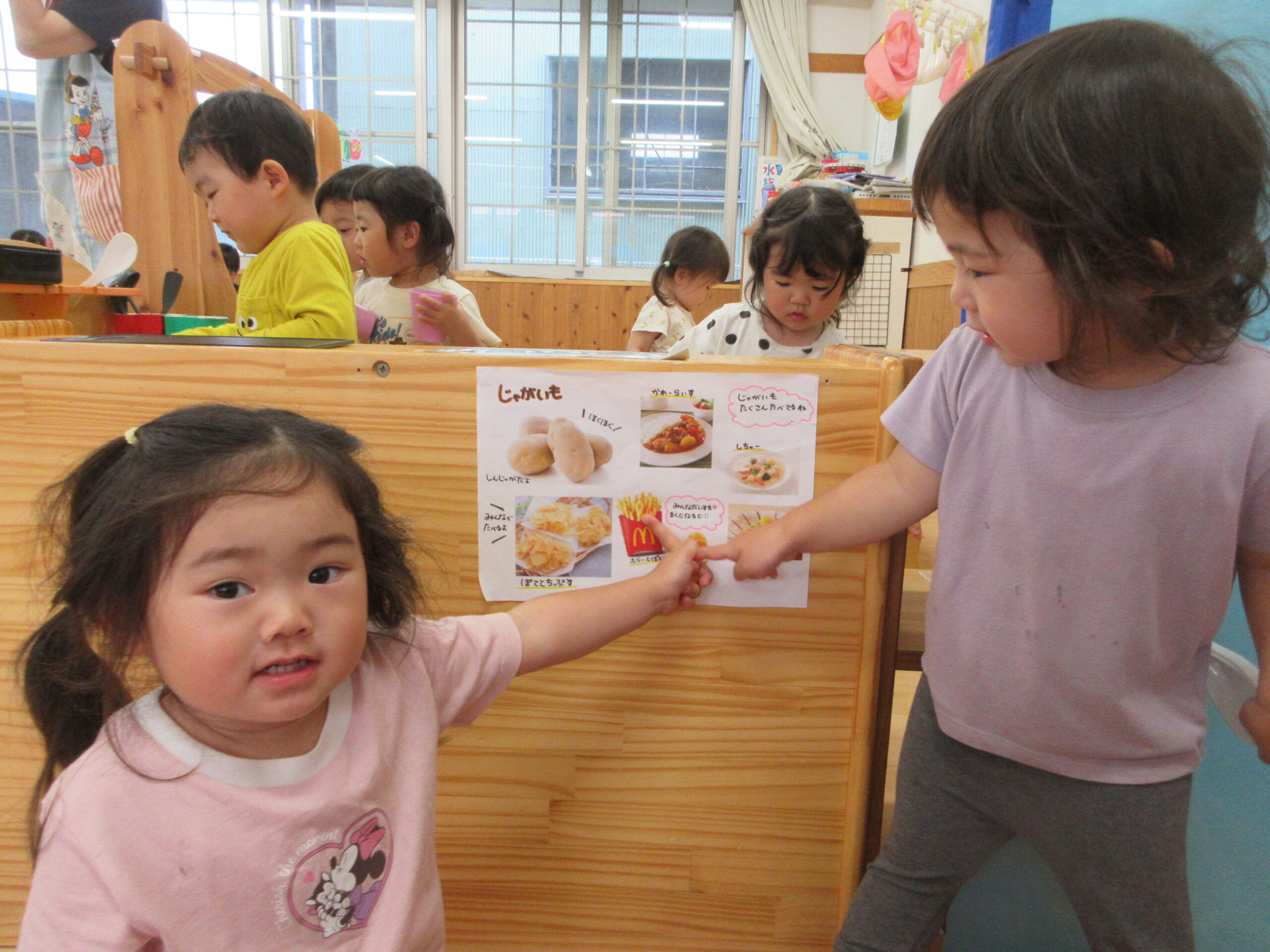 「これもじゃがいもだよねぇ?」とままごとコーナーからポテトを持って来てくれる子もいました😊