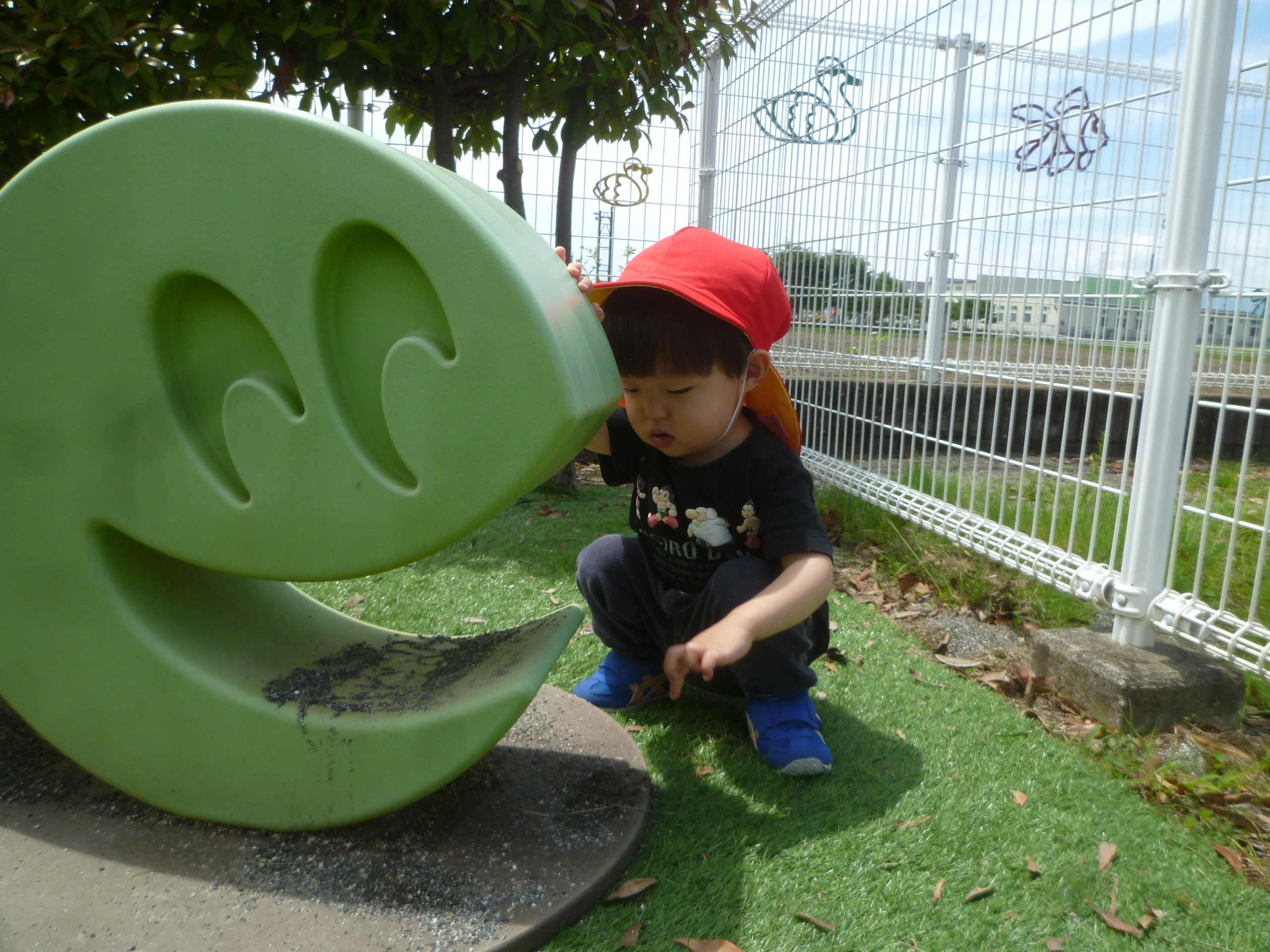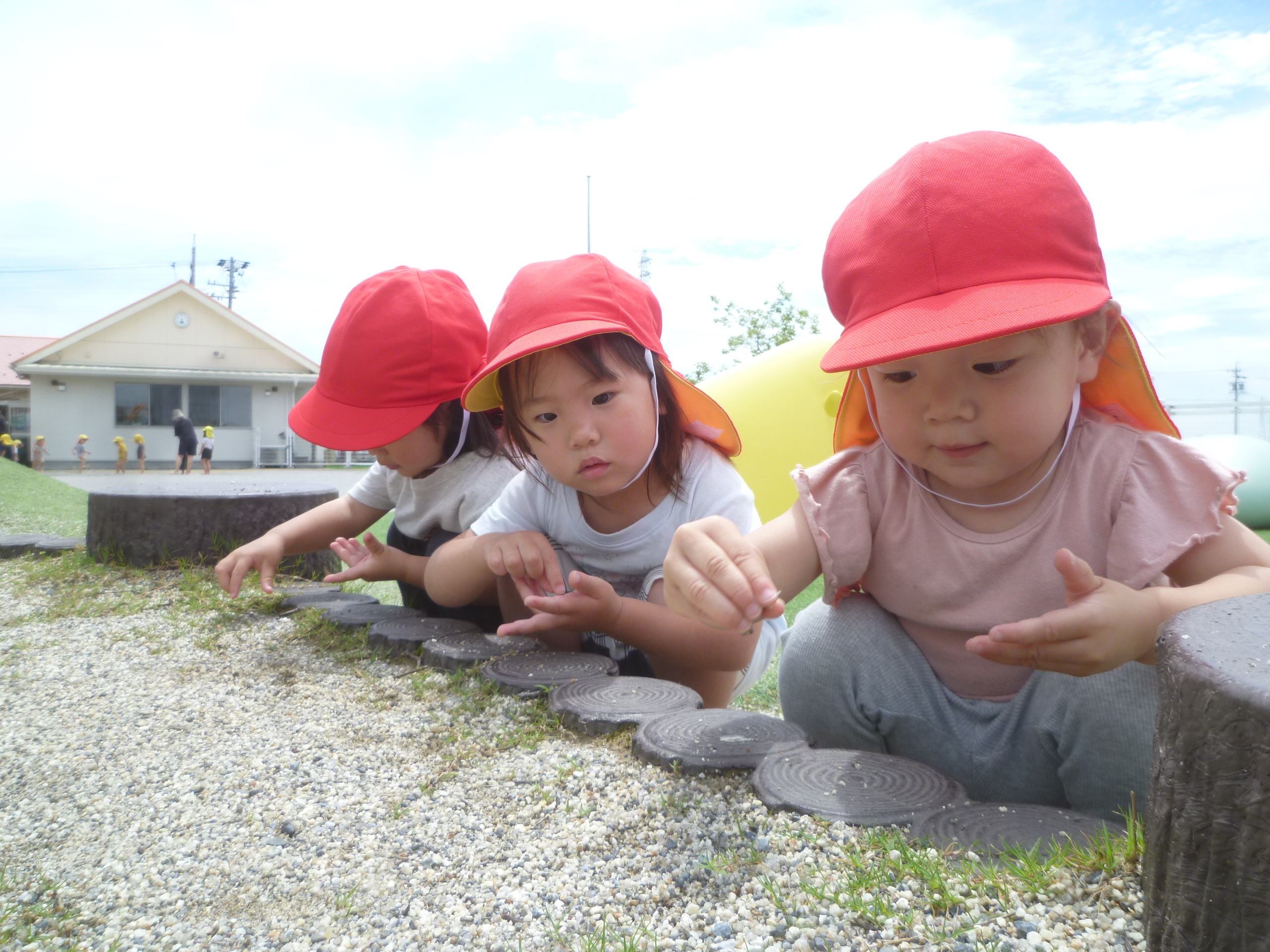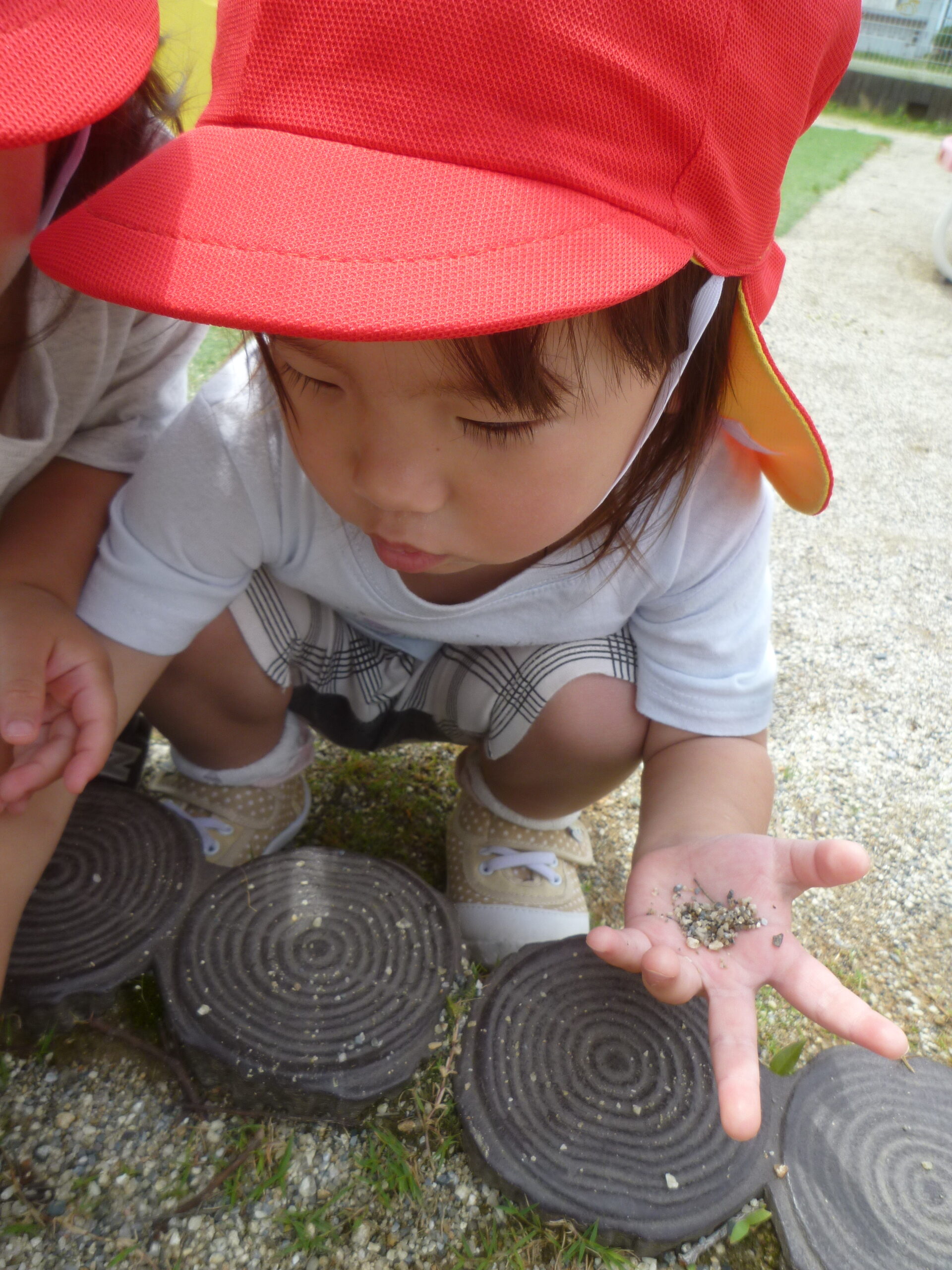 続いて、何やら3人の女の子が何かを集めていました。のぞいてみると・・・砂だったんですが、「何集めてるの?」と聞いてみると「いし!」と元気よく教えてくれました😄