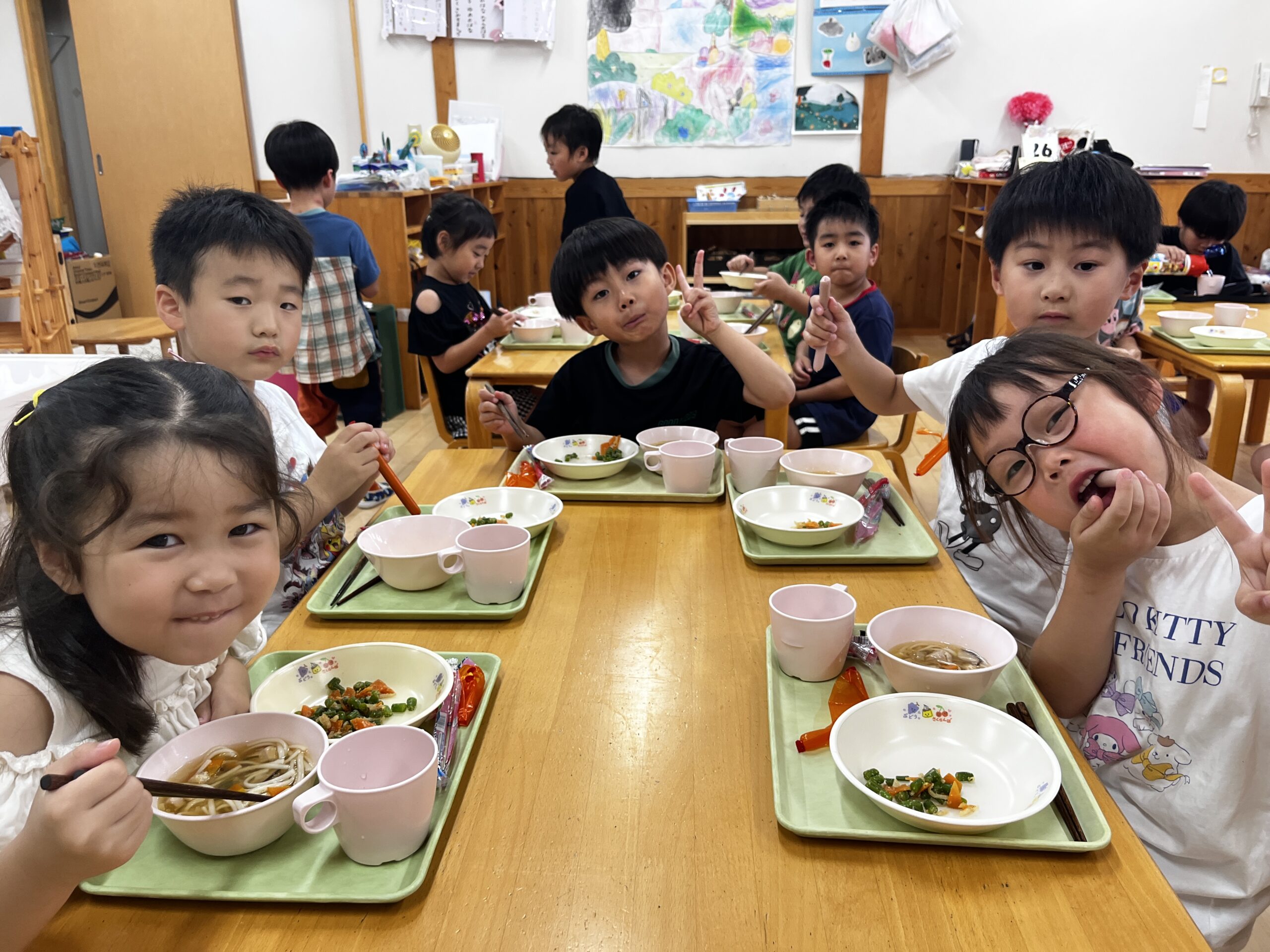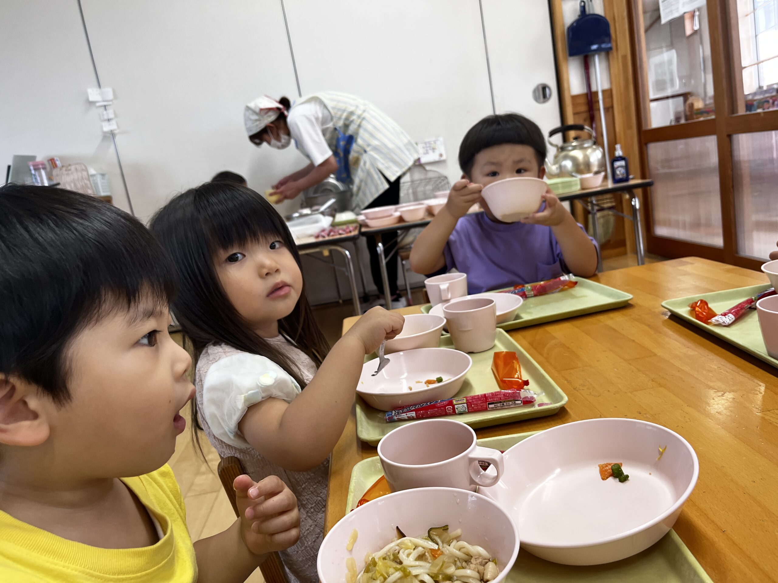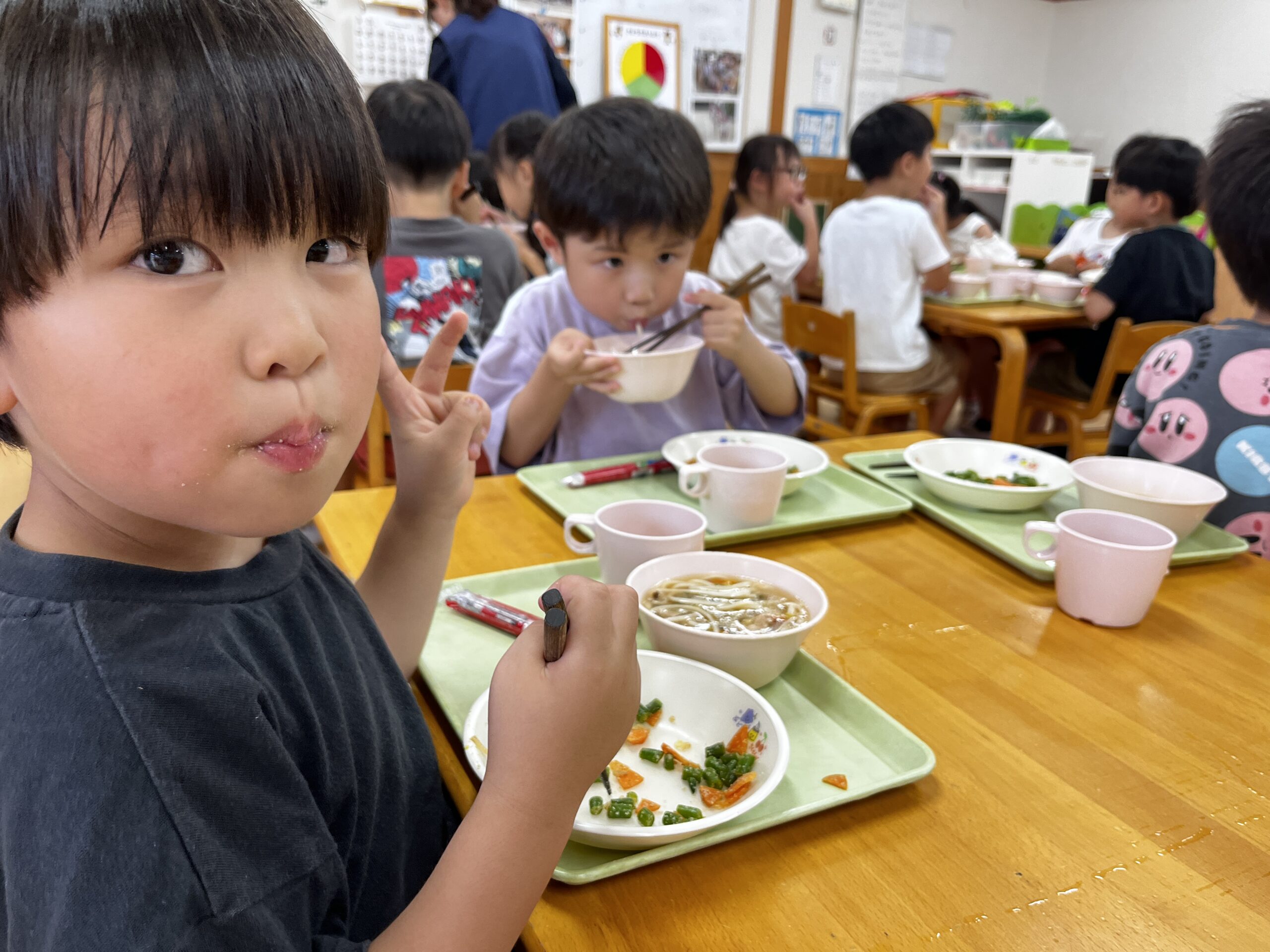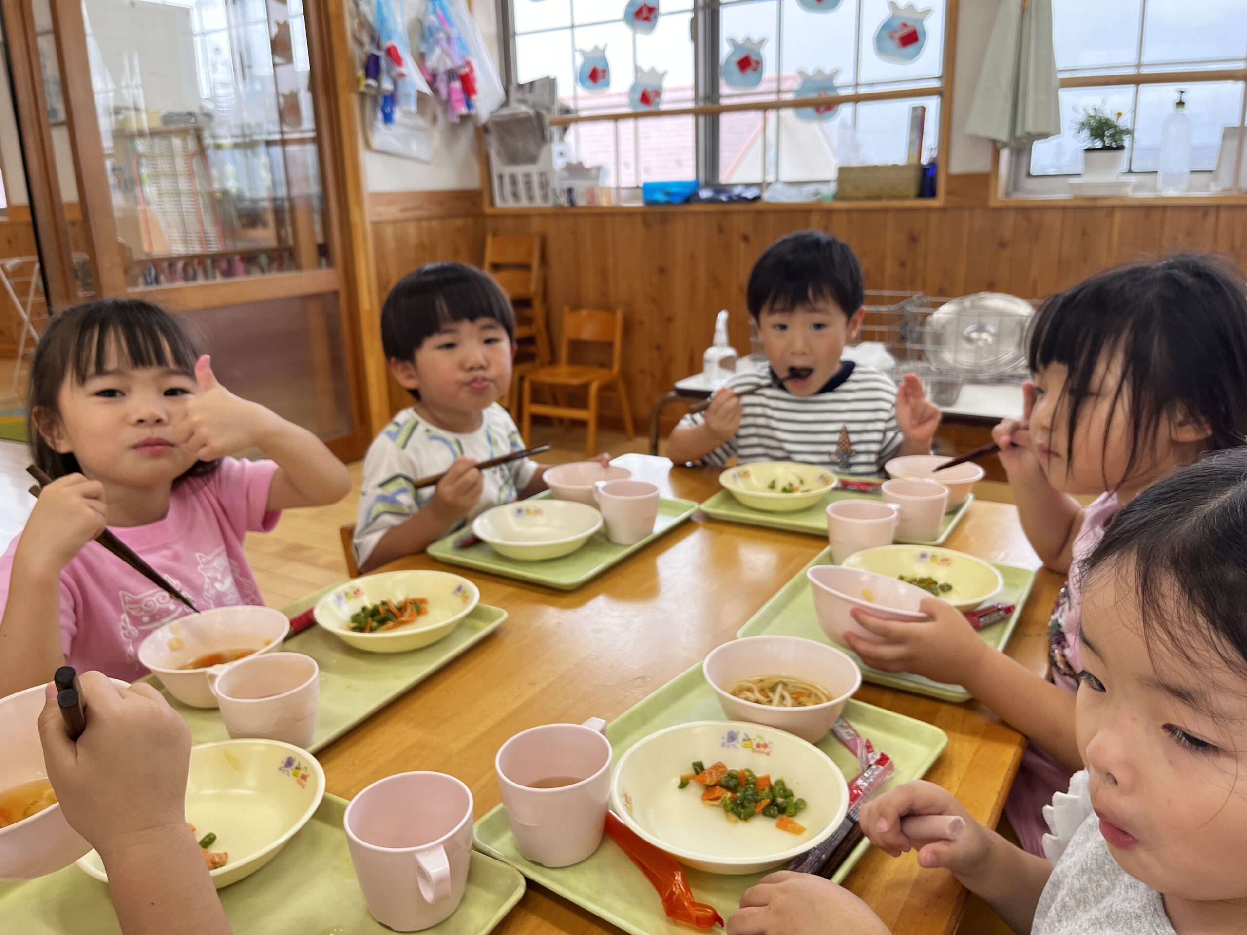 今日の給食🍚 2025.06.27 今日のお給食は、五目うどん、いんげんのごまあえ、魚肉ソーセージでした。 五目うどん 具沢山で美味しそう😌 いんげんのごまあえ いんげんをパクパク食べている子もいました! うどん美味しい〜 野菜たべれたよ〜 お箸上手でしょ〜!! 野菜シャキシャキしてる!! 👍👍👍👍👍いただきました☺️ ぜーんぶ食べれるよ!!! みーーーんなの美味しい! の言葉を聞けました!! 残さず食べてくれてありがとう😊 < >