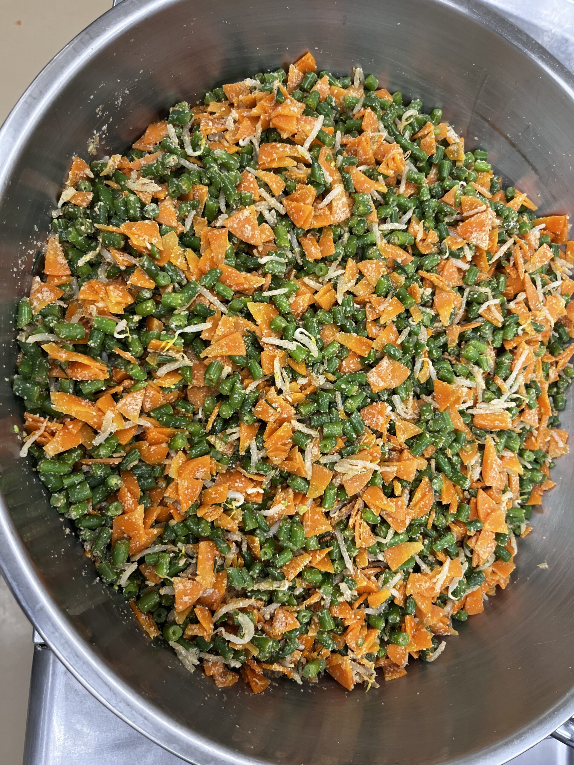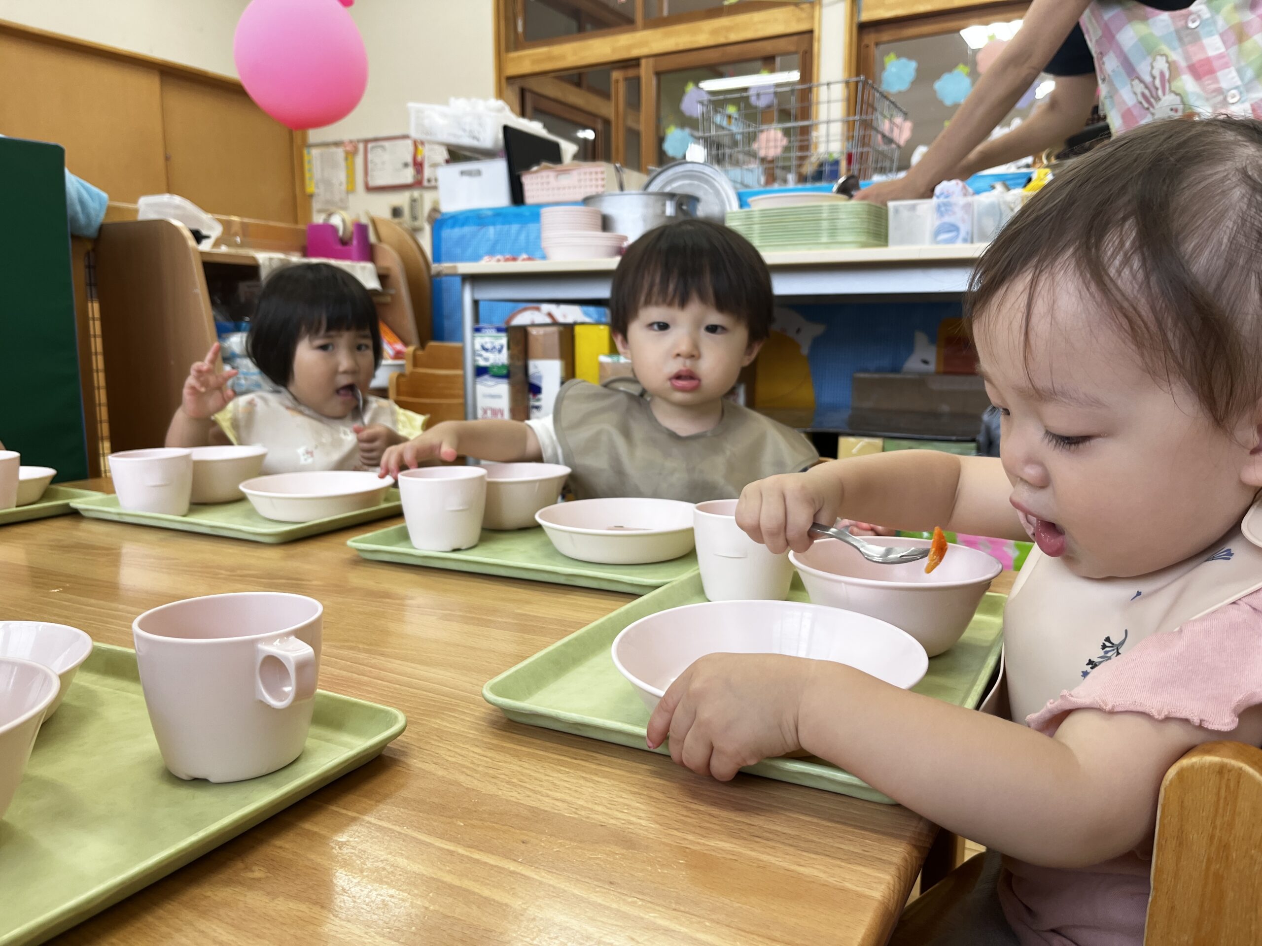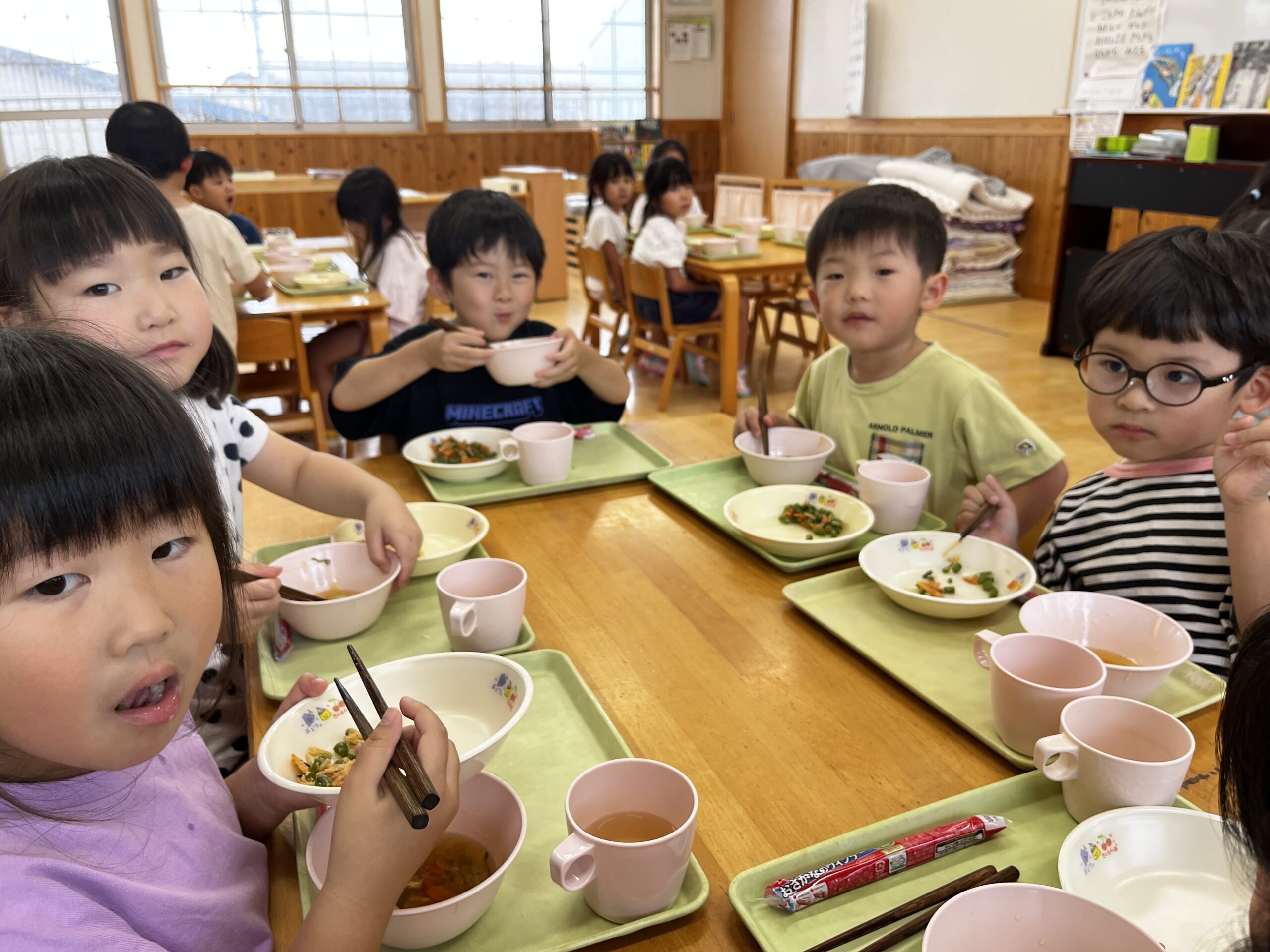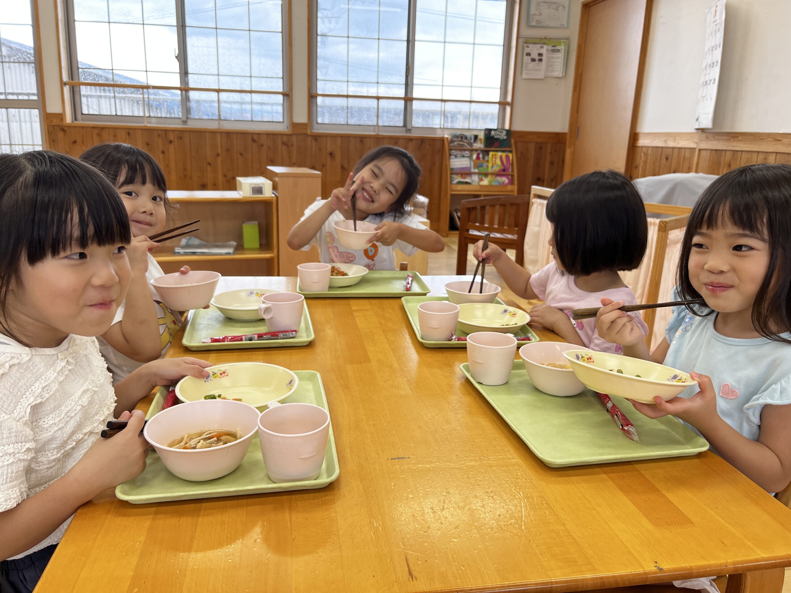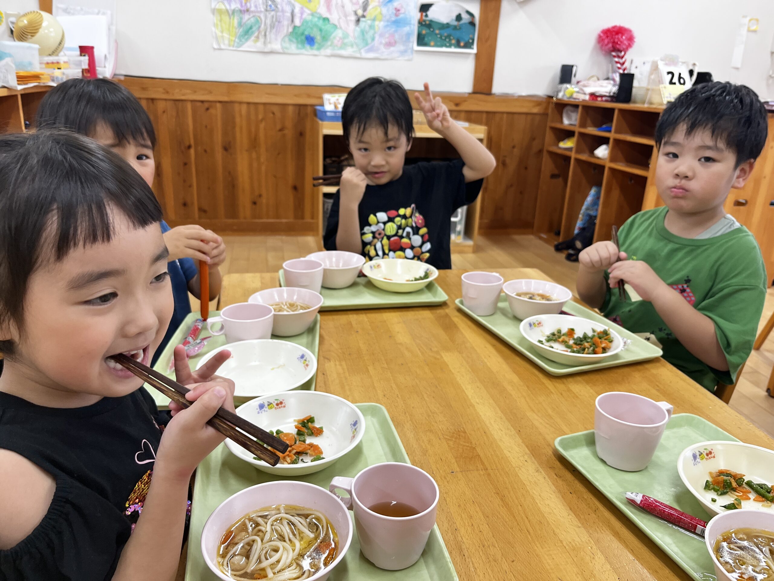 今日の給食🍚 2025.06.27 今日のお給食は、五目うどん、いんげんのごまあえ、魚肉ソーセージでした。 五目うどん 具沢山で美味しそう😌 いんげんのごまあえ いんげんをパクパク食べている子もいました! うどん美味しい〜 野菜たべれたよ〜 お箸上手でしょ〜!! 野菜シャキシャキしてる!! 👍👍👍👍👍いただきました☺️ ぜーんぶ食べれるよ!!! みーーーんなの美味しい! の言葉を聞けました!! 残さず食べてくれてありがとう😊 < >