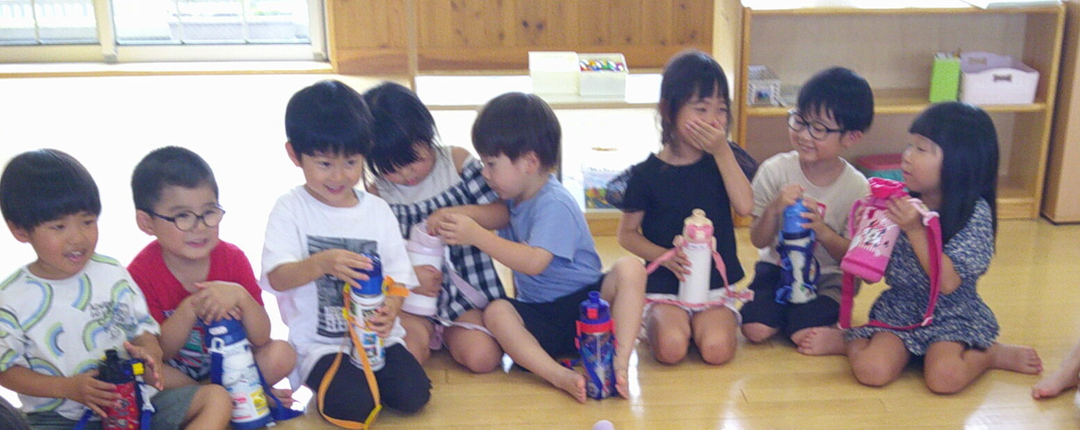 「みんなで、お茶飲もうか」と保育士が声をかけると、自然にサークルになりおしゃべりしながら水分補給!