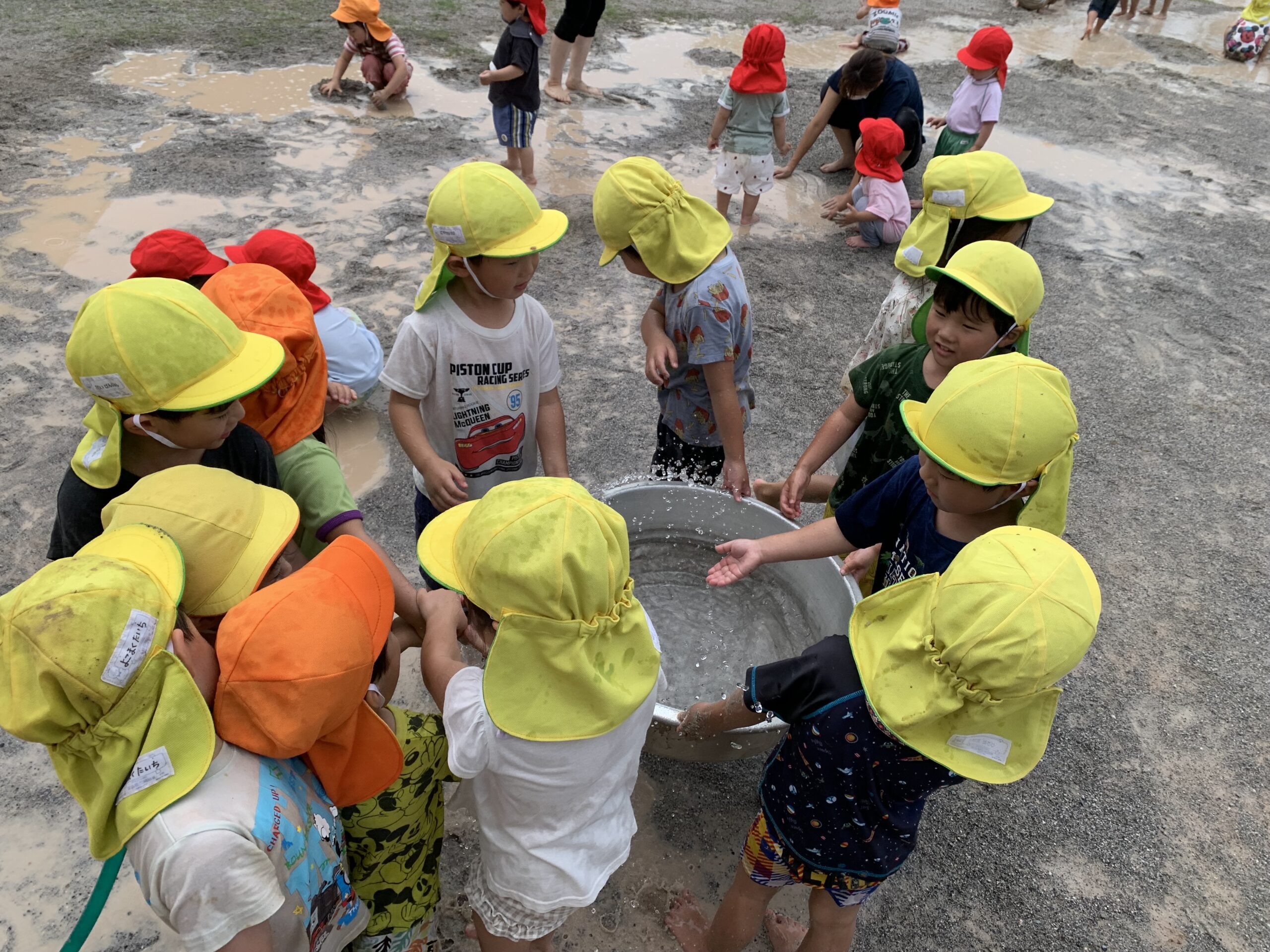 りす組さんとぱんだ組さん、元気にどろんこ遊びに飛び出しました!