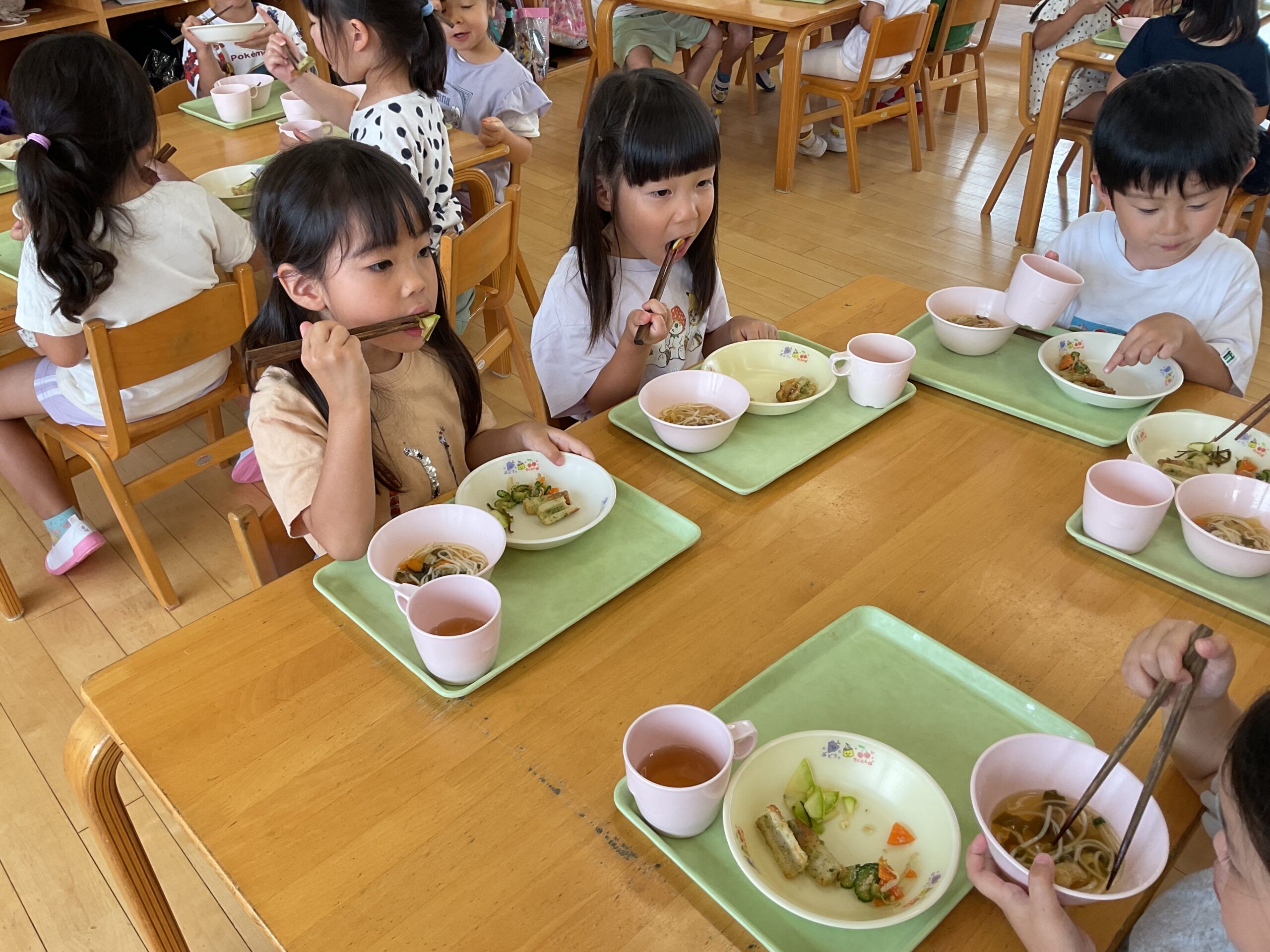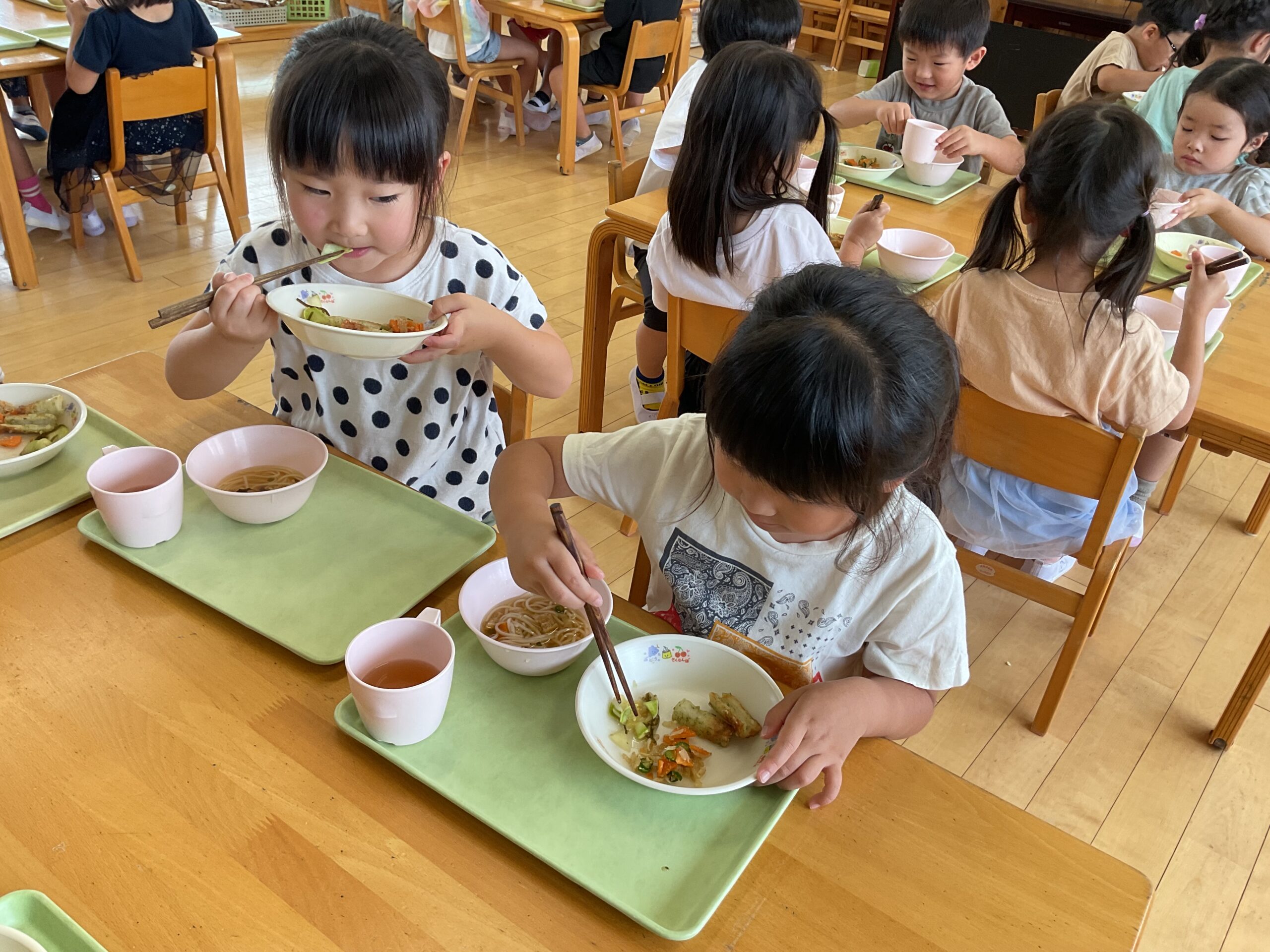 そして、完成したズッキーニの塩昆布和えは、お給食と一緒に食べました😆