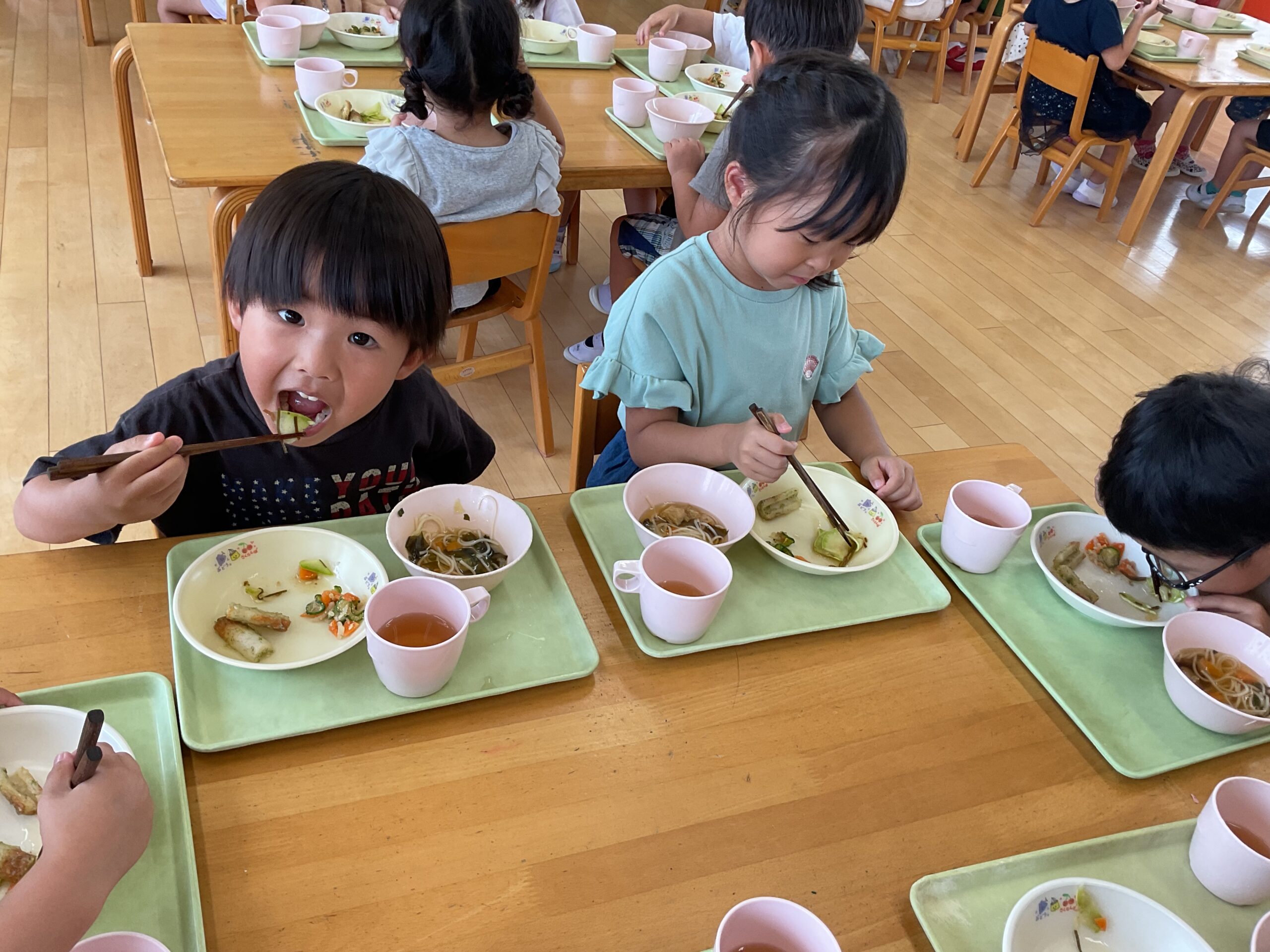 ズッキーニを初めて食べる子もいたりと、興味津々の表情を見せてくれる子どもたち。
