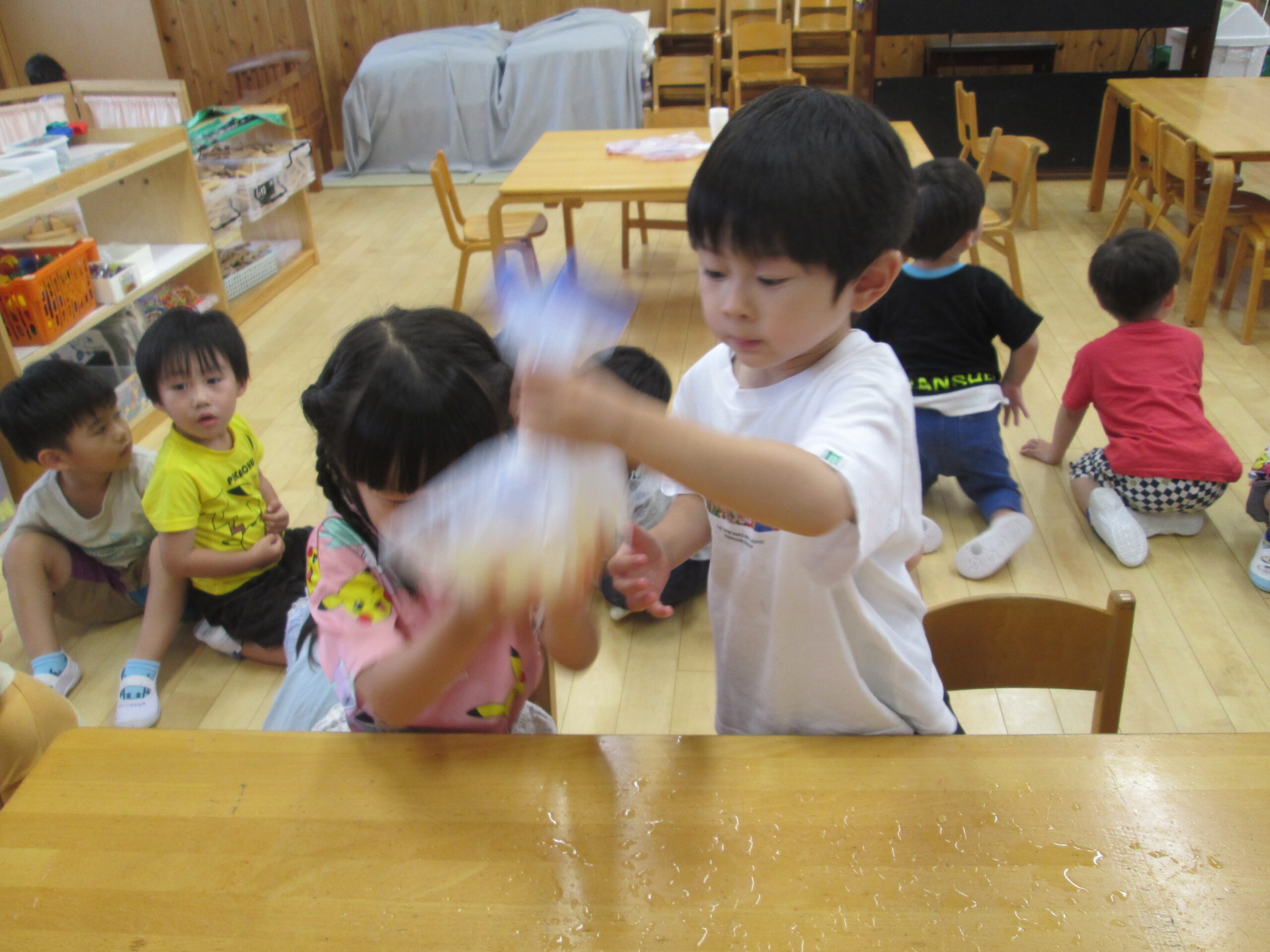 雨の保育園も、室内は夏らしい遊びで溢れました😆