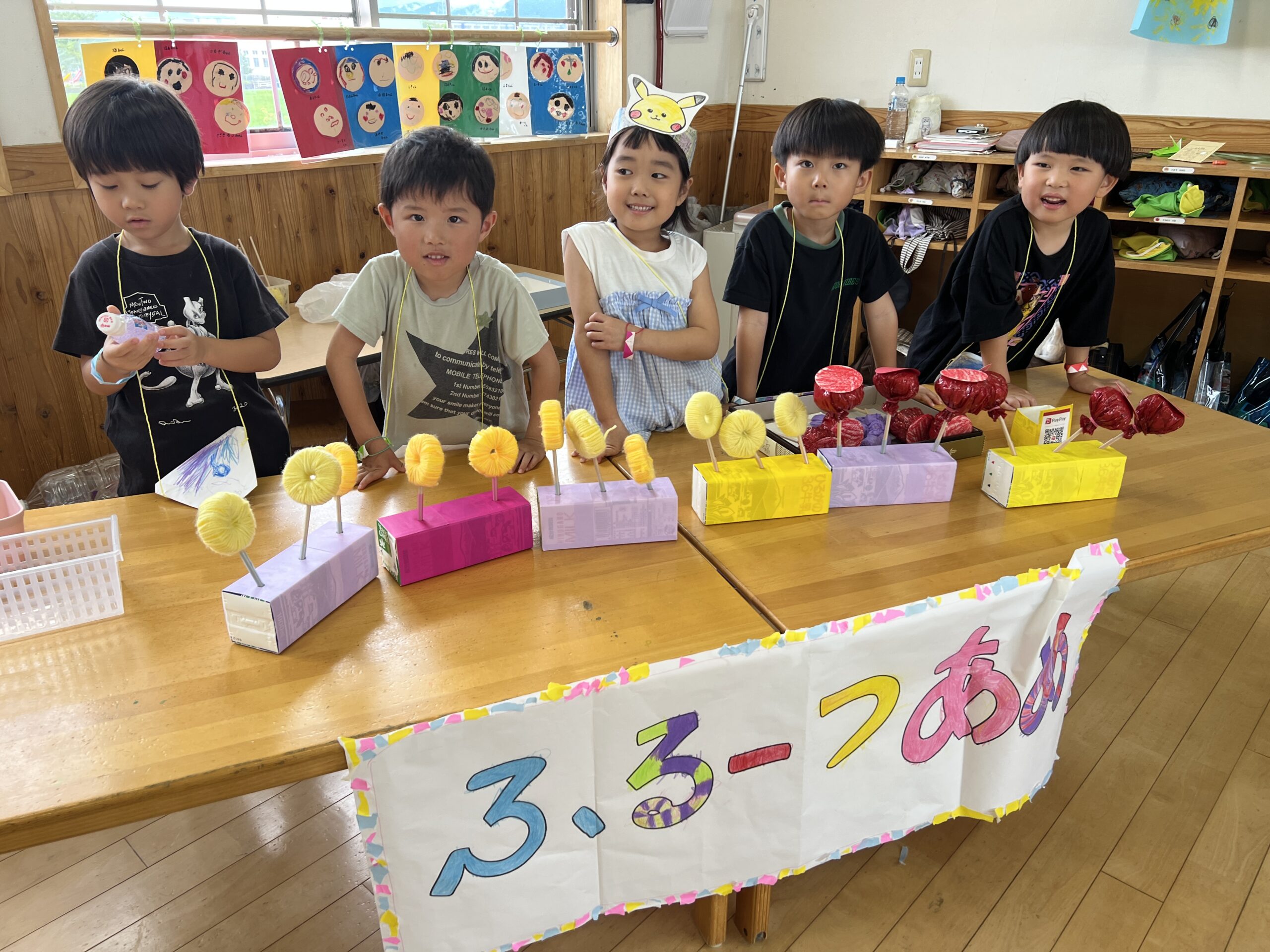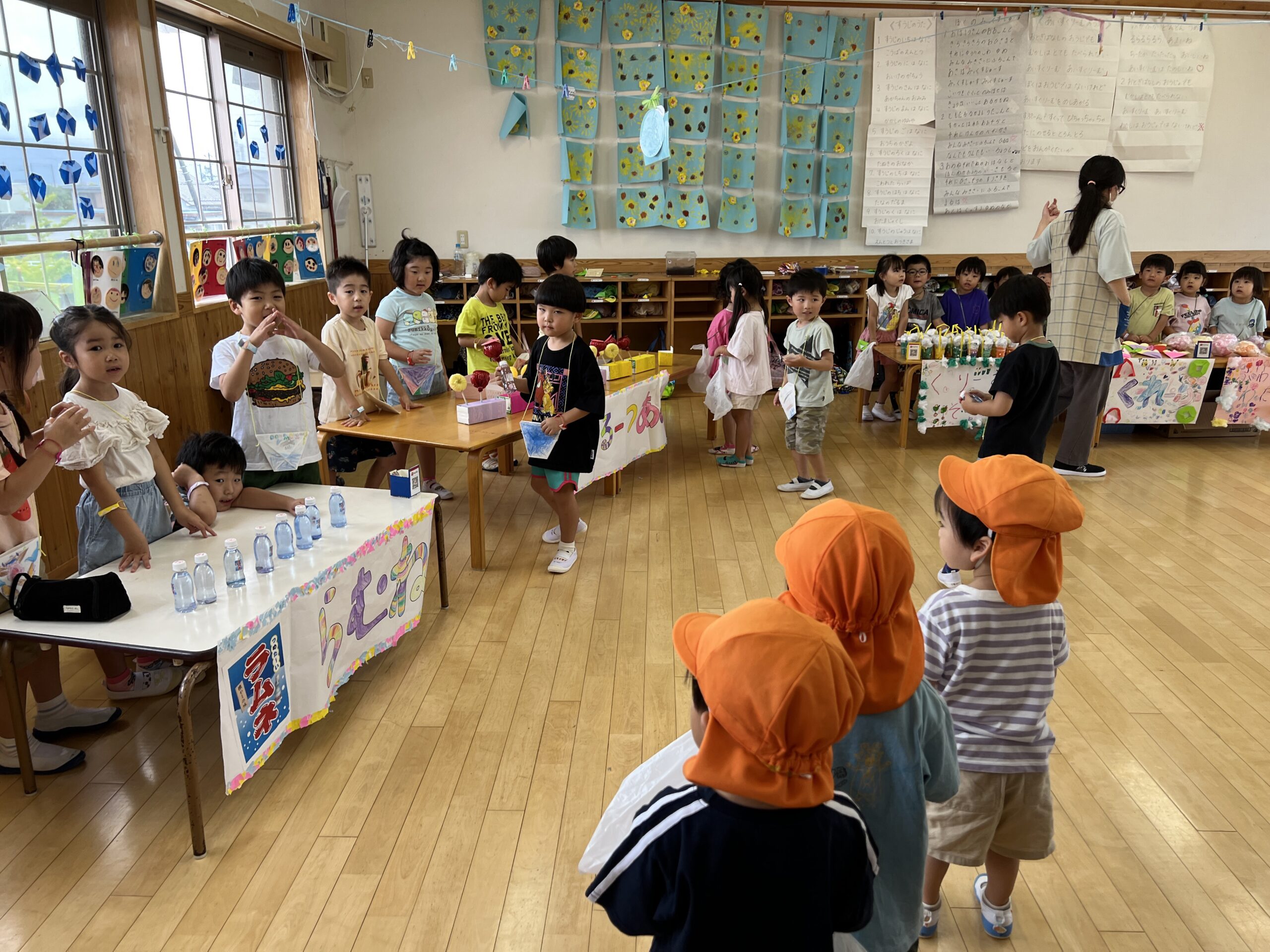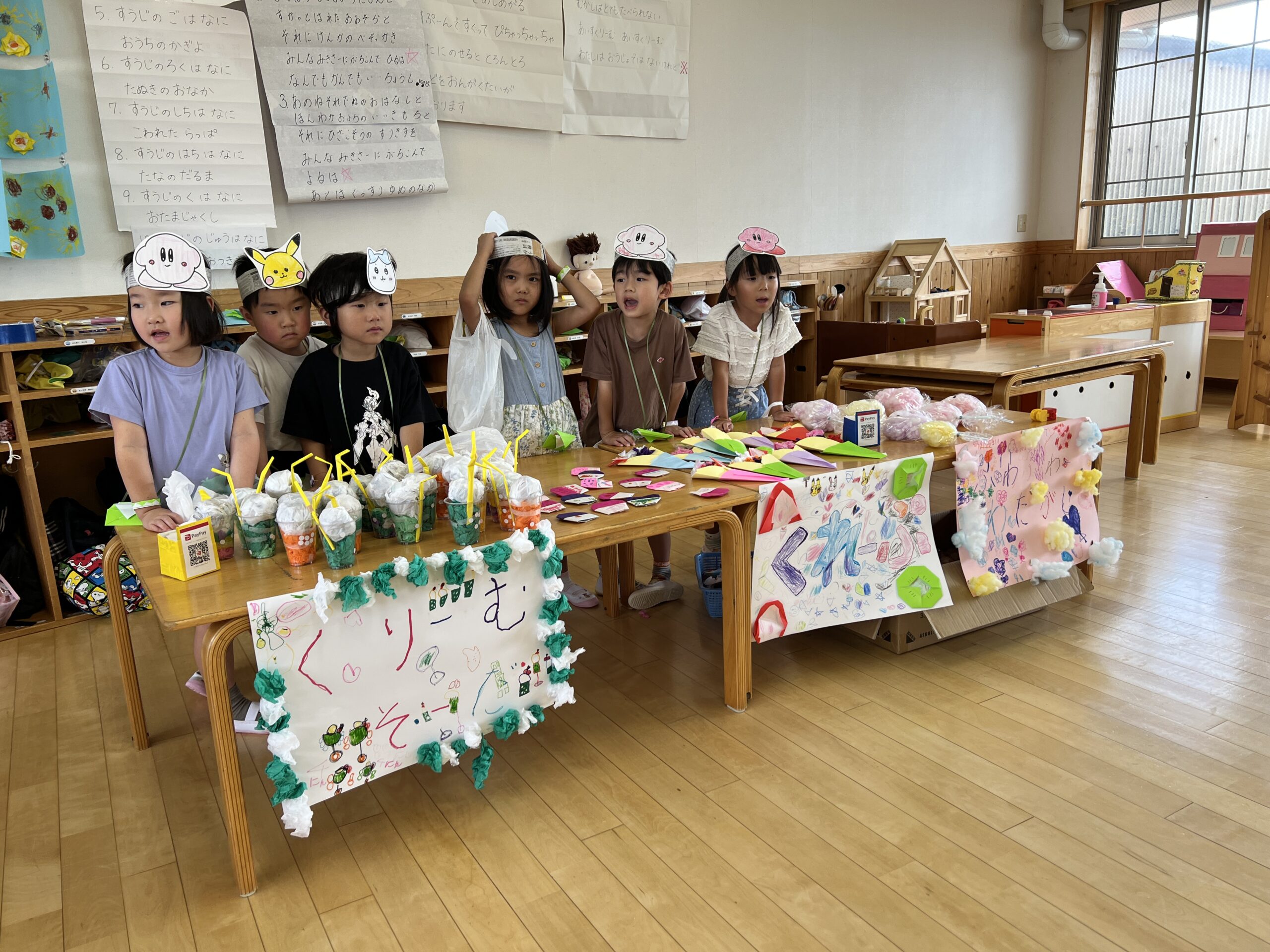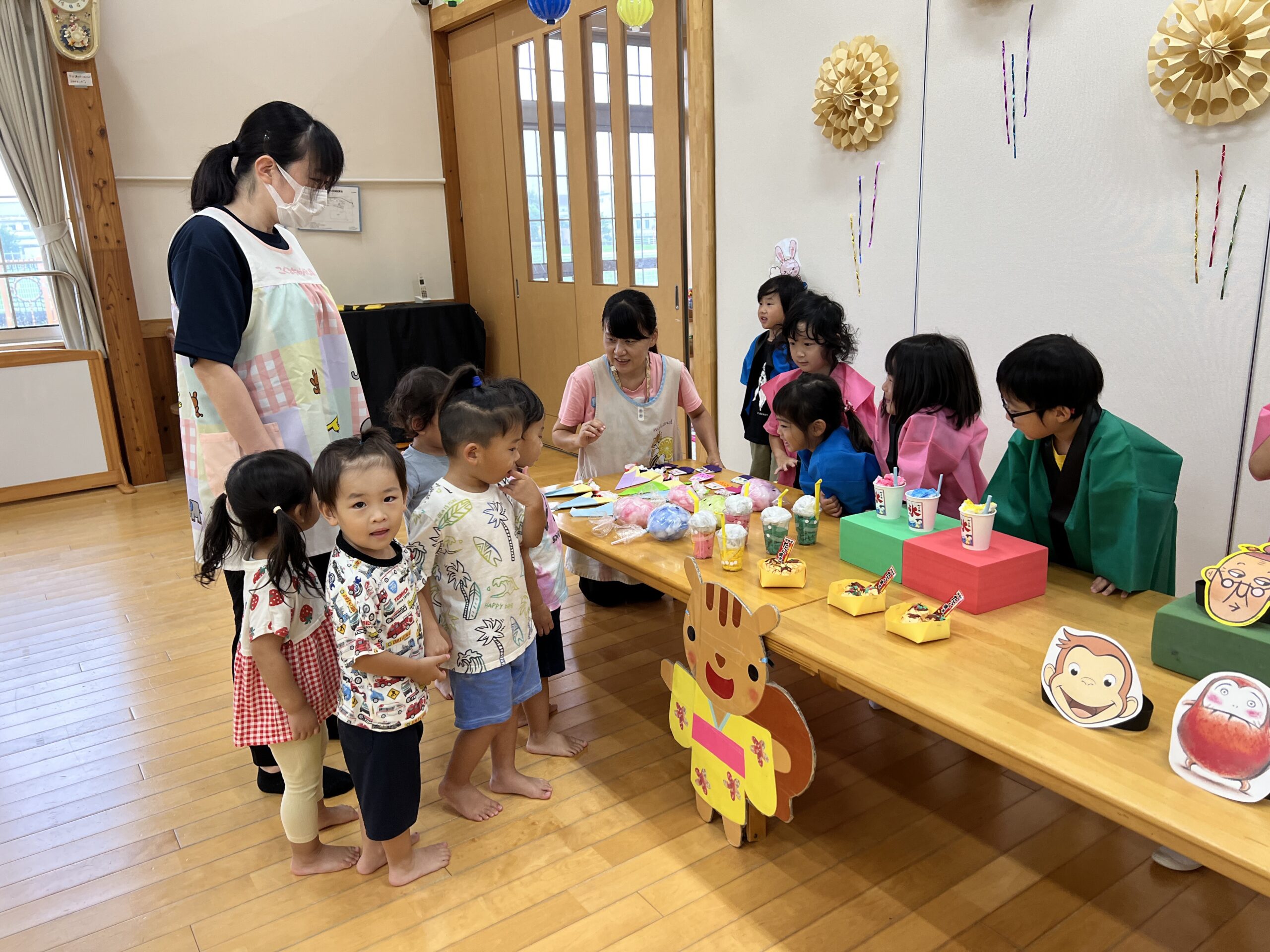 みんなで作ったものを並べたり飾り、夏祭りを開催しました🍧