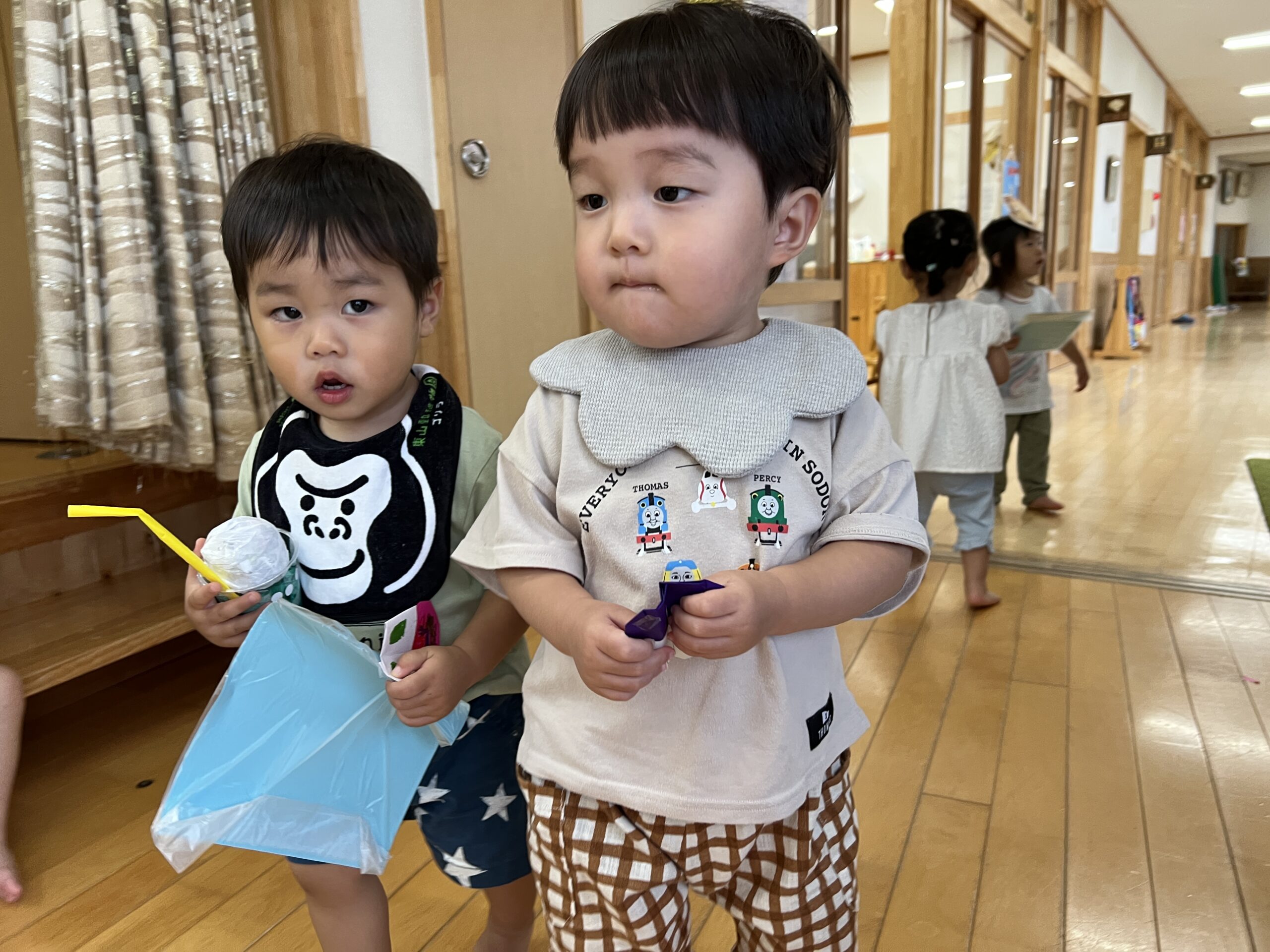 ホールを出る頃には買ったものを大切そうに自分で持ったり「これ買ったよ!」と保育士に見せるようにしたり明るい表情で自分のお部屋に戻る子どもたちです☺️