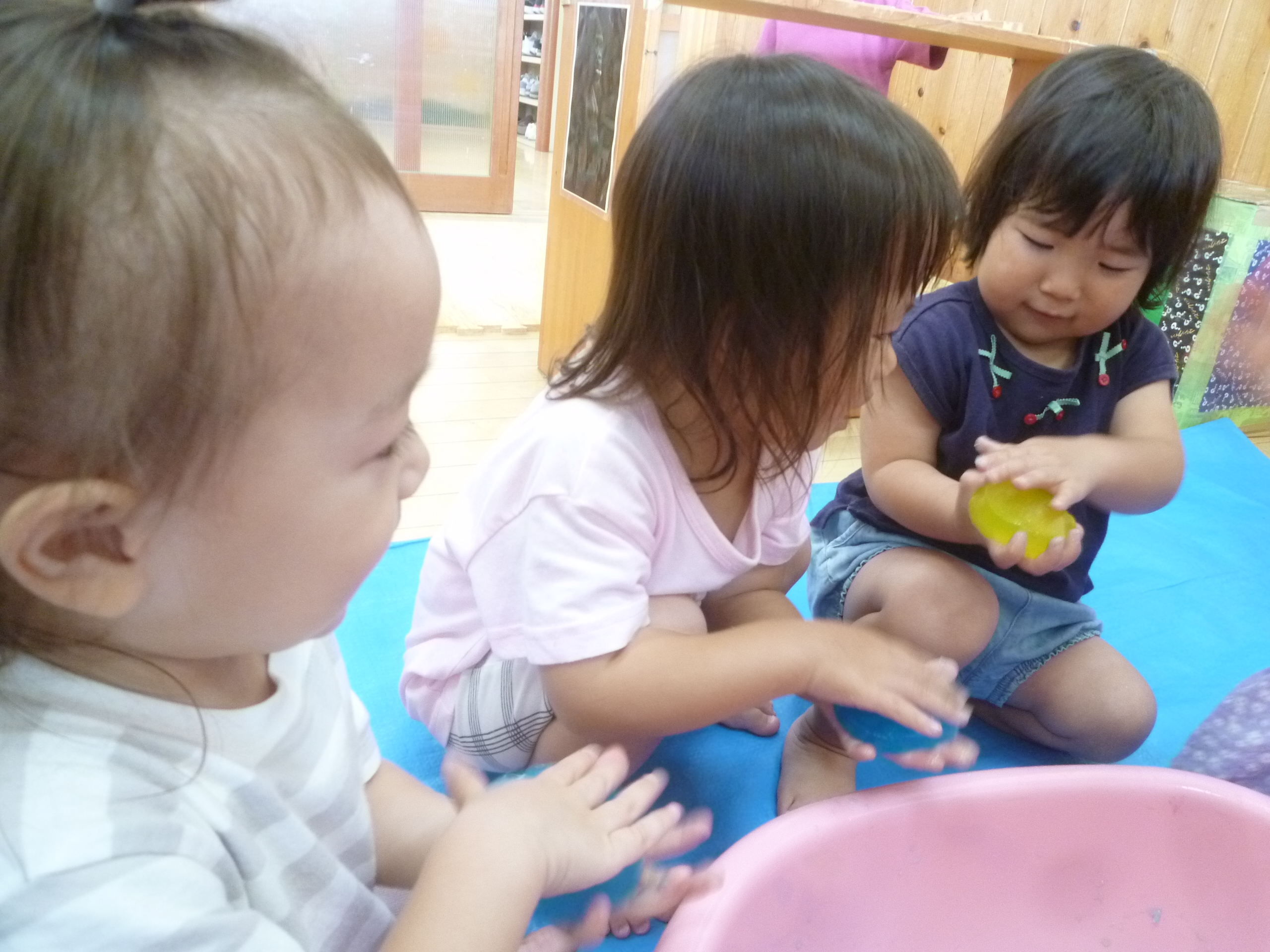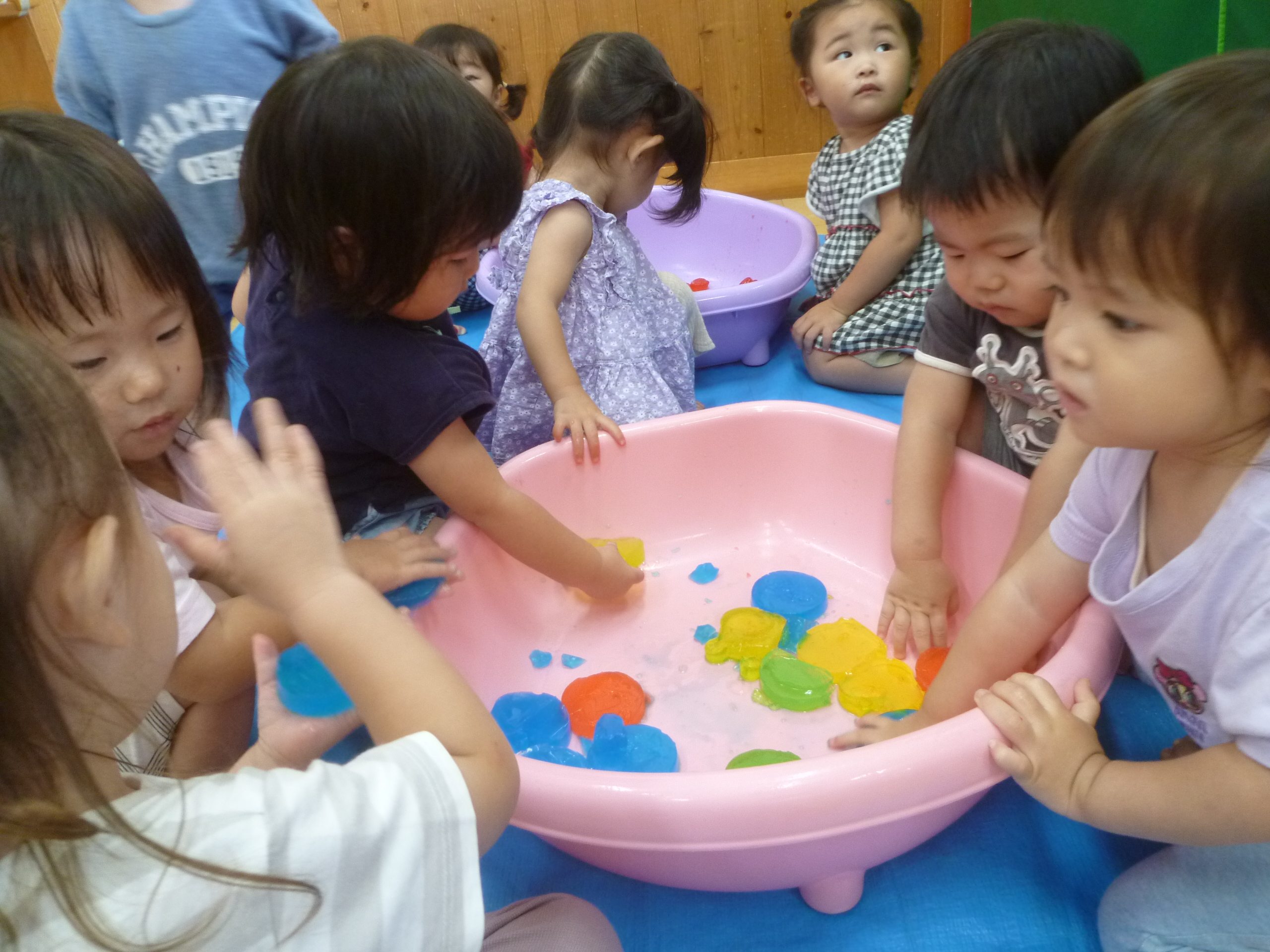 寒天遊びを楽しみました😊冷たくて気持ち良くて30分以上は楽しんでいました。
