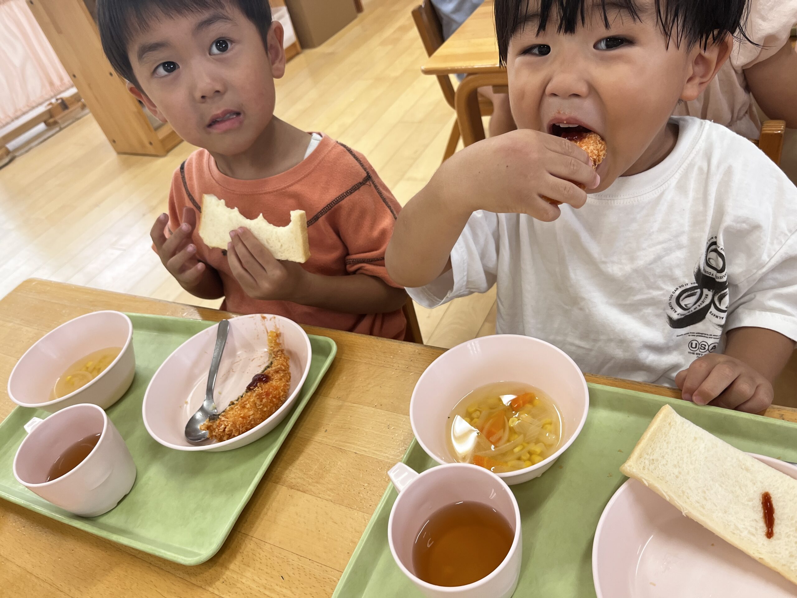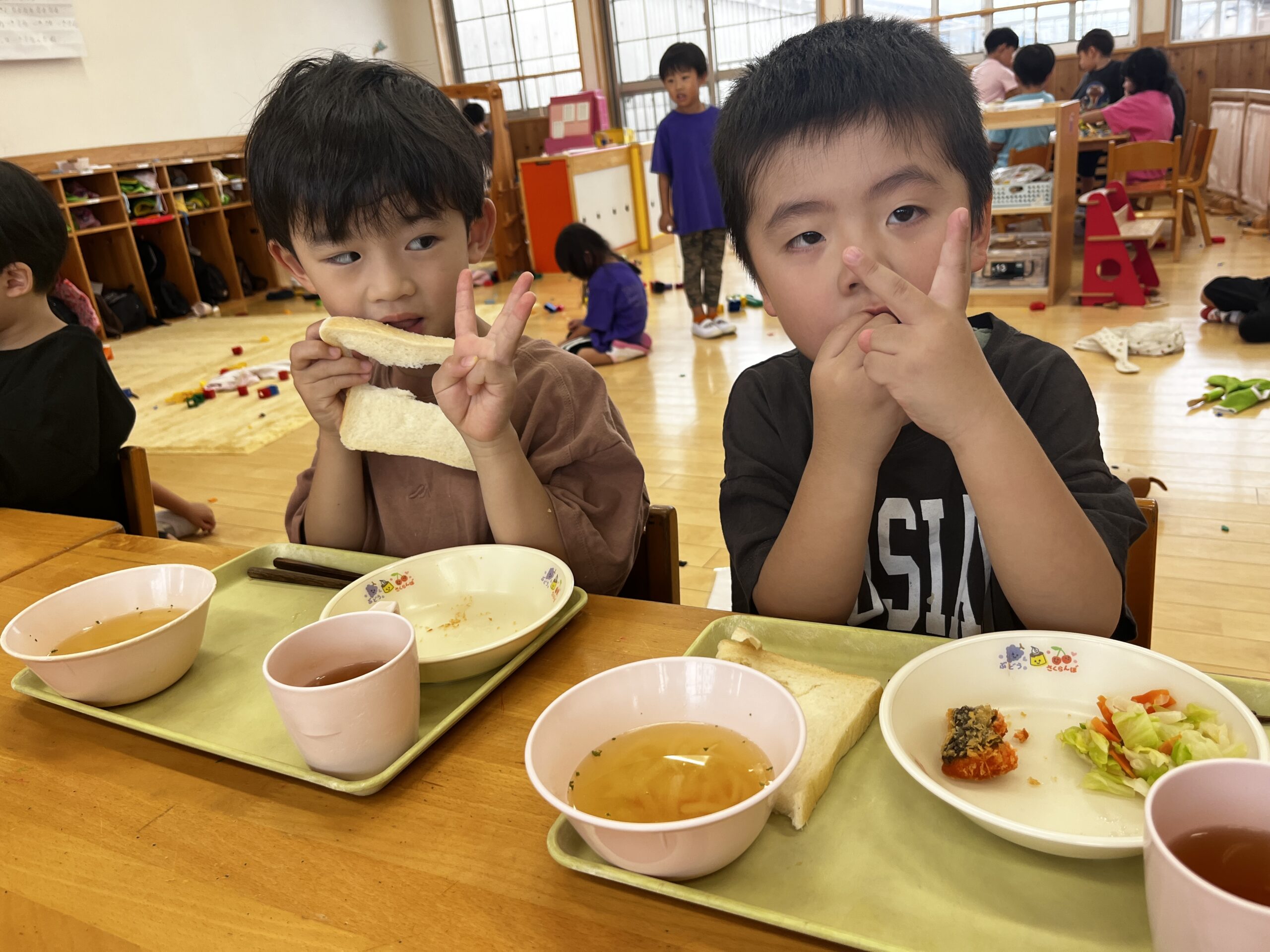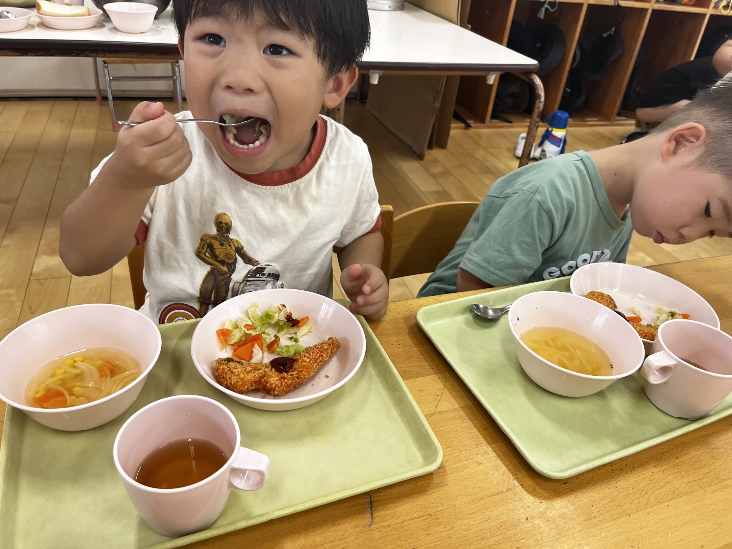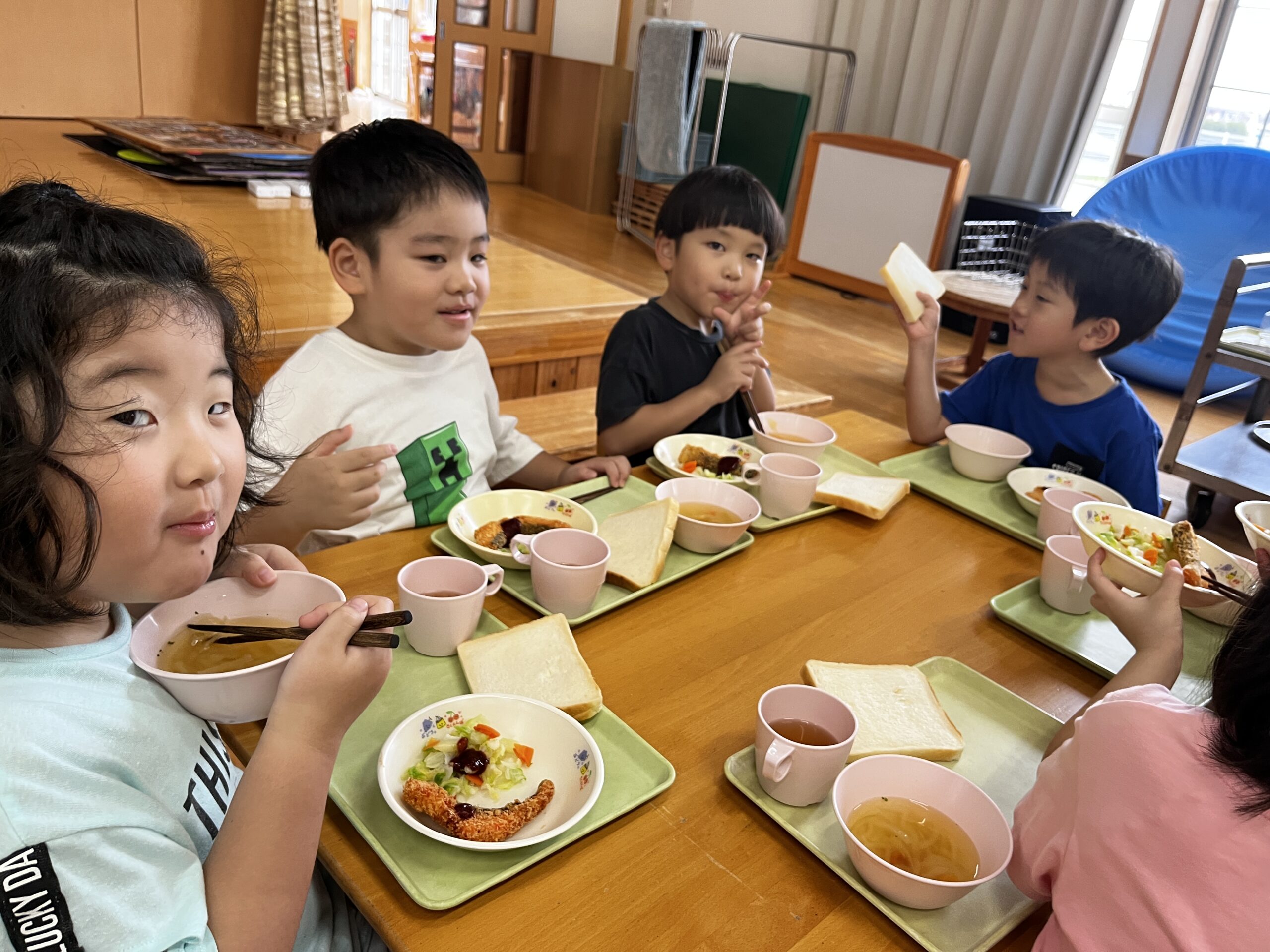 みんなで食べるお給食は美味しいね🍚