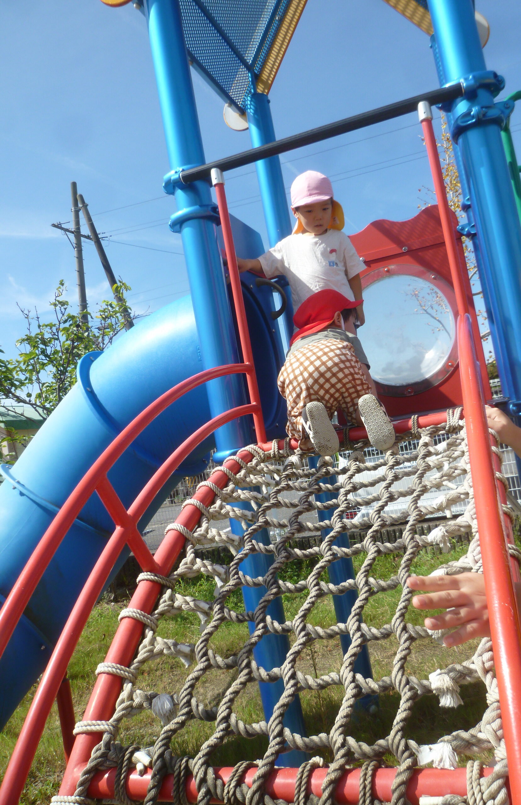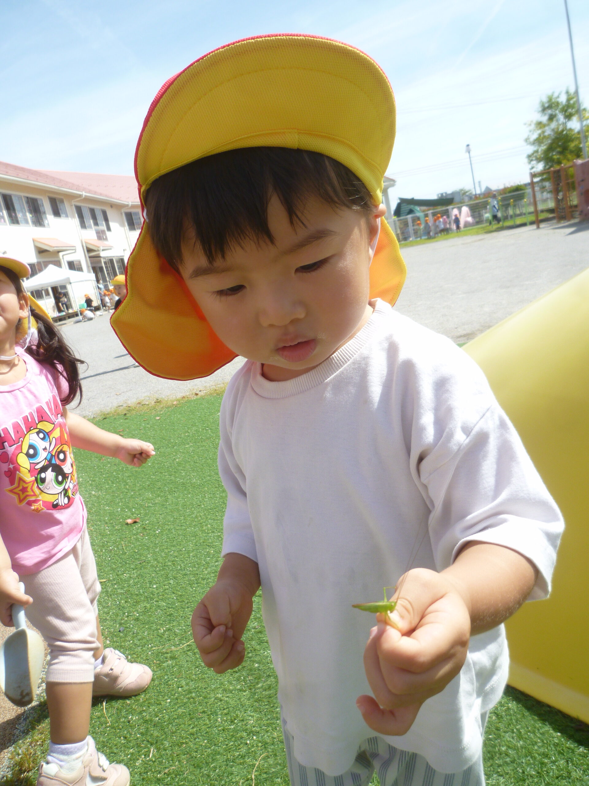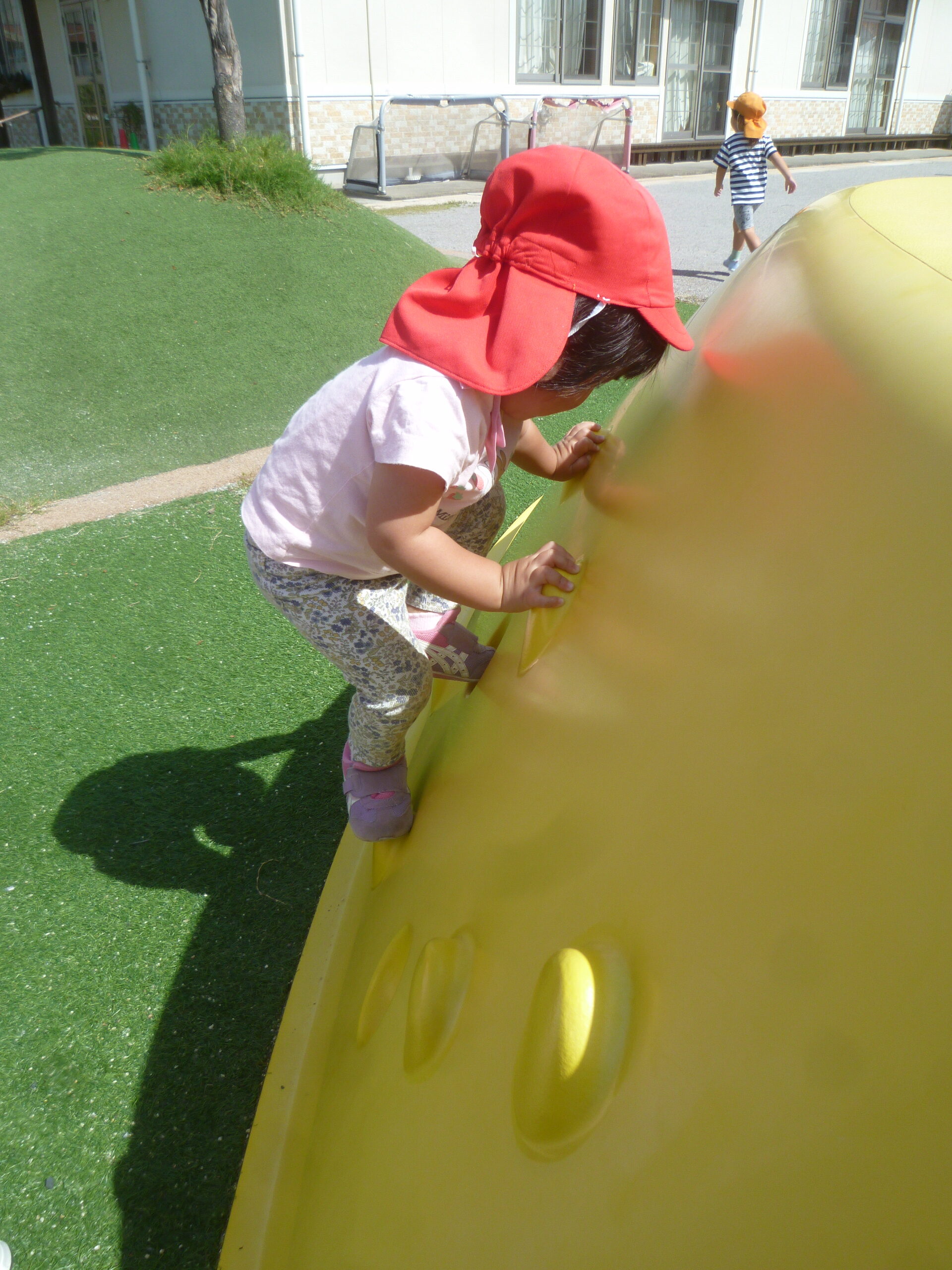 戸外遊びでは太鼓橋や大きい滑り台にも挑戦❗️自分の力で足腰を使ってどんどん登っていく楽しさを味わったり、虫を捕まえて触れ合ったりしていきました♪