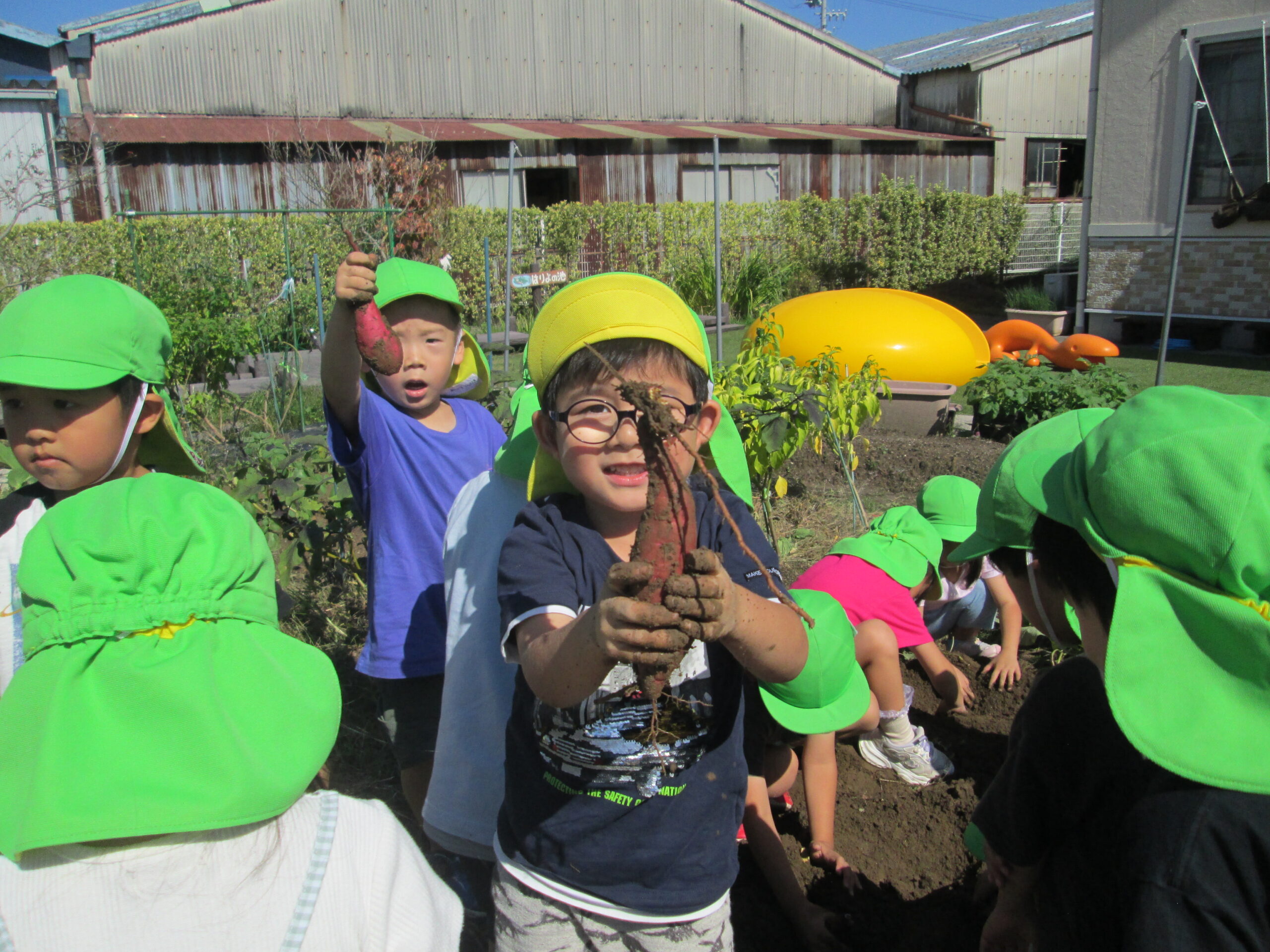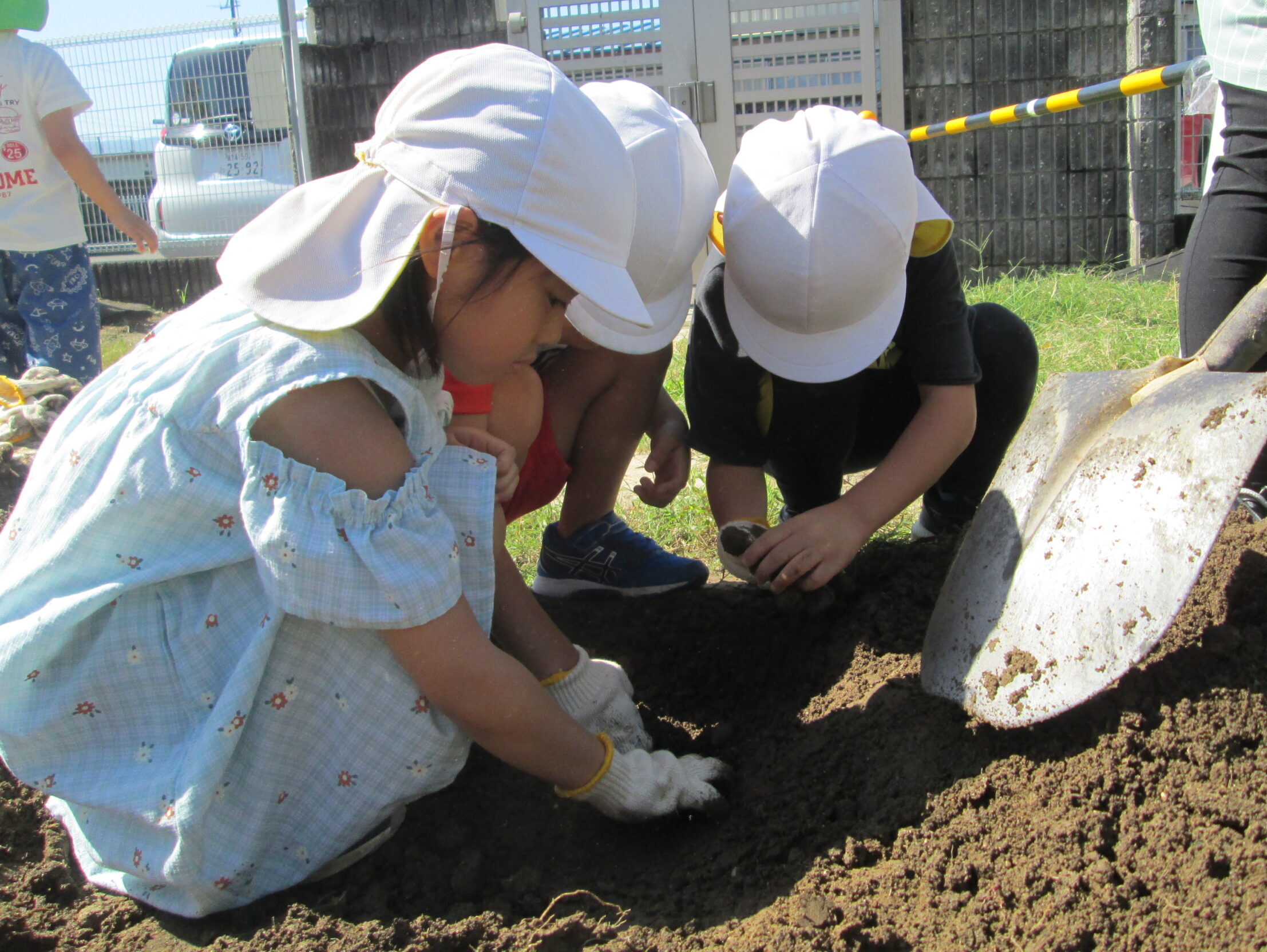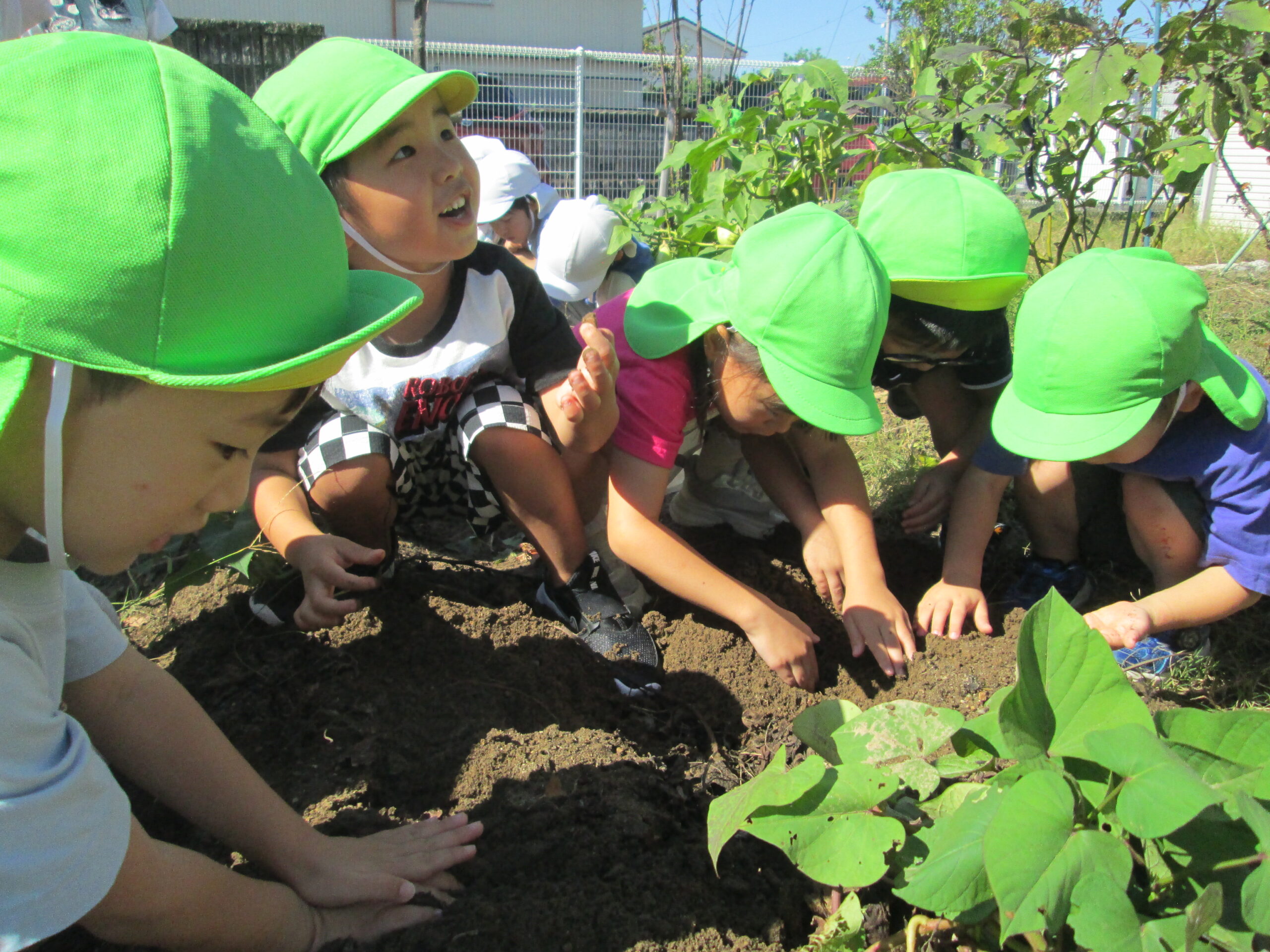 「ここにも芋ある!」「ここにあるかもしれない!」と真剣な表情で掘っている子どもたち✨