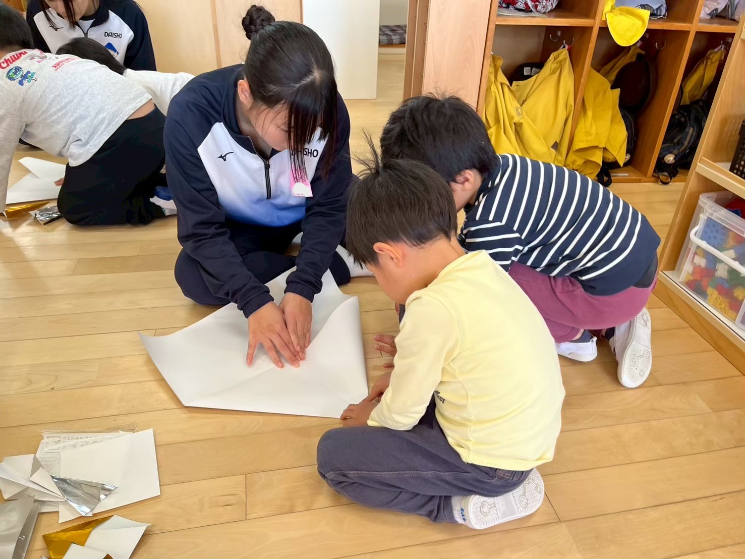 折り紙は、ちょっぴり難しかったけど、お兄さんお姉さんが優しく教えてくれたから大丈夫!!