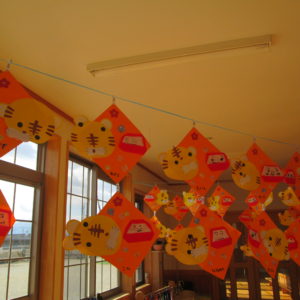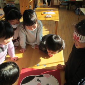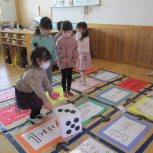 今日は、「お正月を楽しもう」ということで3・4・5歳児中心にお正月遊びを楽しみました(^^♪
