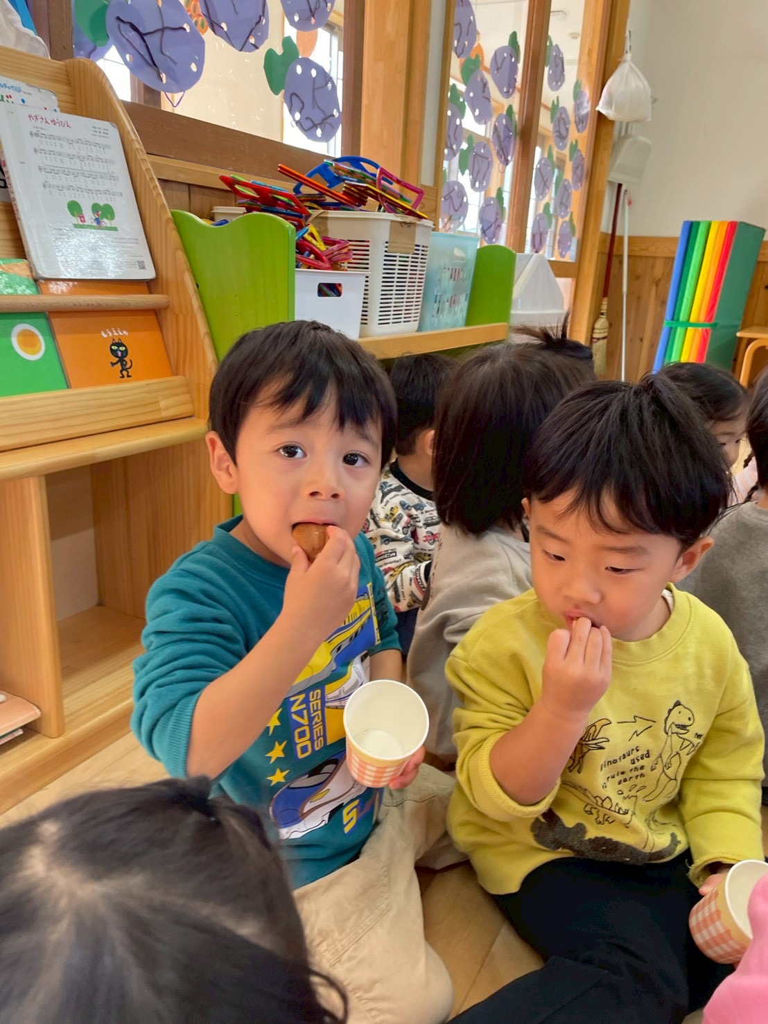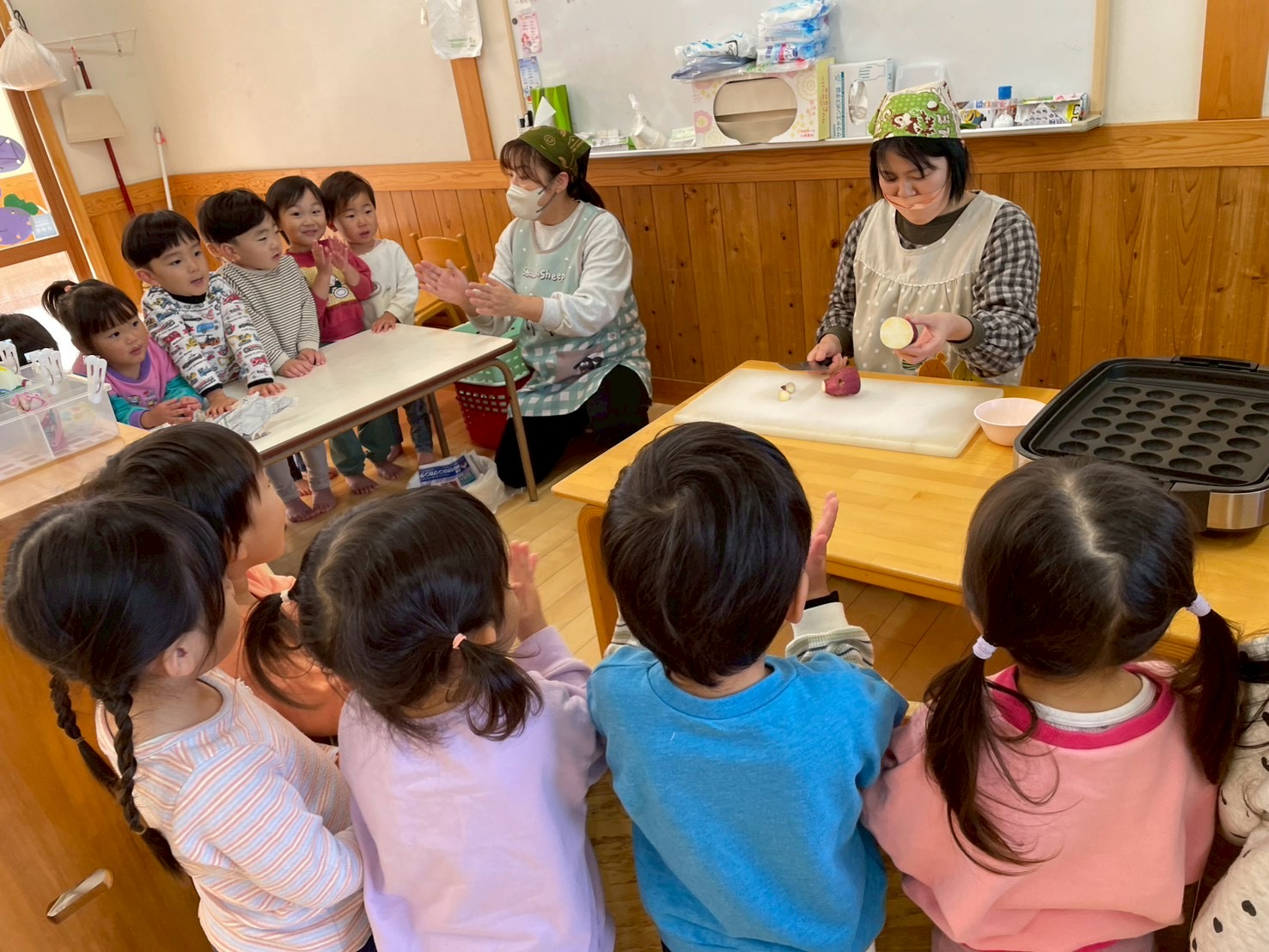 園の畑で収穫したさつまいもを使い、ベビーカステラを作って食べました✨
