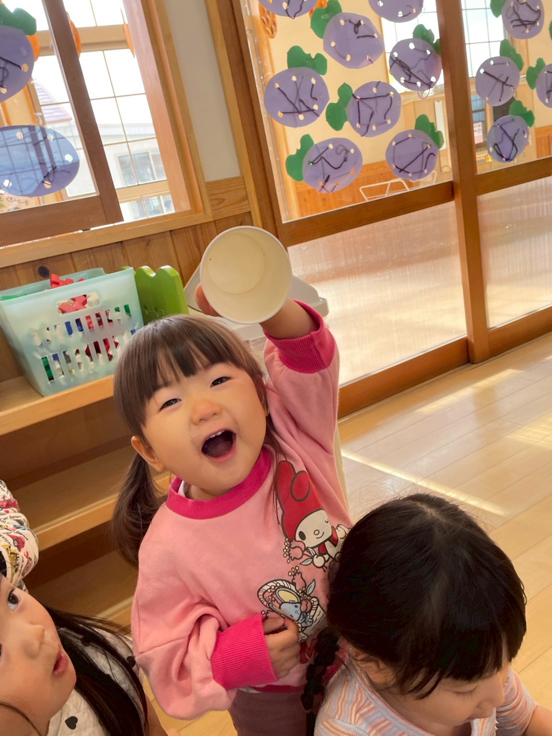 あっという間に食べて空っぽになった紙コップを見せてくれました。
