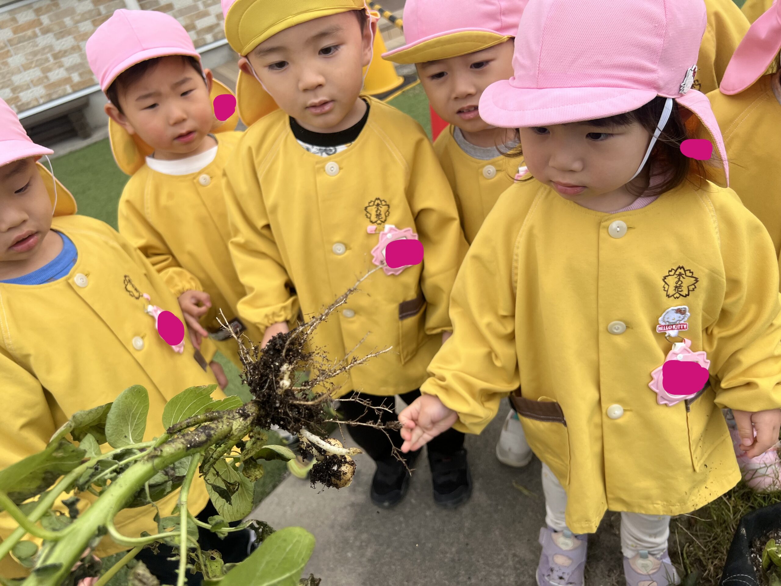 「うんとこしょ、どっこいしょ!」と掛け声を合わせてお友だちと協力して抜いてみることに・・・
