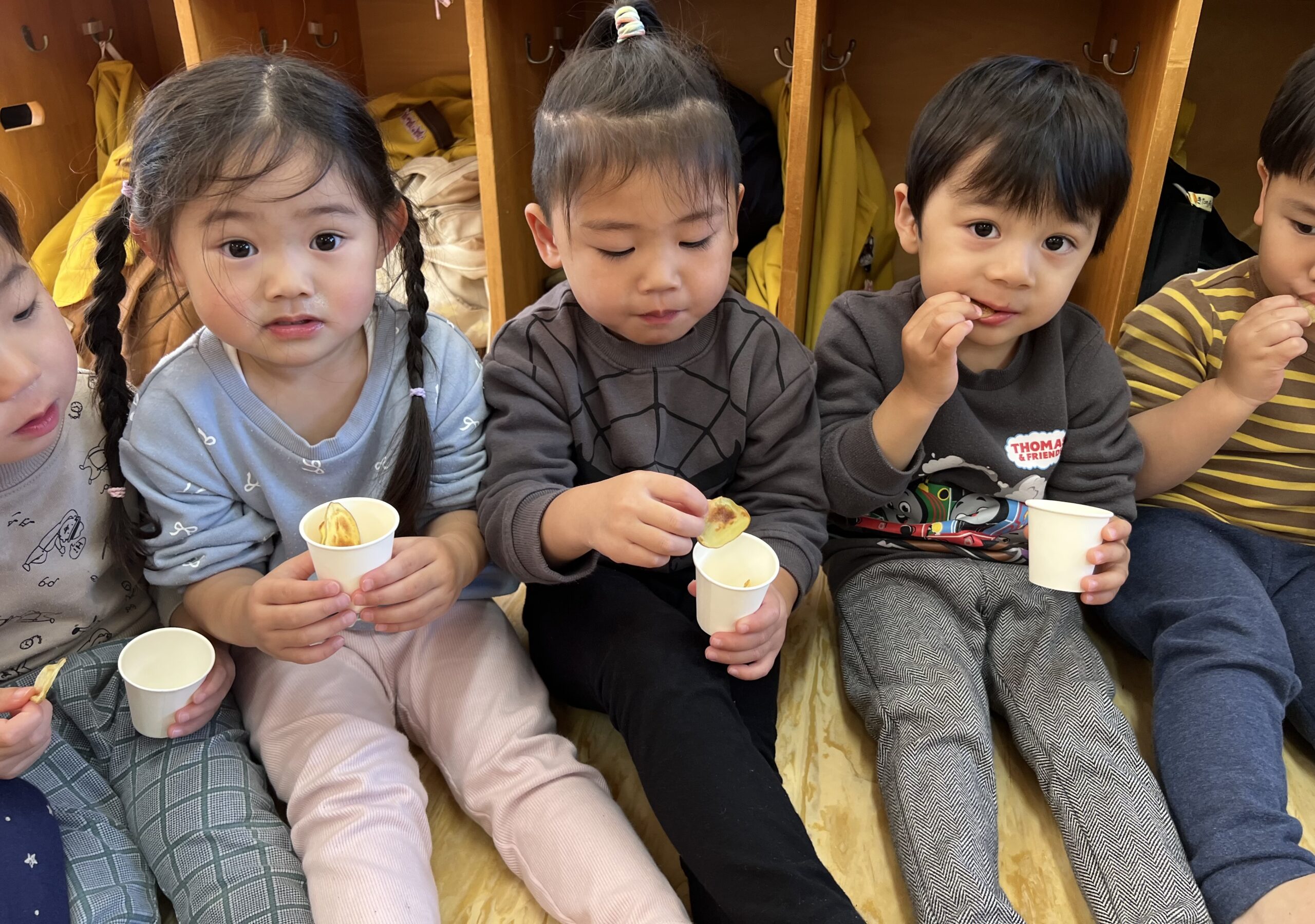 食べながら「おかわりあるかなぁ」「まだある?」「めっちゃおいしいっ」とたくさんお話してくれて、子どもたちがこの時間をおいしい・楽しいと感じてくれているのがとても伝わってきましたよ😊