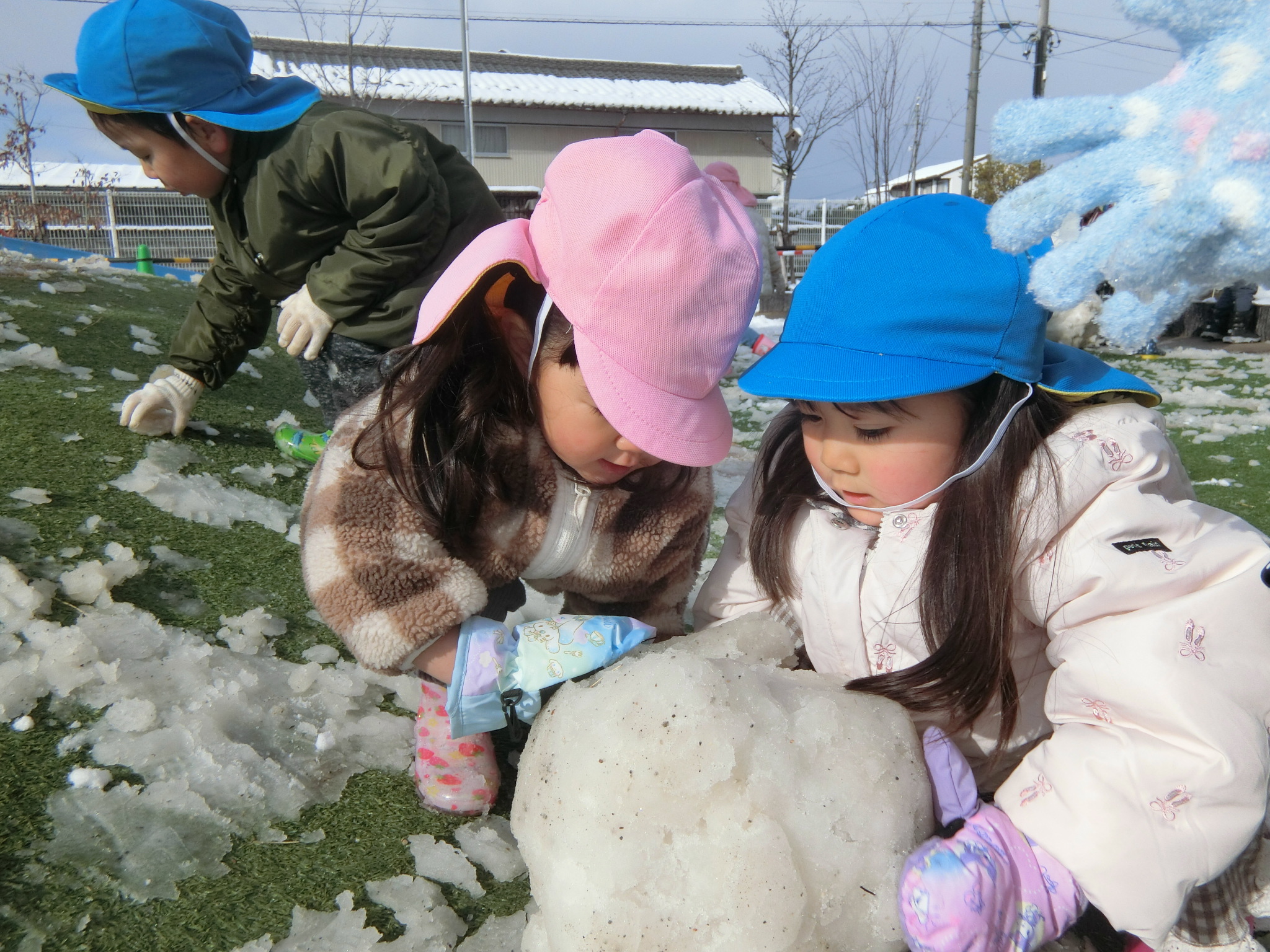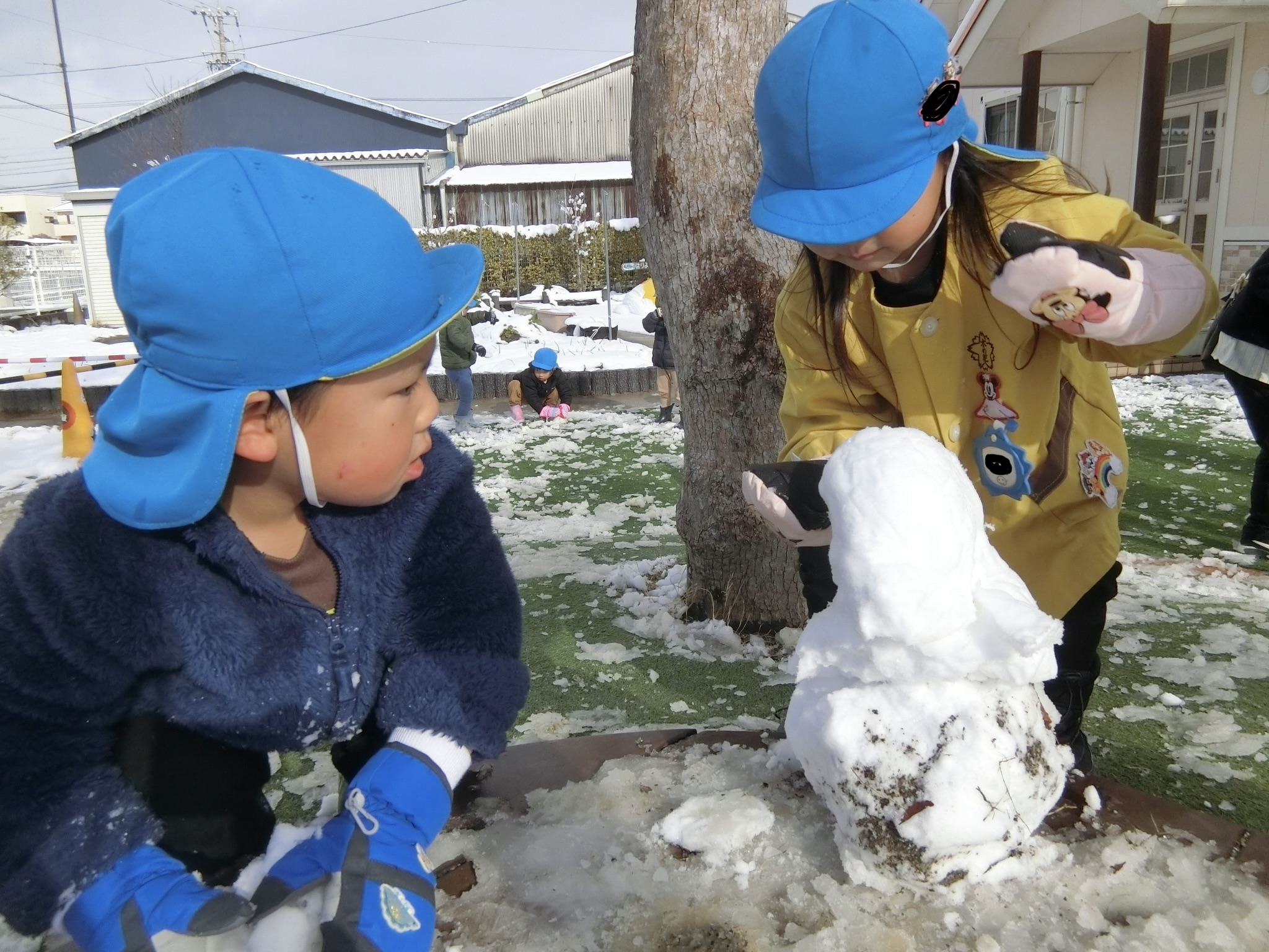 お友だちと協力して雪だるまを作ったり・・・⛄️