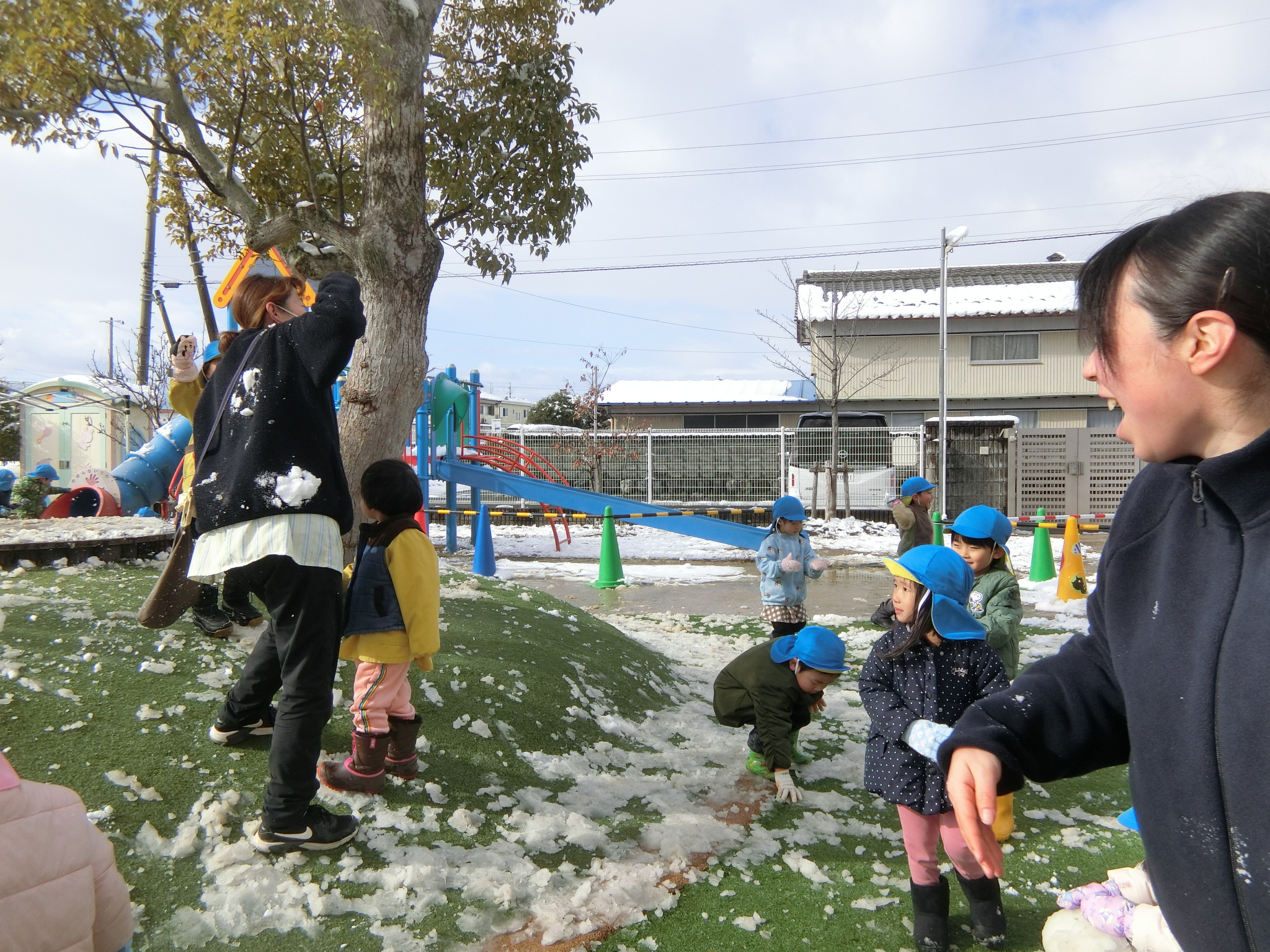 昨日少し積もっていた雪をかき集めて遊んだり溶けている雪で手を洗ったりと、早くたくさんの雪で遊びたいな〜と待ち遠しく思う子どもたちでした!