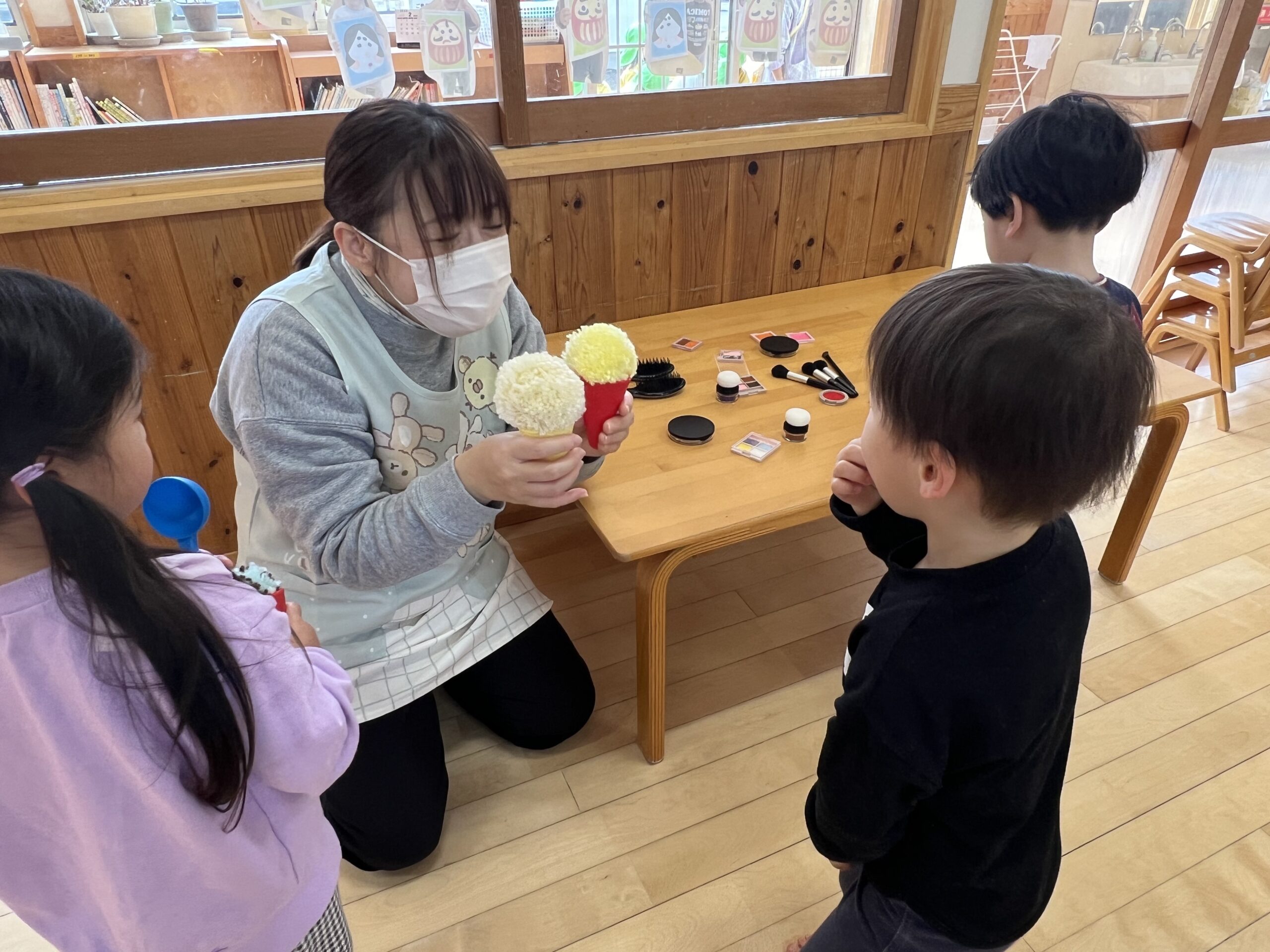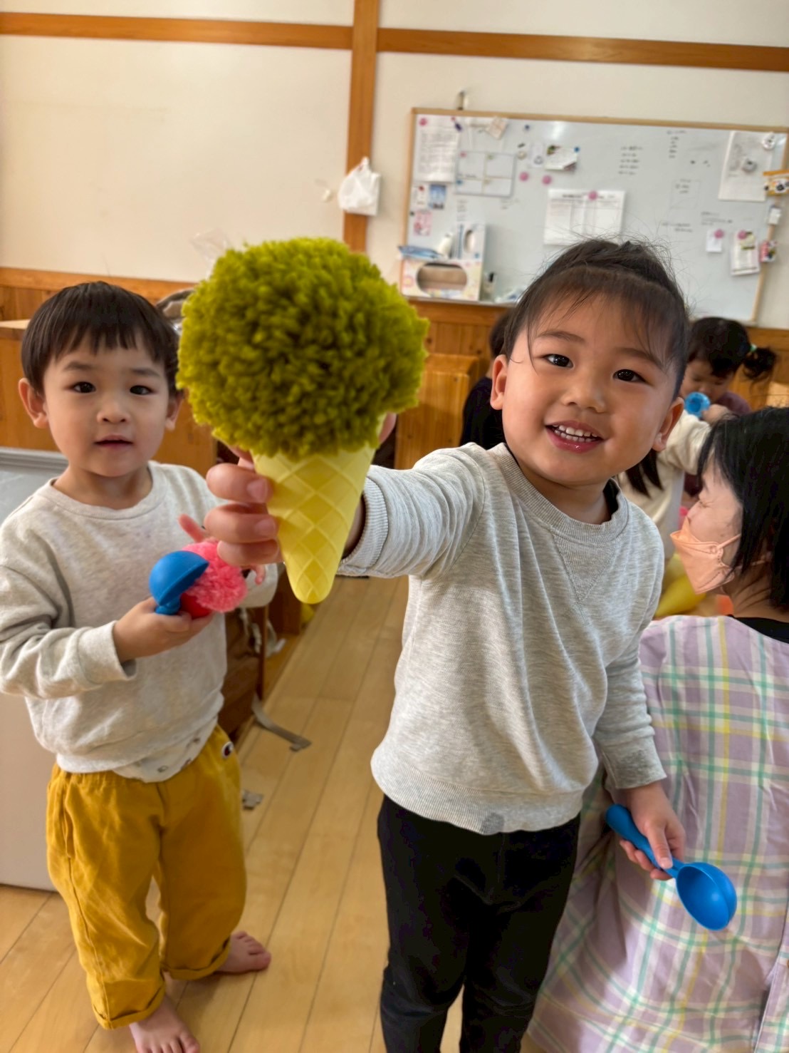 そして次の日にはおままごとのコーナーでさっそくアイスクリーム屋さんがオープン!!