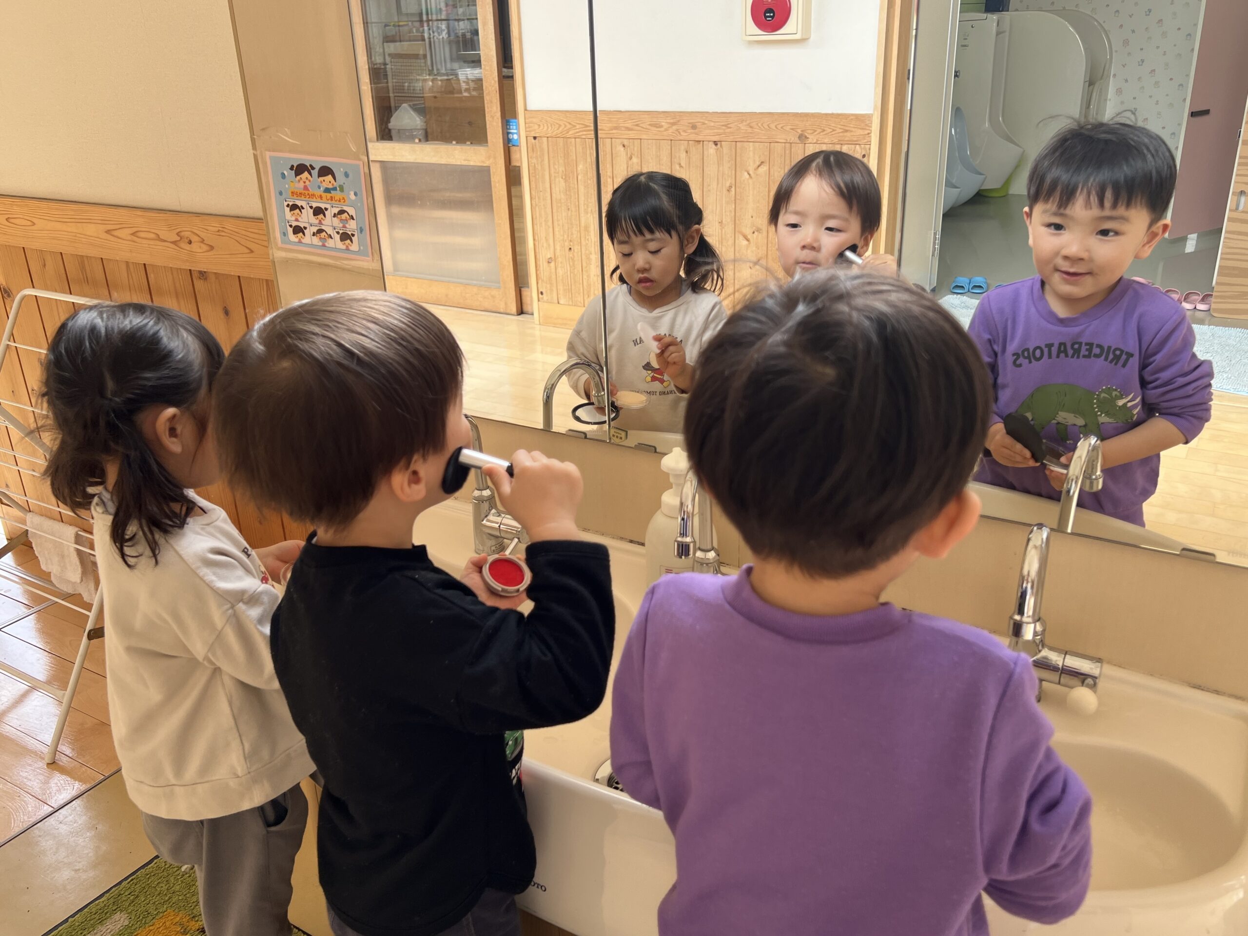 「あ、鏡見たい!!」とお友だちと廊下へ行き鏡を見ながら真剣な顔でお化粧したり・・・