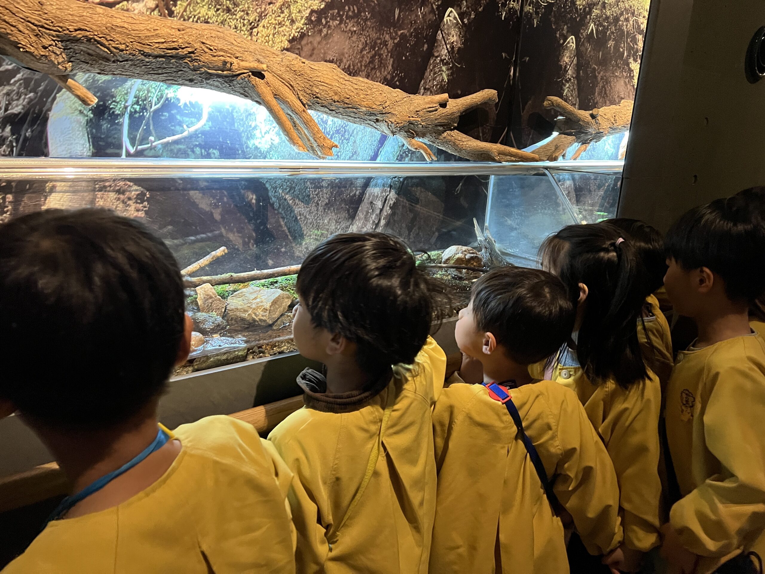 「わぁ!!オオサンショウウオだって😆」とみんなで観察👀