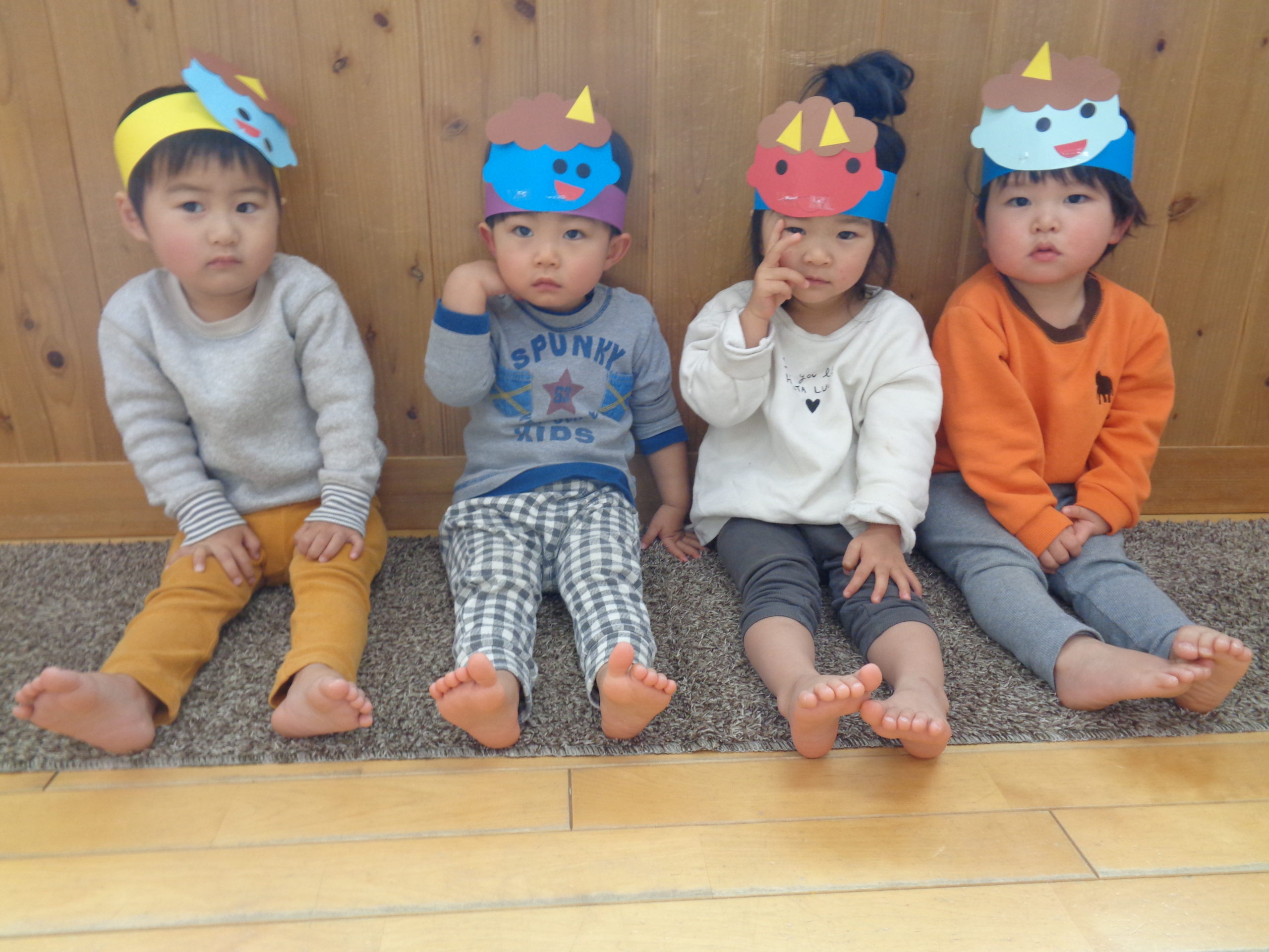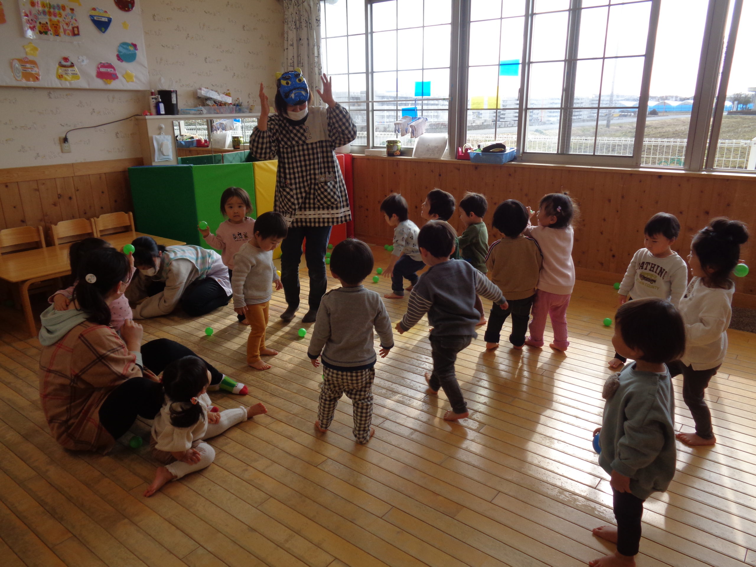ひよこ組の豆まきでは、たくさんの子が怖がることなく、