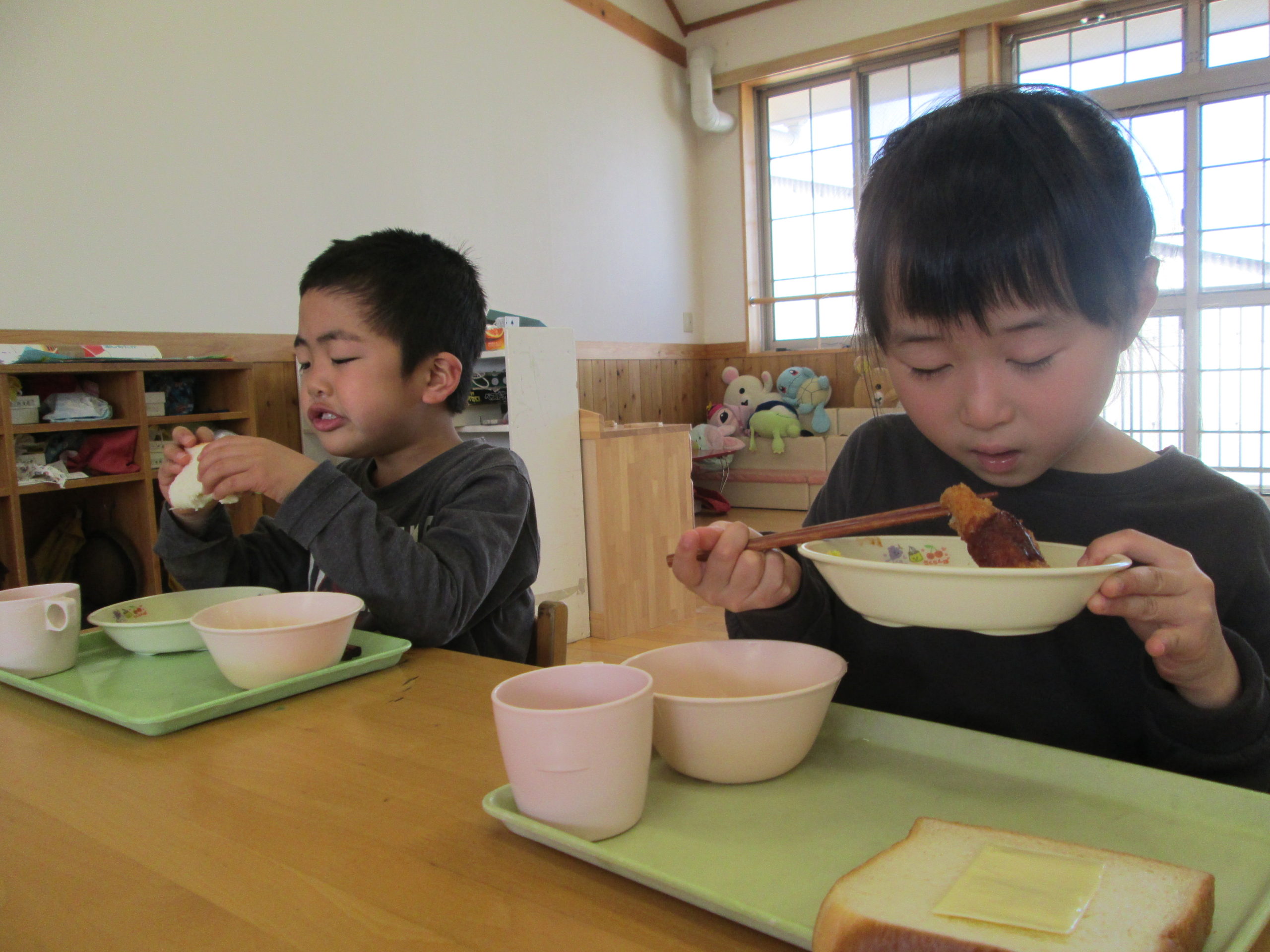 芽キャベツ採れたよ! 2022.03.15 ぞう組さんが園の畑で芽キャベツを収穫してきてくれました! 「ちいさいねえ」「いっぱいとれたね!」 「コロコロしてる!」 みんなが採ってきてくれた芽キャベツ! お給食のスープの中に入れました。 ぞう組さん、残飯なしで食べきってくれました! おいしく食べてくれてありがとう! < >