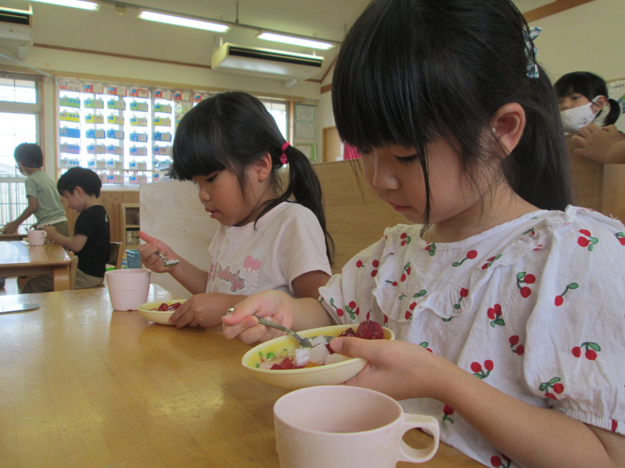 あじさいゼリーにしました!今日も暑かったので涼しげなゼリーは大人気!