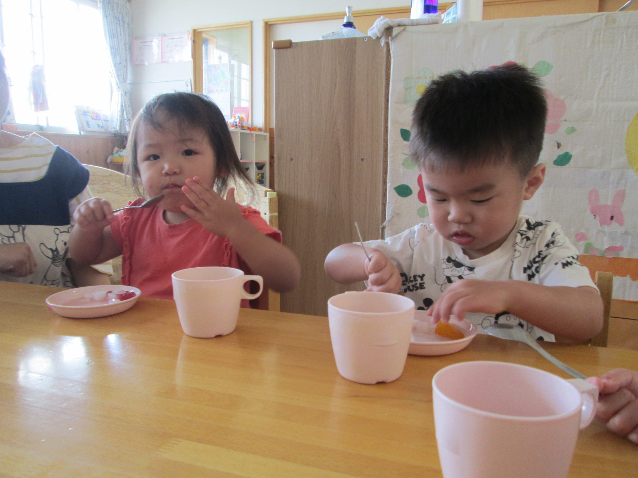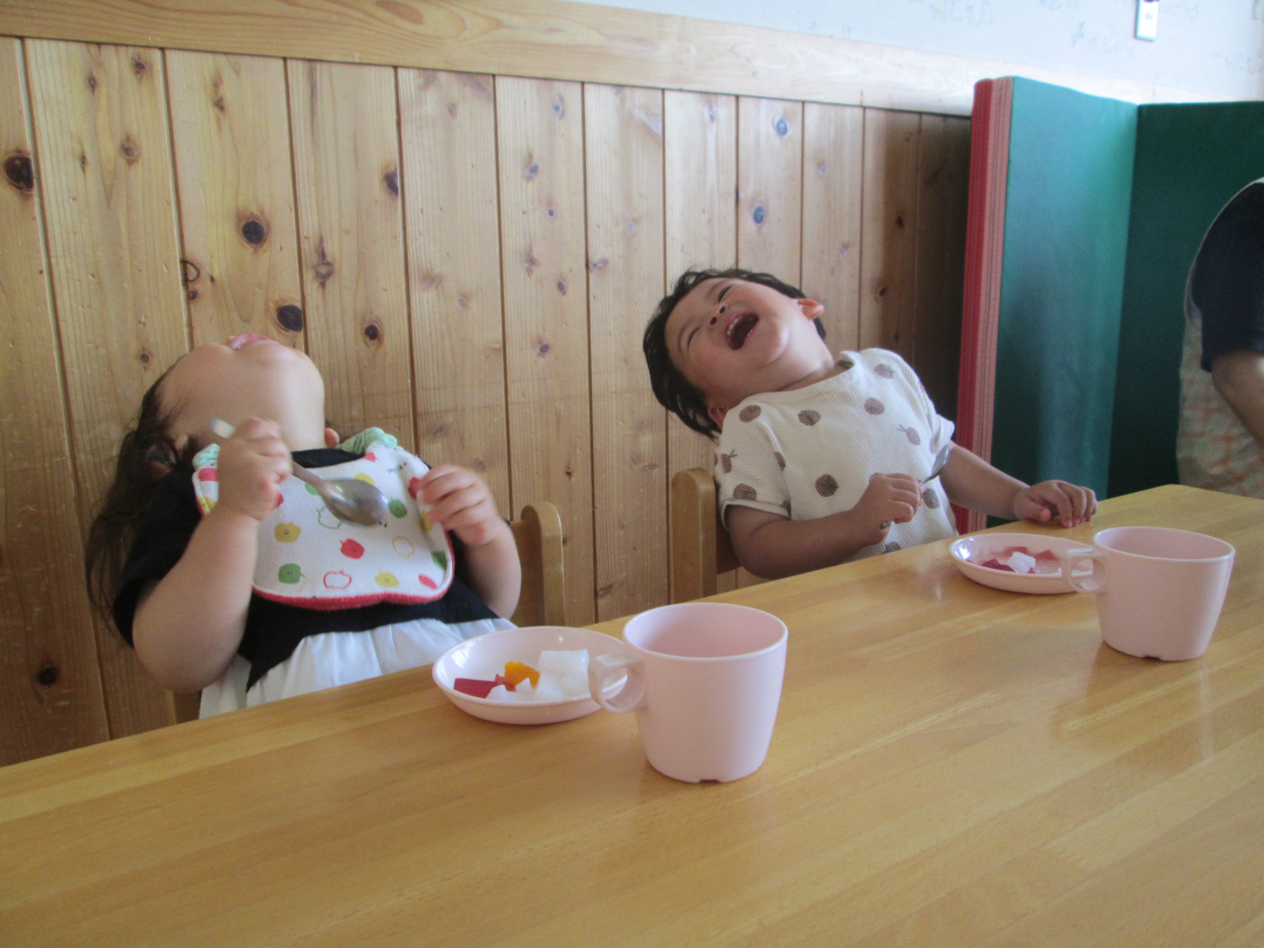 みんなお楽しみの誕生会ケーキは少し先取りですが、