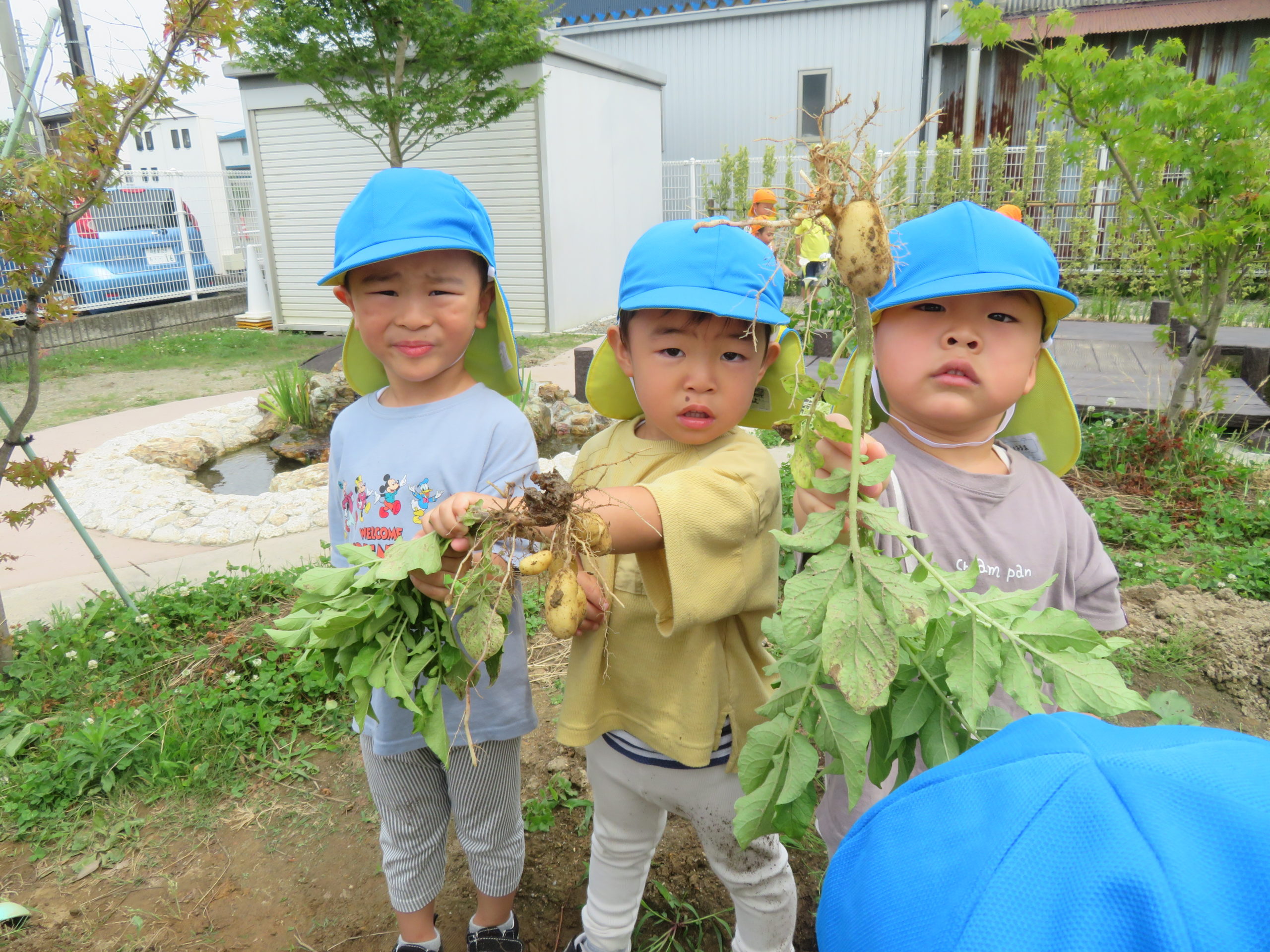りす組・ぺんぎん組のみんなでじゃがいも掘りをしました。