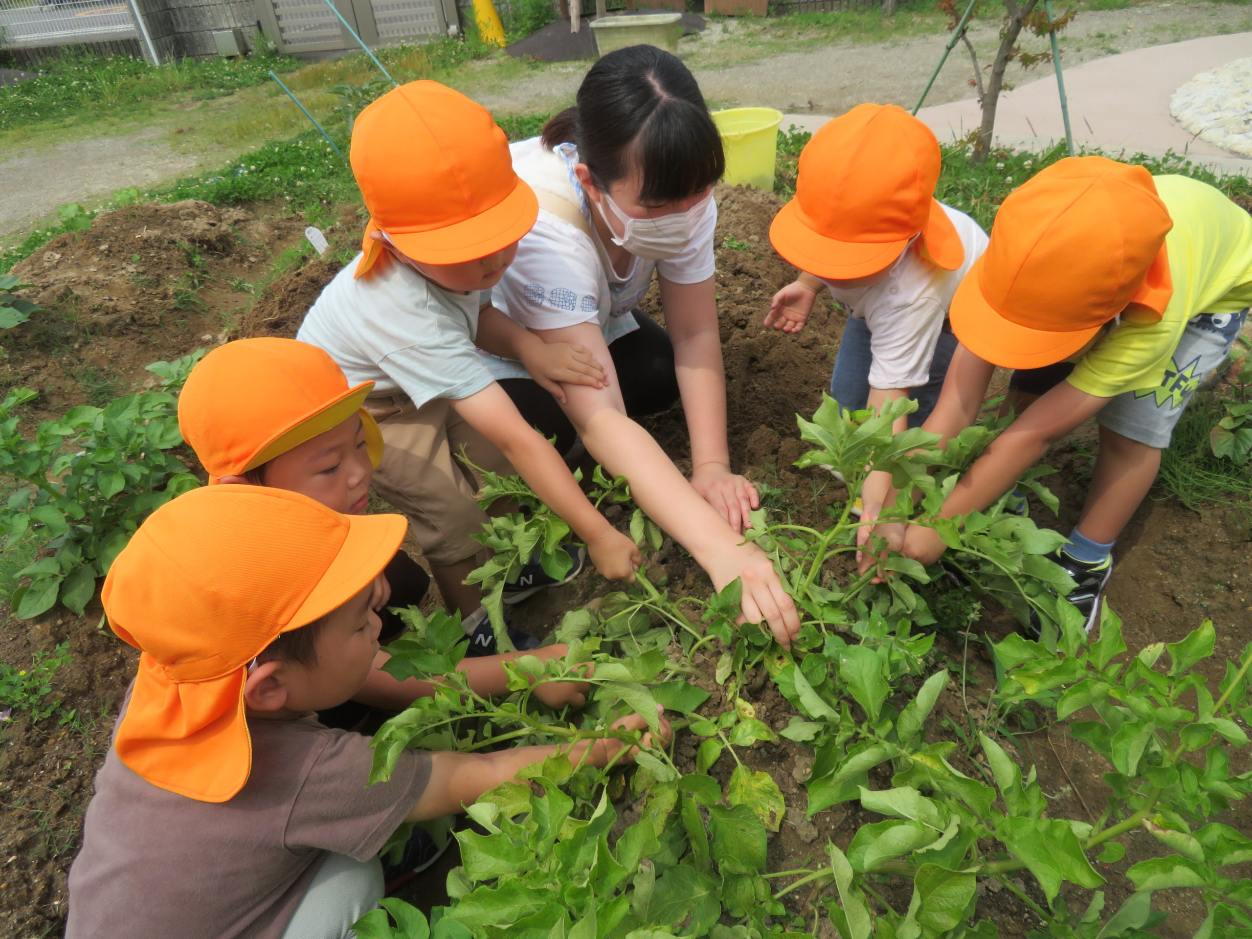 じゃがいもってどこでとれるの?葉っぱの下はどうなってるの?と興味津々の子どもたち。