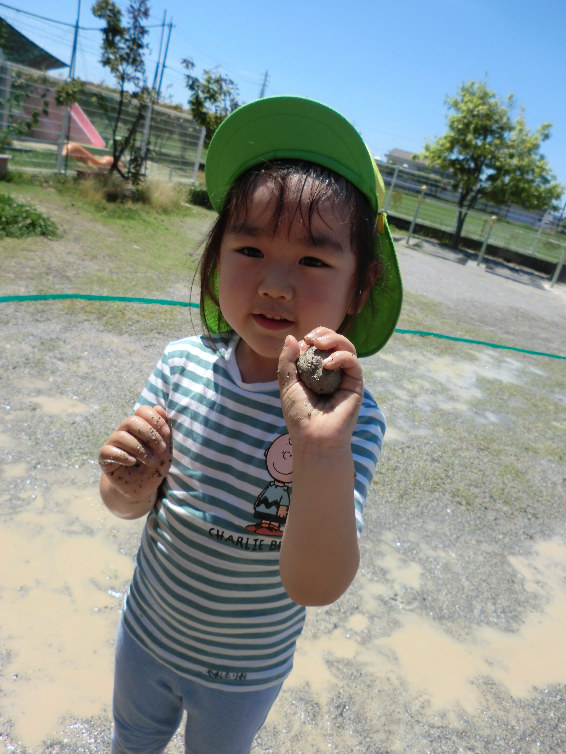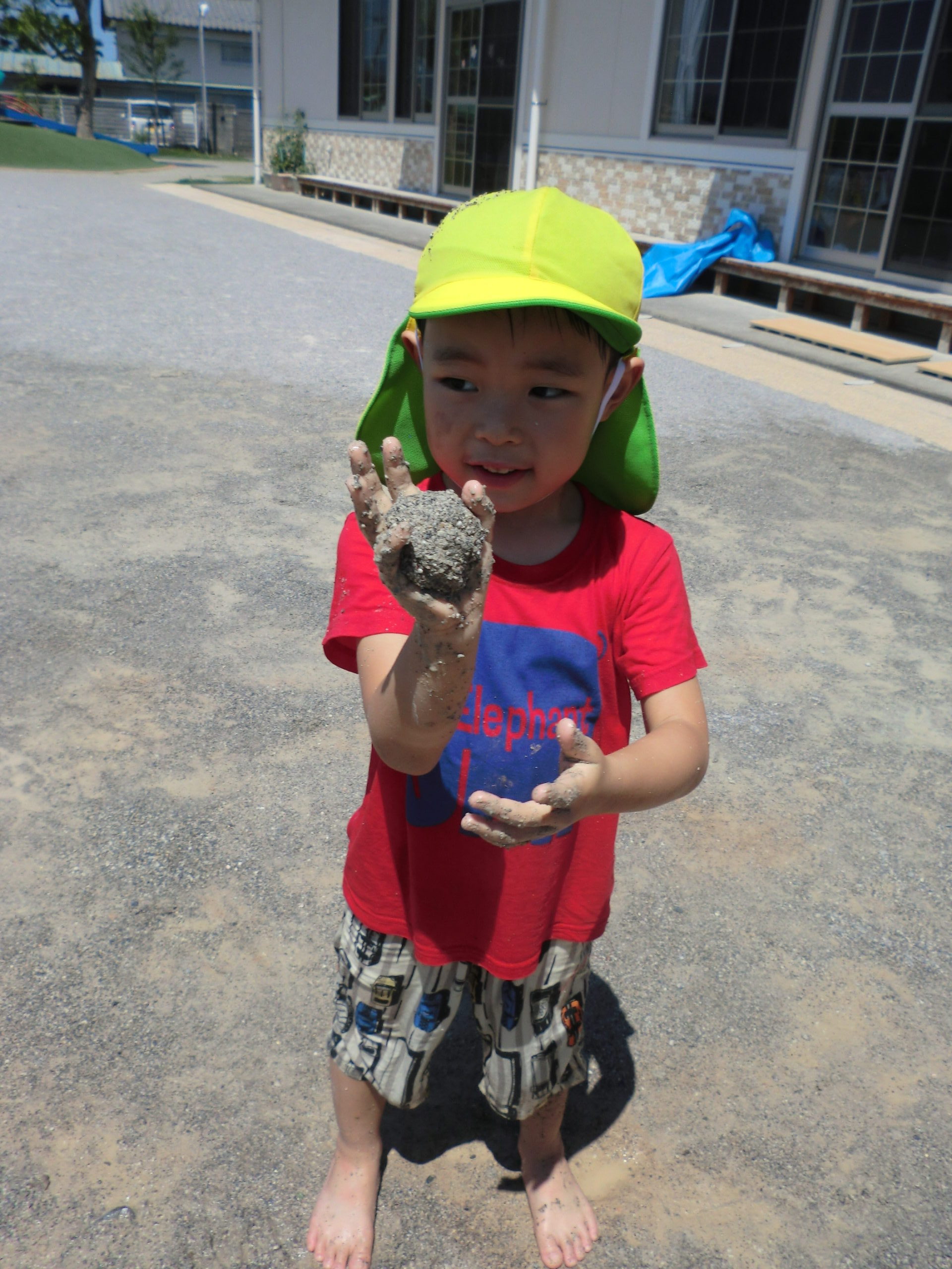 小さな手いっぱいに泥を持ち、楽しそうに作っていましたよ!