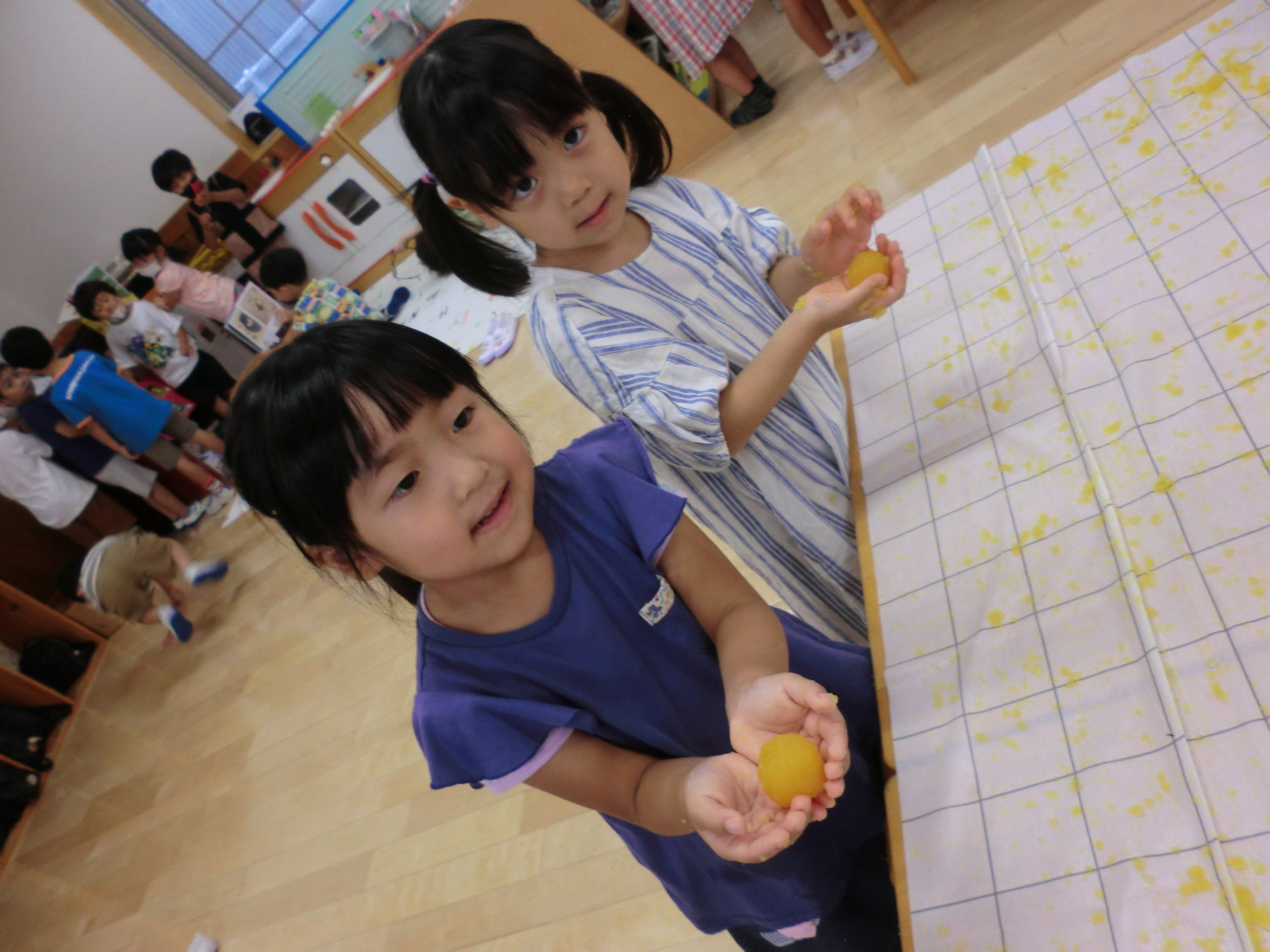 手で丸めたら。。「固まったよ!」「お団子になった!」と大発見!!