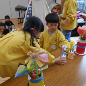 きりん組 ぱんだ組  ぞう組さんが作ってくれた手作りのお花はとっても素敵です☆彡