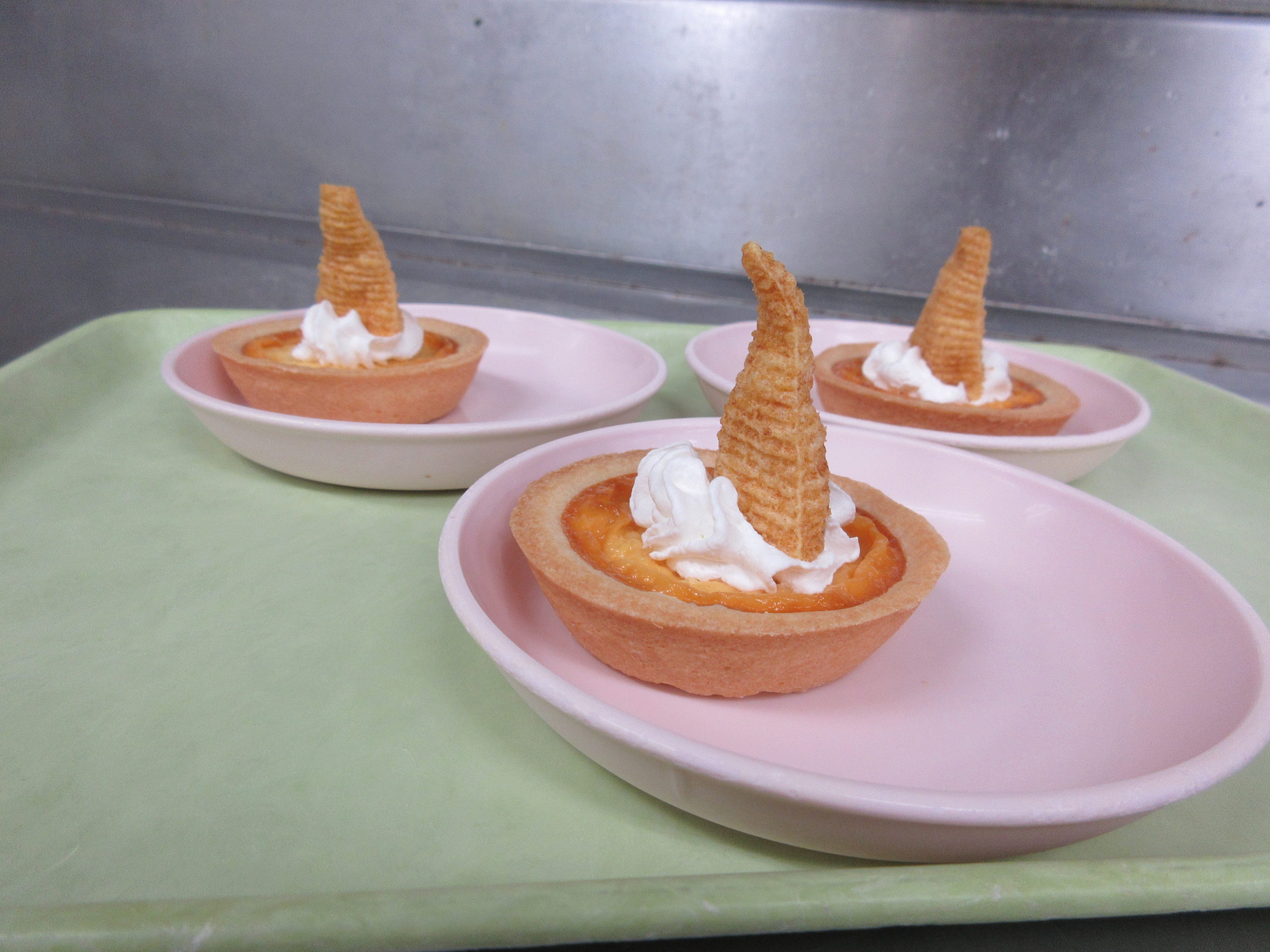 プリンタルトにホイップクリーム、その上にとんがりコーンをトッピングされたものでした!