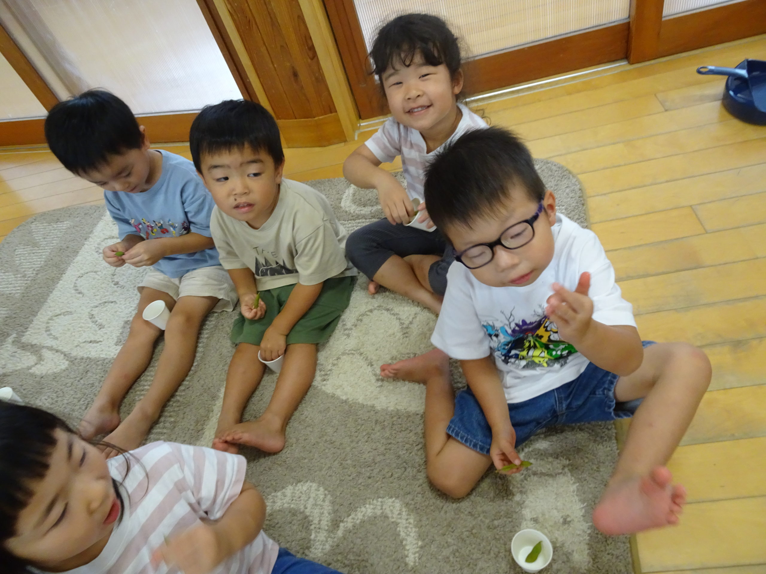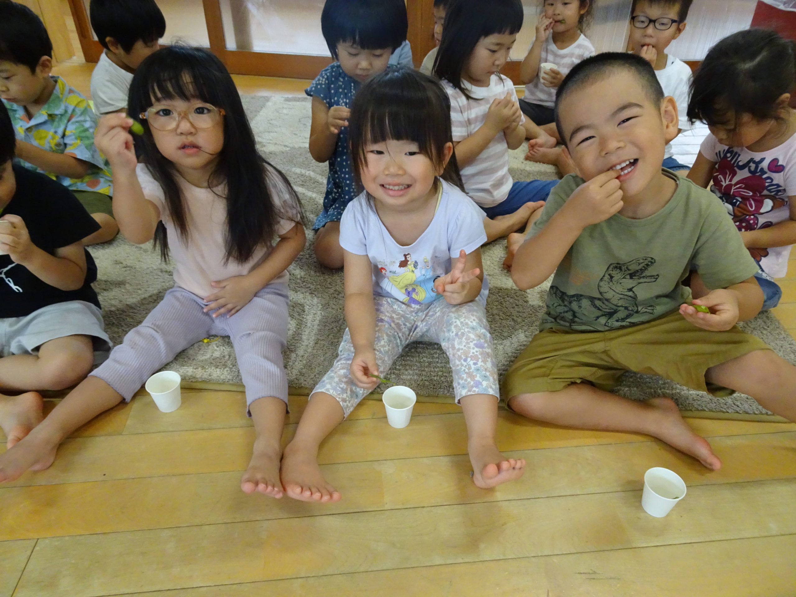 ぱくっ。。「ん~おいしい!!」「なんかあまい・・・?!」「おかわりほしいよ~」と、とっても素敵な表情の子どもたちでした💕