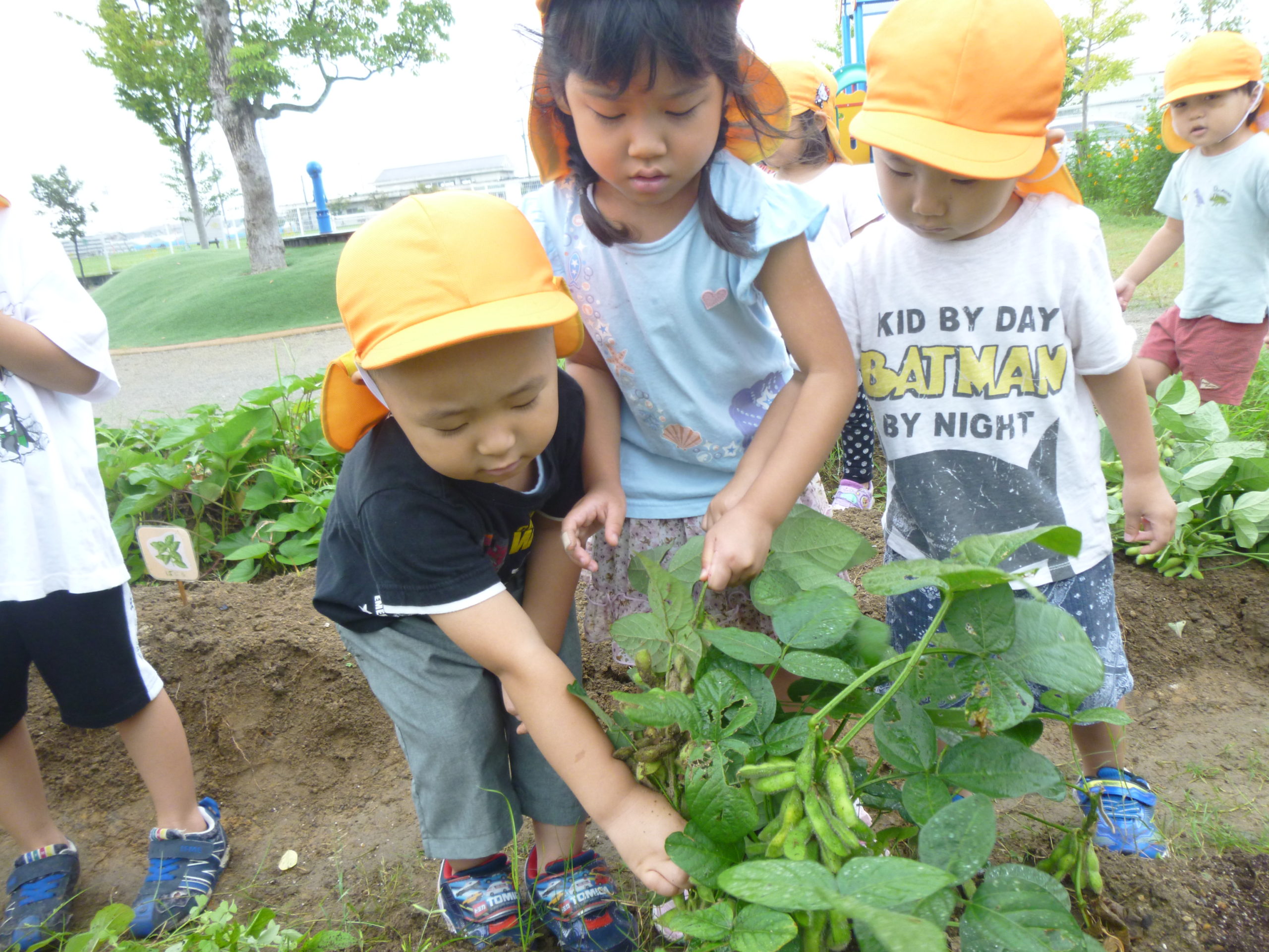 収穫しに行くことを伝えると、「やったー!」と大喜びの子どもたち。「よし、がんばるぞ!」と気合も十分で、「うんとこしょ、どっこいしょ」とお友だちと力を合わせて頑張っていましたよ✨