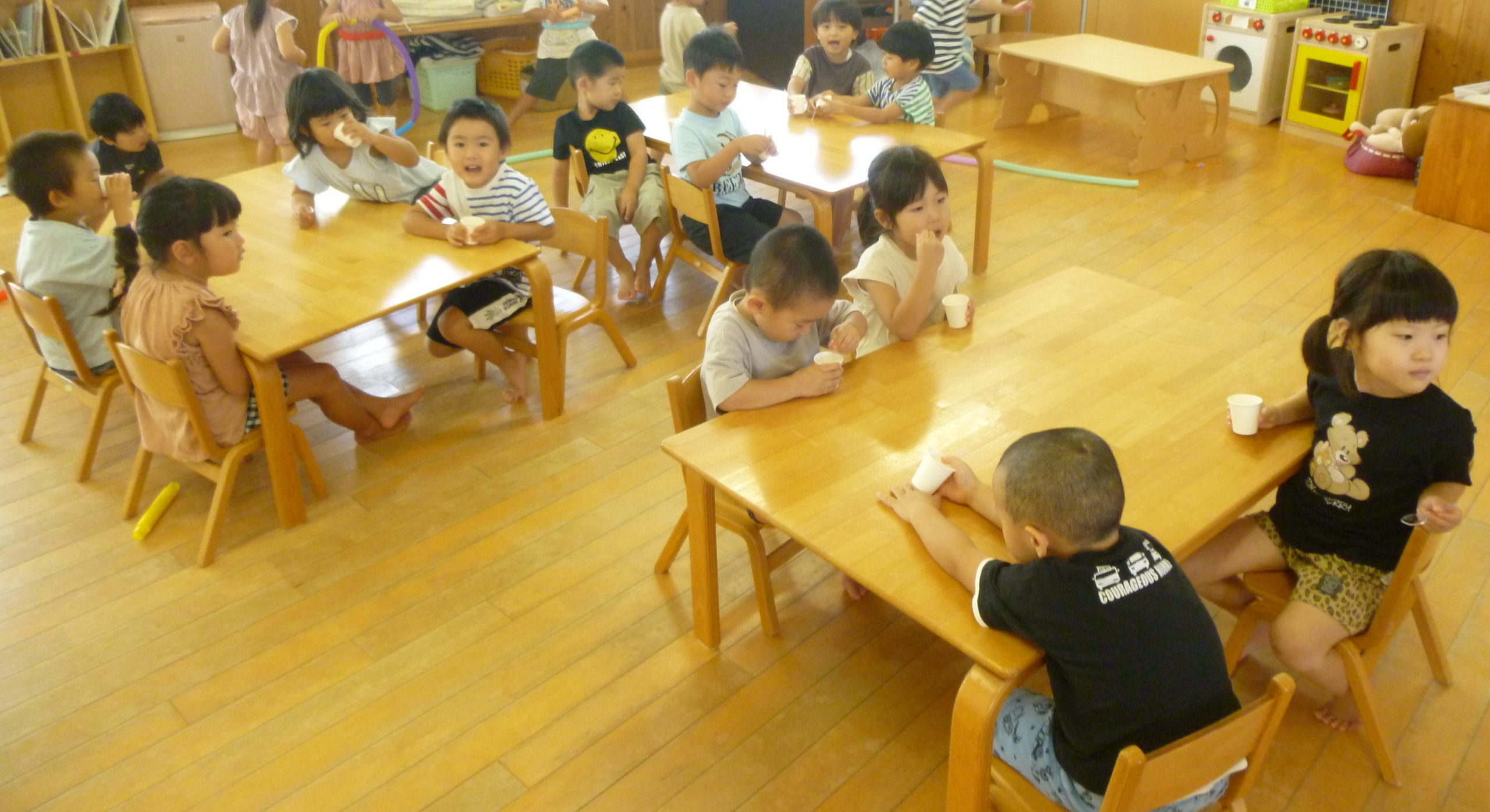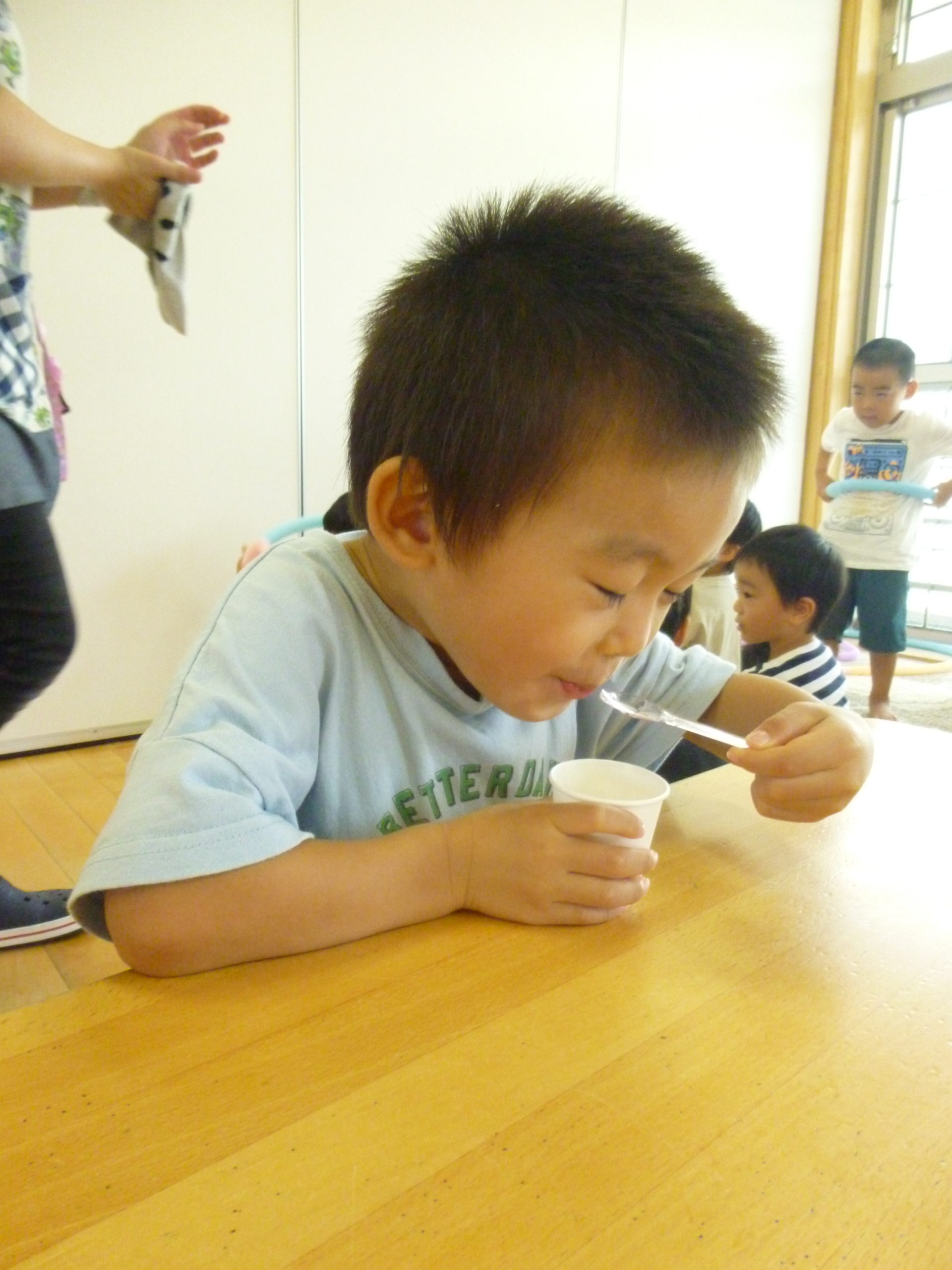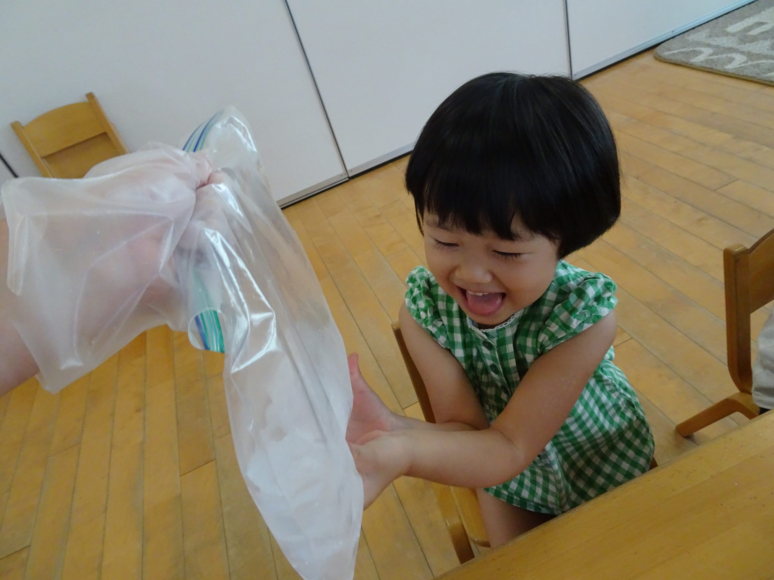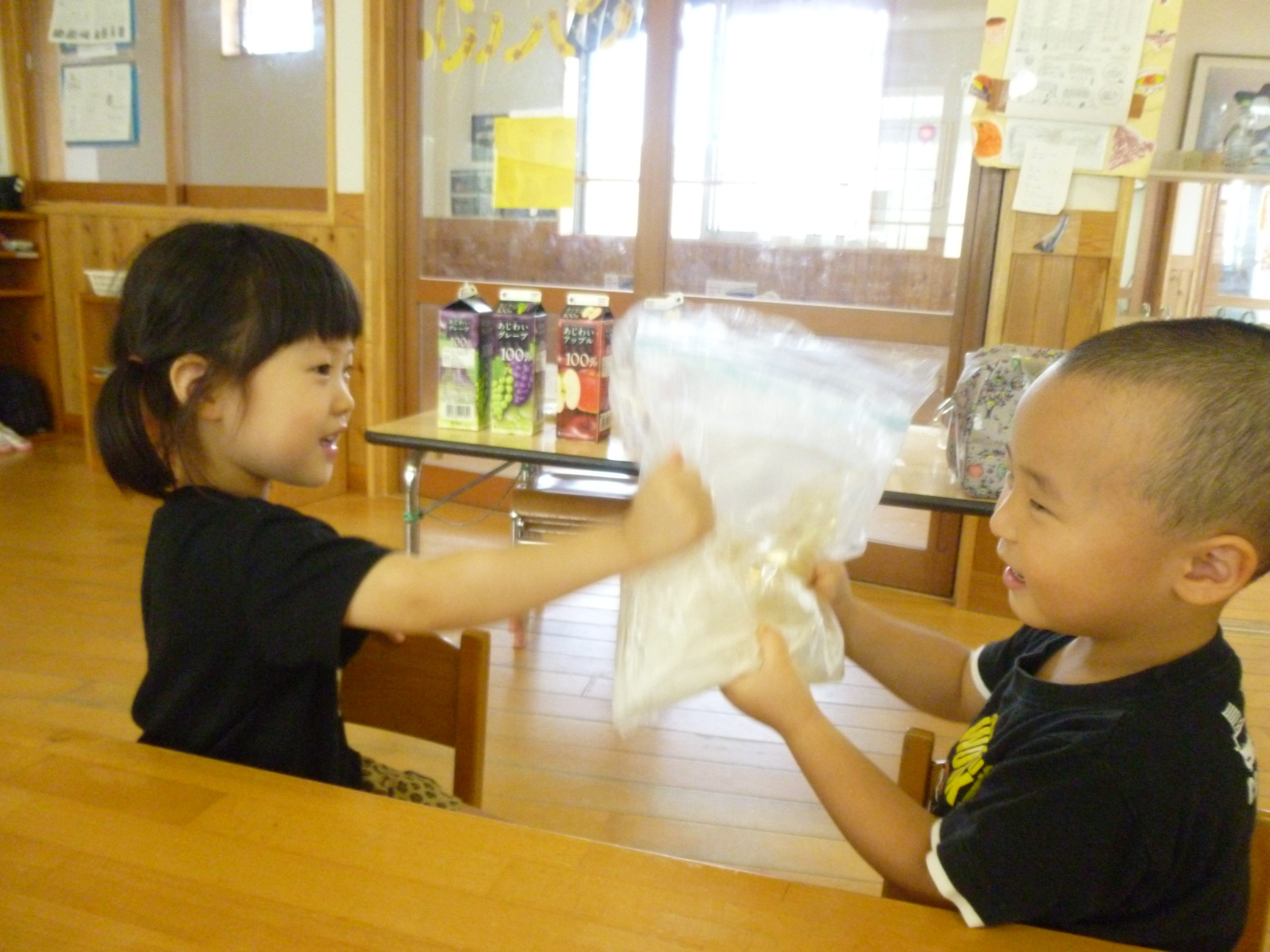 子どもたちも一緒に振って、シャーベット作りを体験しました。