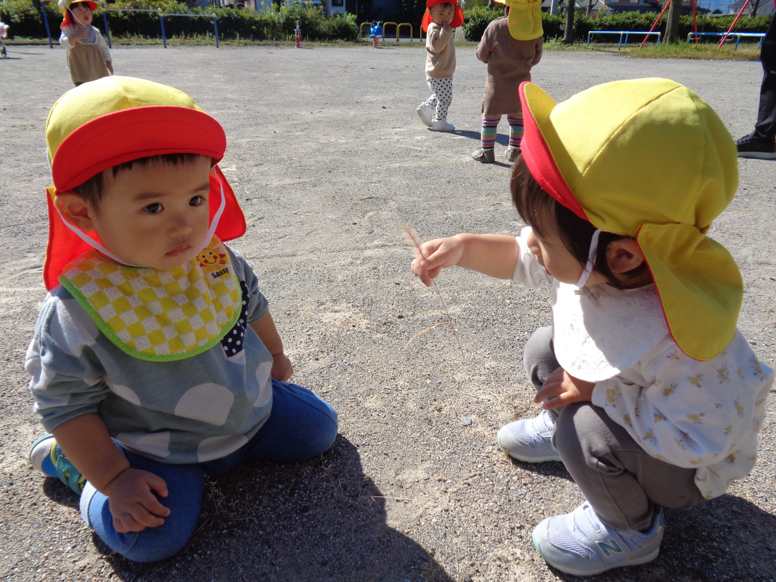 どんぐりを拾ったり、ねこじゃらしを見つけると・・・