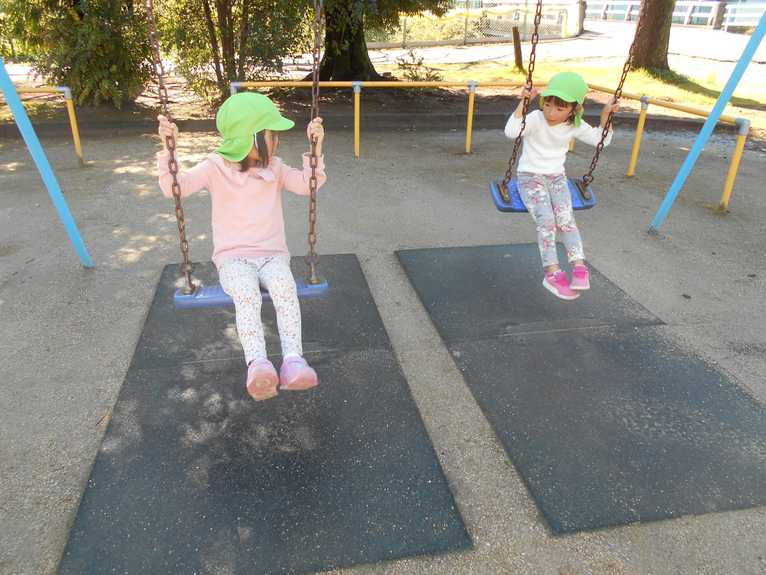 ブランコに乗りながら、仲良し2人のおしゃべりタイムです💕