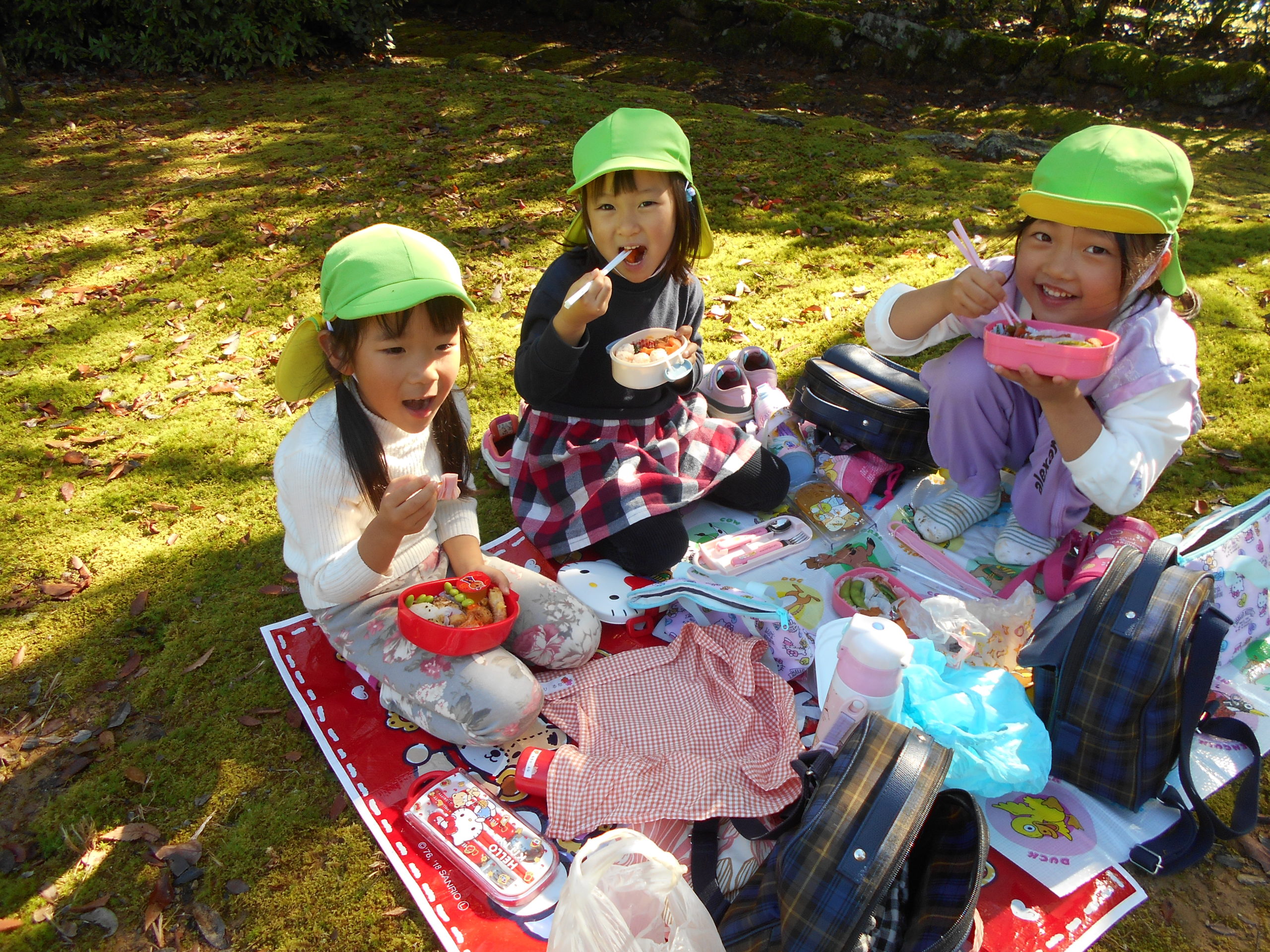 青空の下で食べるお弁当はみんなとっても美味しそうでした!